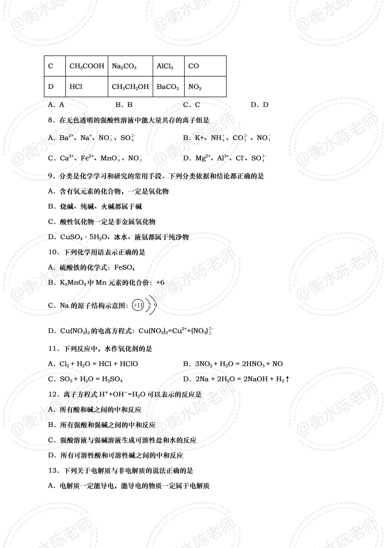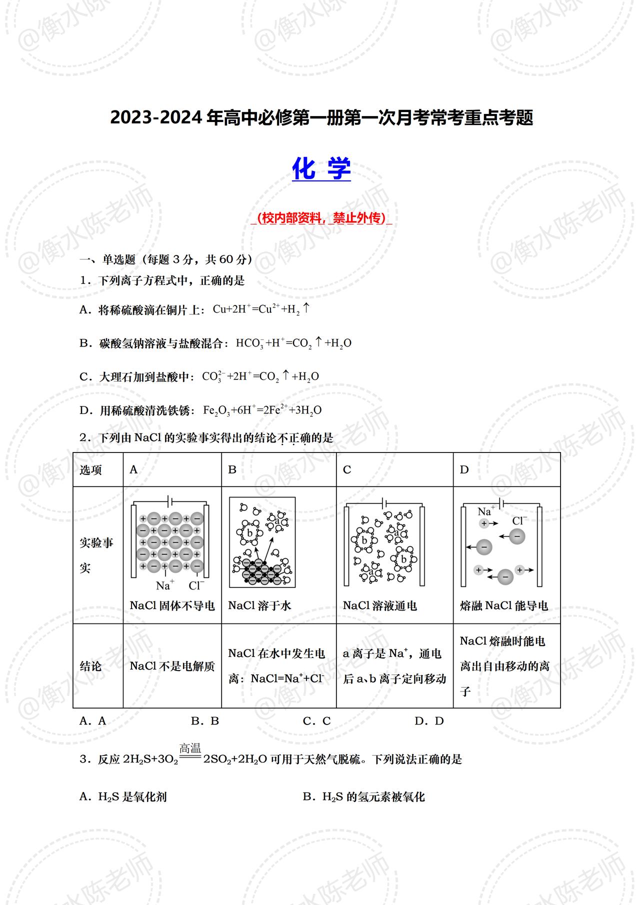高中化学必修第一册,第一次月考重点考题公布,全是这学期重难点试卷,想要获得好成绩,月考之前记得做一遍哦,考题根据各省份和版本编写,同学们想做一遍自己城市月考卷的,跟我沟通哦。
