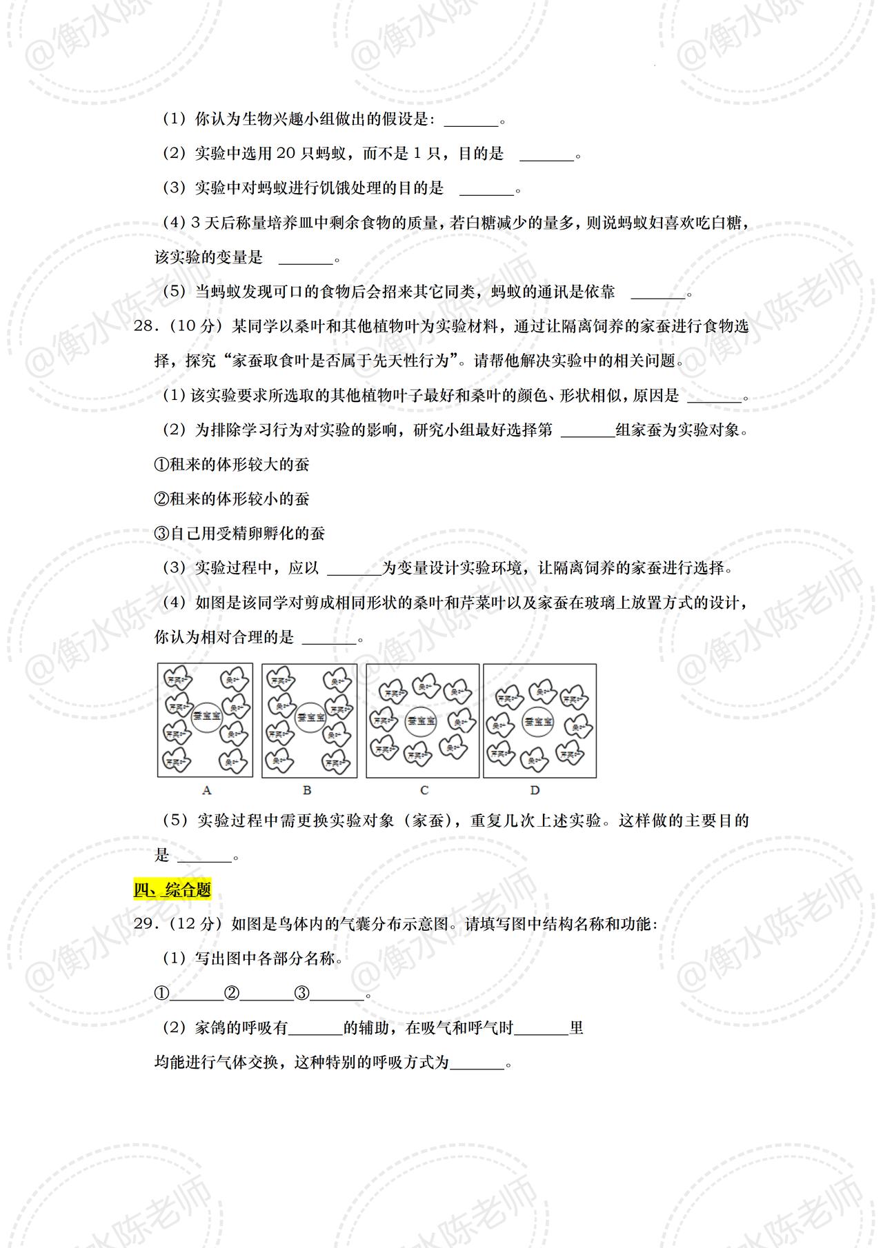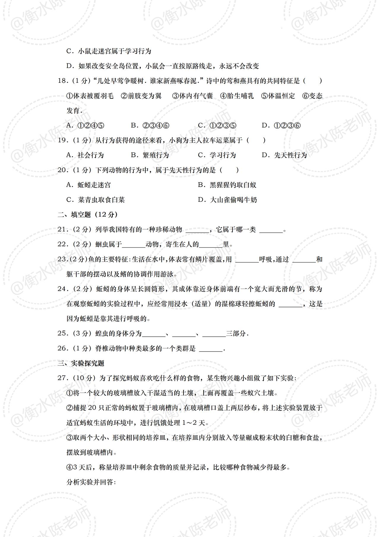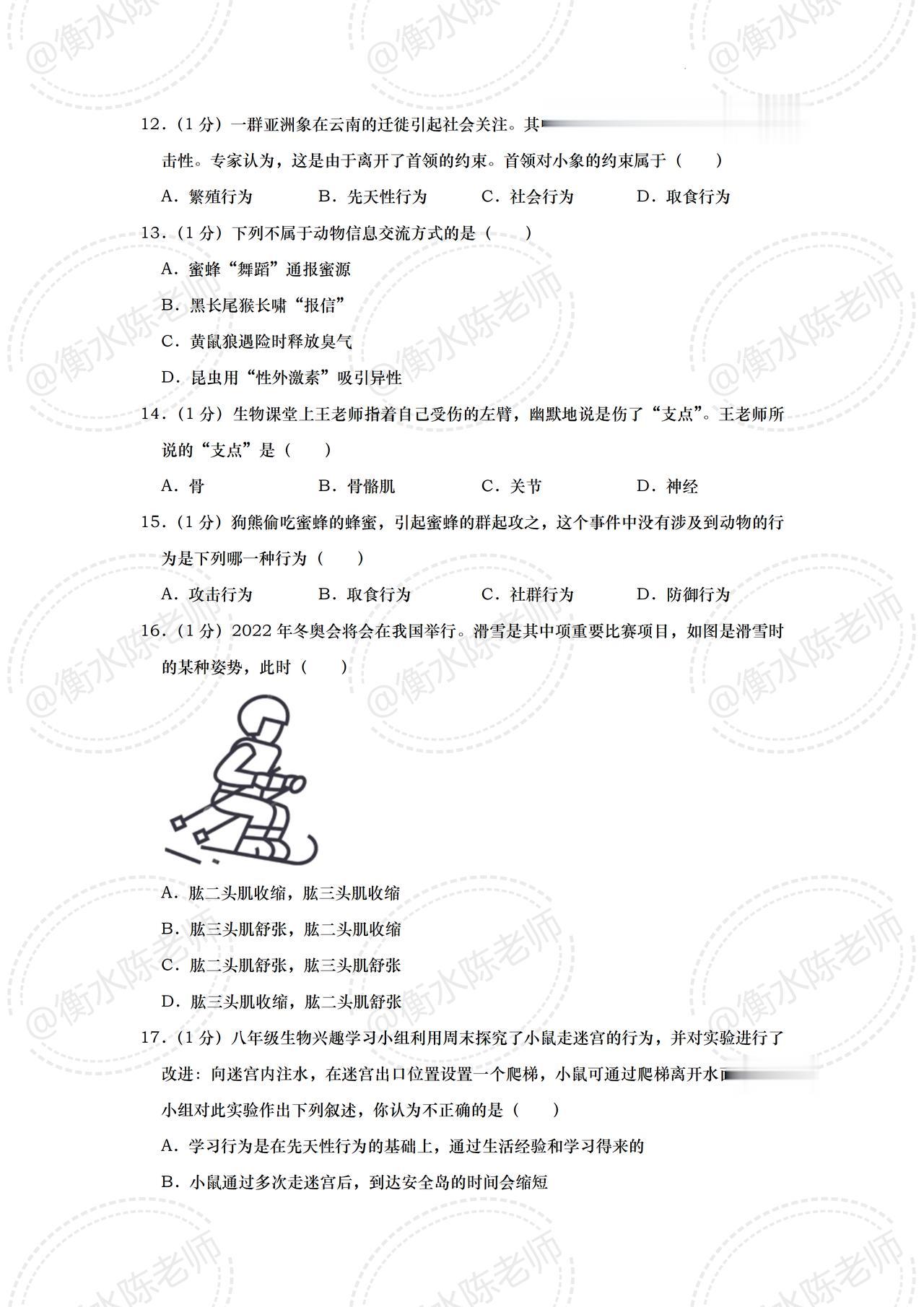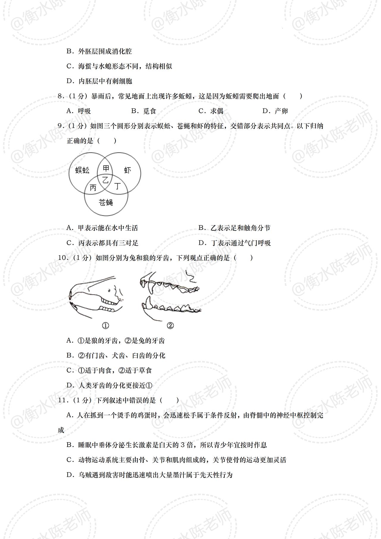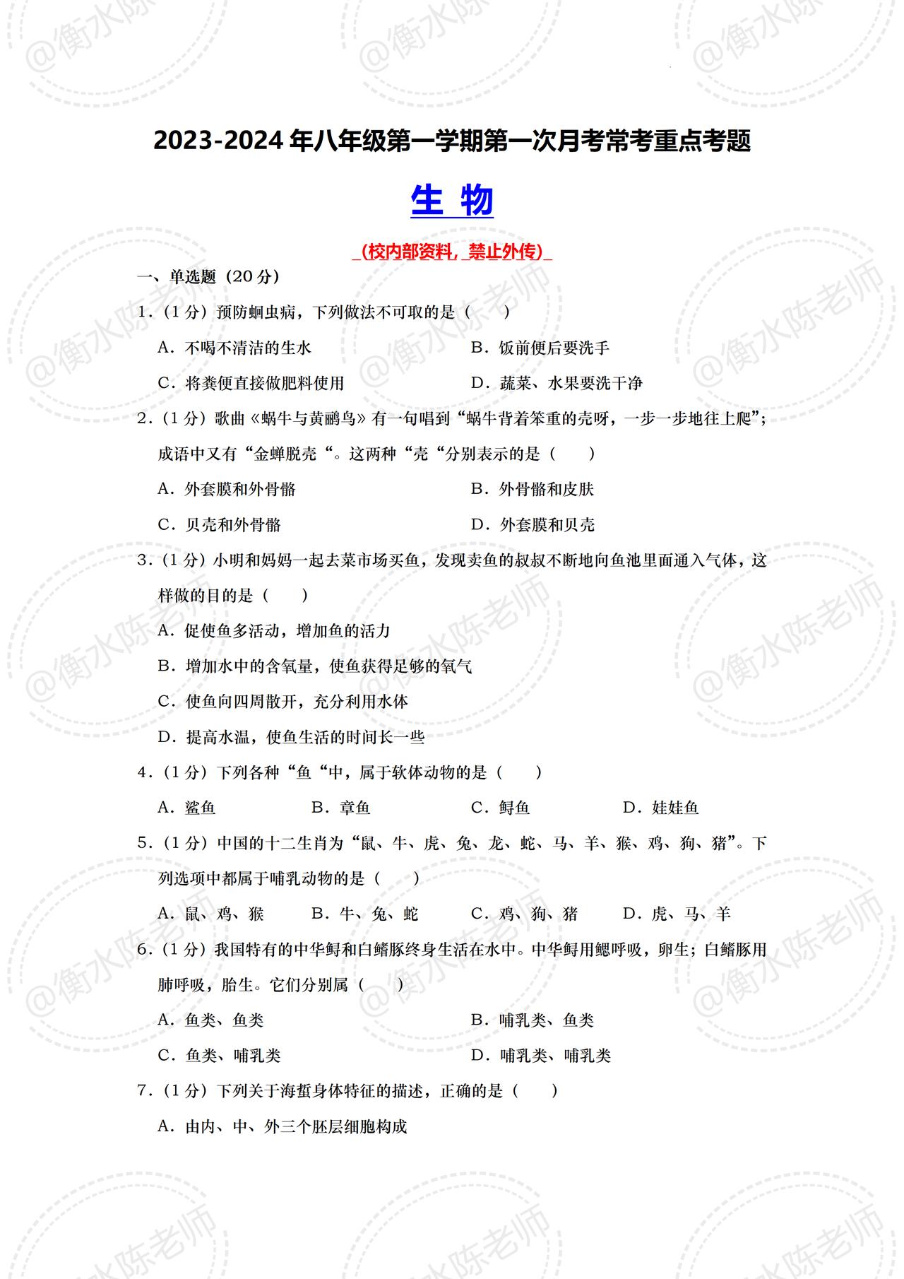 八年级上学期生物,第一次月考重点必出考题都在这里,月考卷根据不同城市、学校、版本编写的,近3年常考、易出错考题基本上都在这套试卷里面,成绩弱的考生,考前仔细认真做一遍,争取第一次考试,考出优异的成绩哦。