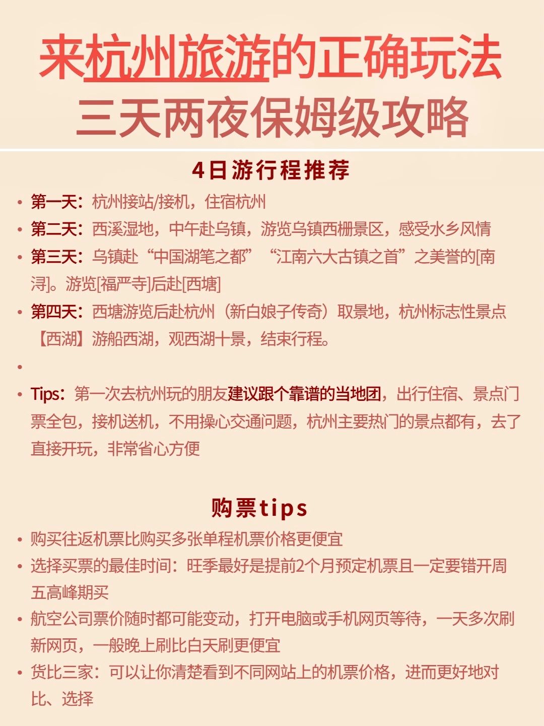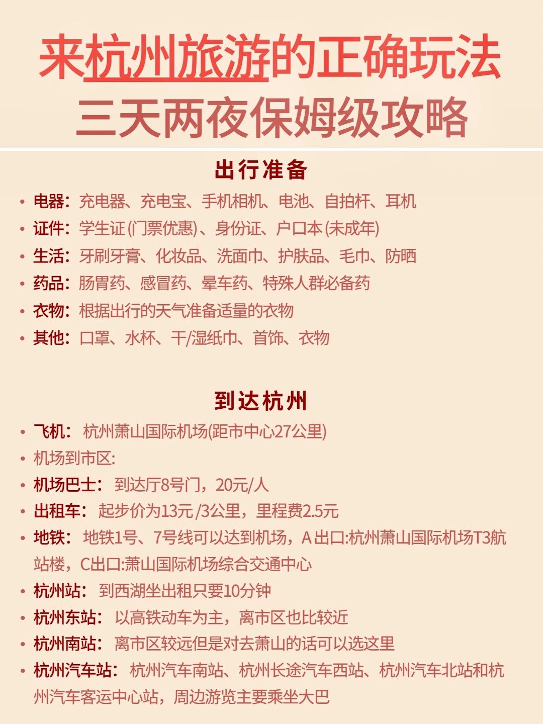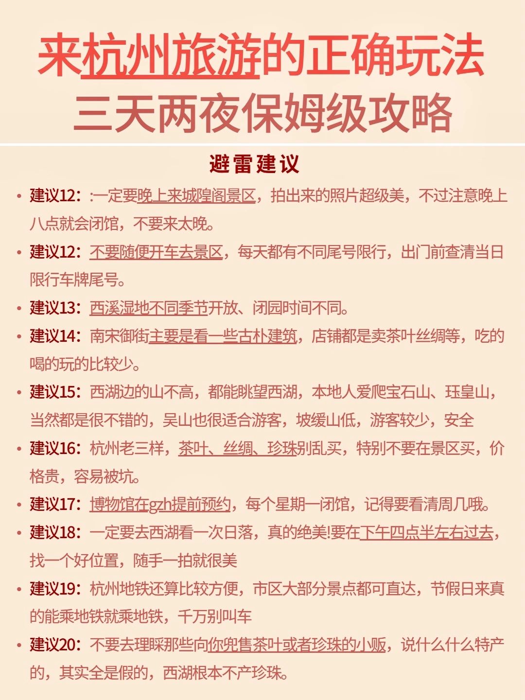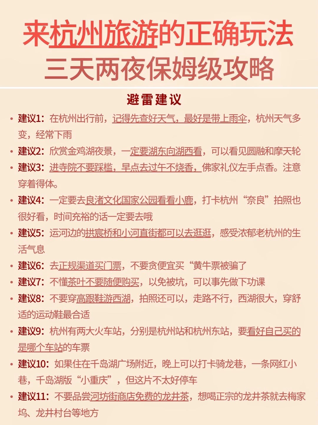 准备来杭州的小伙伴们,给大家整理了一些来苏杭旅游的建议,非常详细的放在图片上了,记得点赞+收藏以免不小心划走哟。