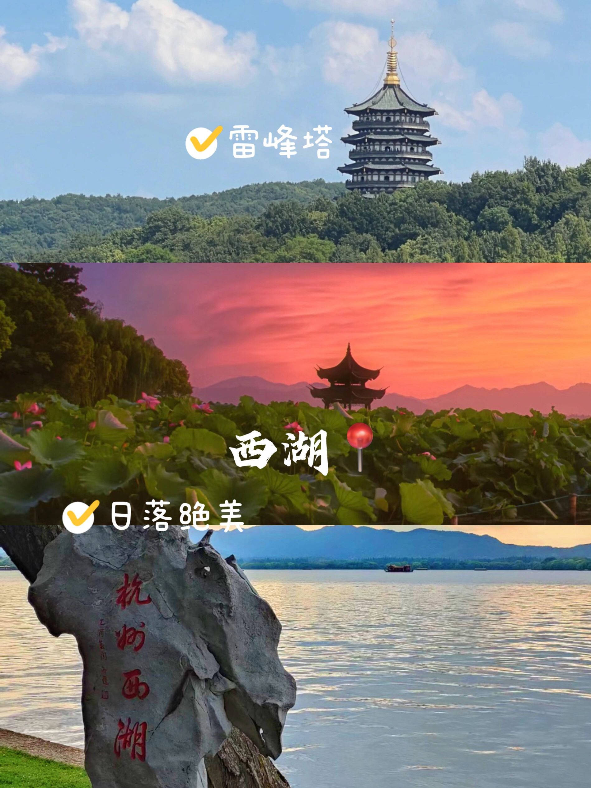 🔸西湖:盛夏的西湖超美,一定要去看看,满池的荷花全部都已经盛开,西湖很大,宝子们可以做游船去观赏西湖十景哦~