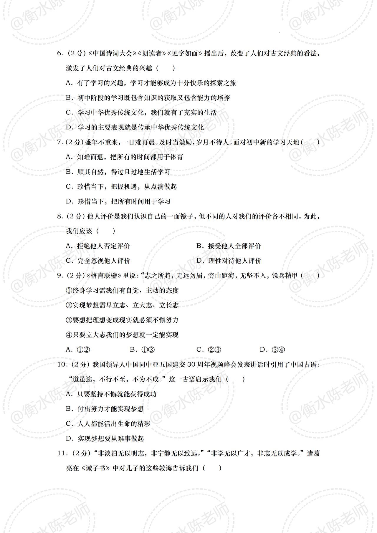 七年级上学期道德与法治,第一次月考重点考题公布,考题根据不同城市、版本和学校编写的重点考题,月考之前做一遍,同学们第一次接触道德与法治,一定要考个好成绩哦,需要自己城市月考卷的,跟我沟通哦。