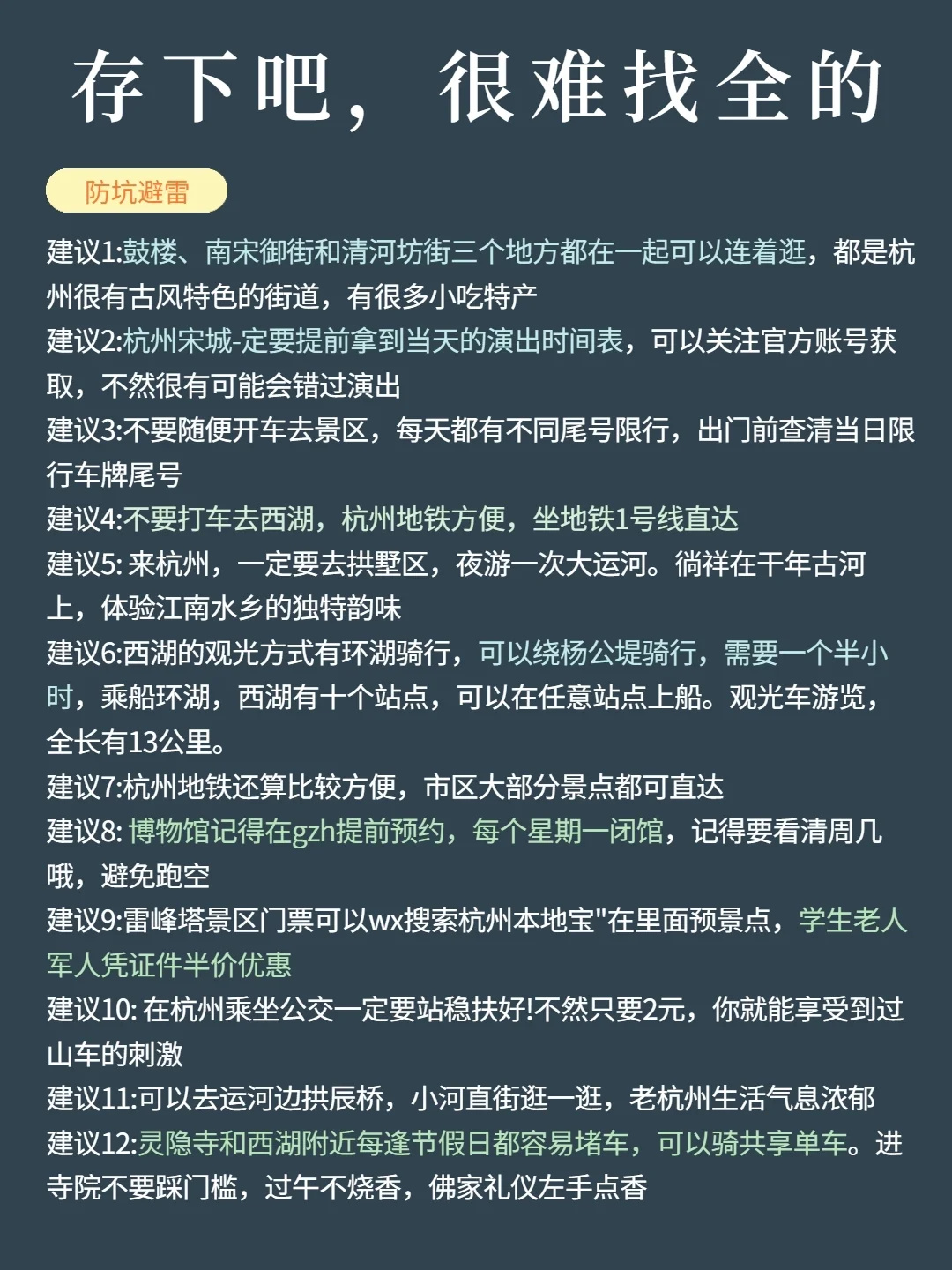 上有天堂,下有苏杭~假期想去杭州旅游的姐妹👭一定不要错过的一份旅游攻略,避雷建议都在图上⬆️了,记得收藏哦!