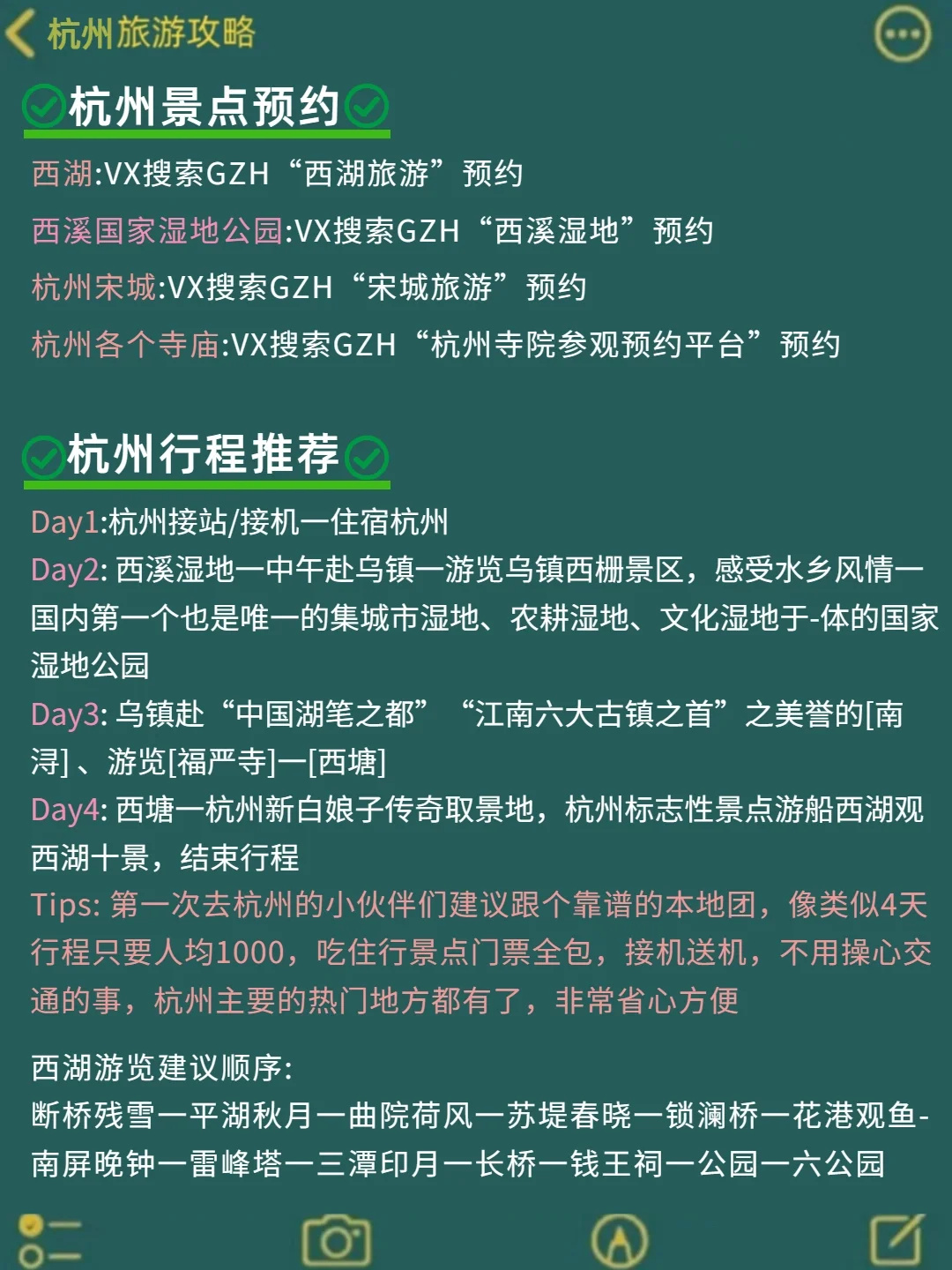 上有天堂下有苏杭,想去杭州旅游的姐妹👭一定不要错过的一份旅游攻略,避雷建议都在图上了,码住这份攻略,随时可以出发去杭州✈️