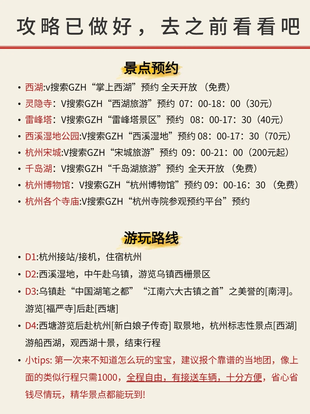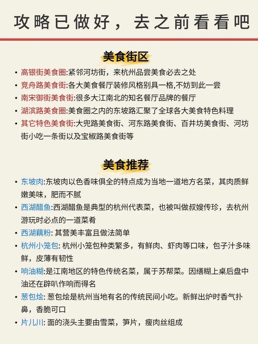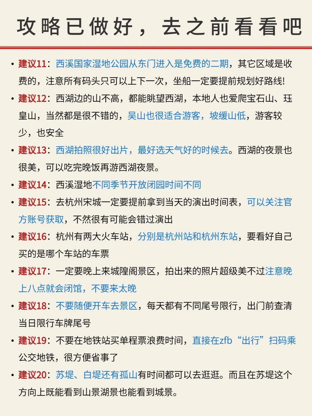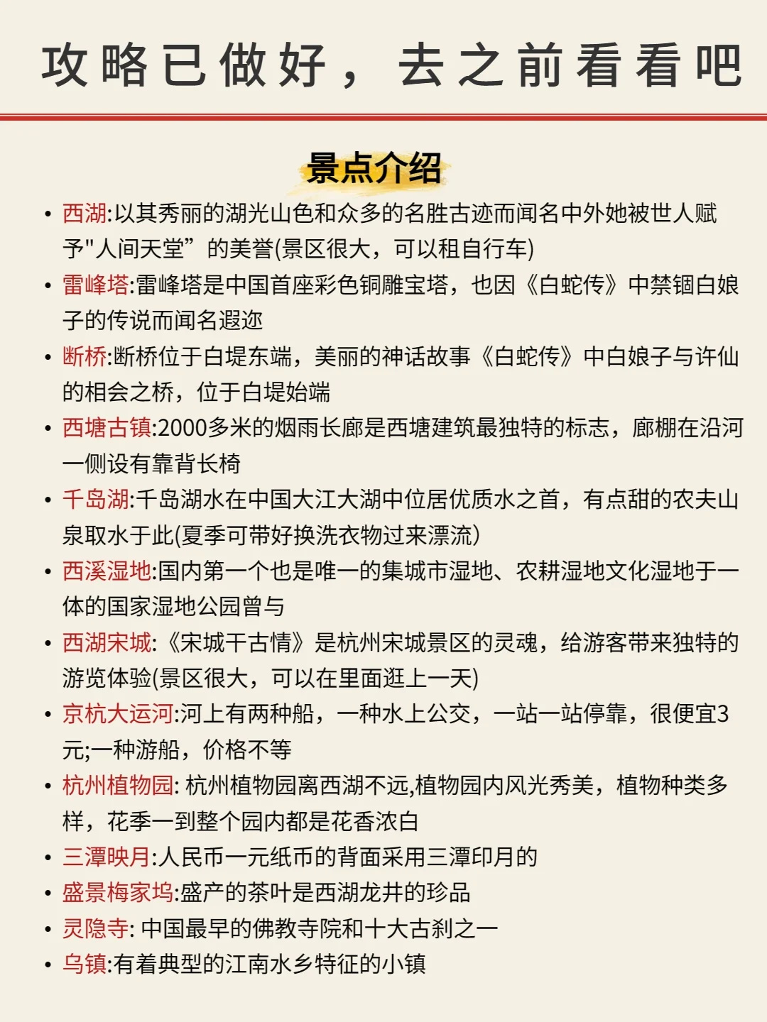 有天堂下有苏杭,想去杭州旅游的姐妹👭一定不要错过的一份旅游攻略,避雷建议都在图上了,码住这份攻略,随时可以出发去杭州✈️