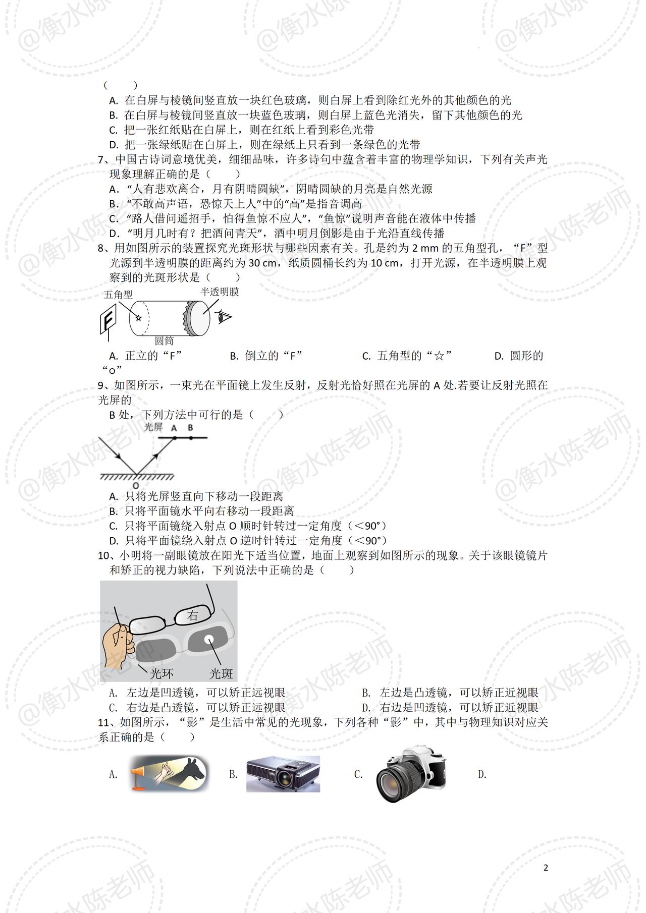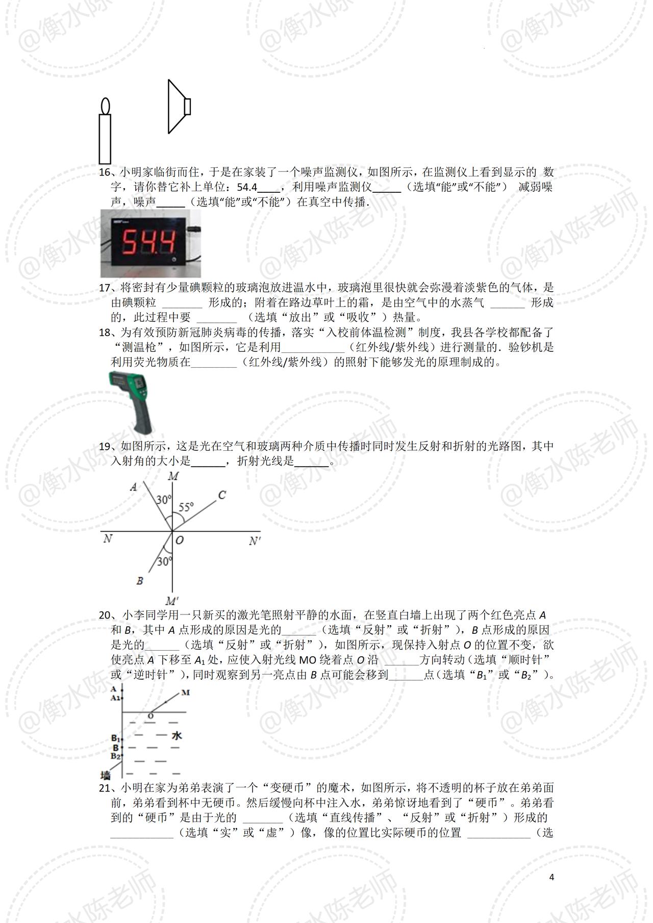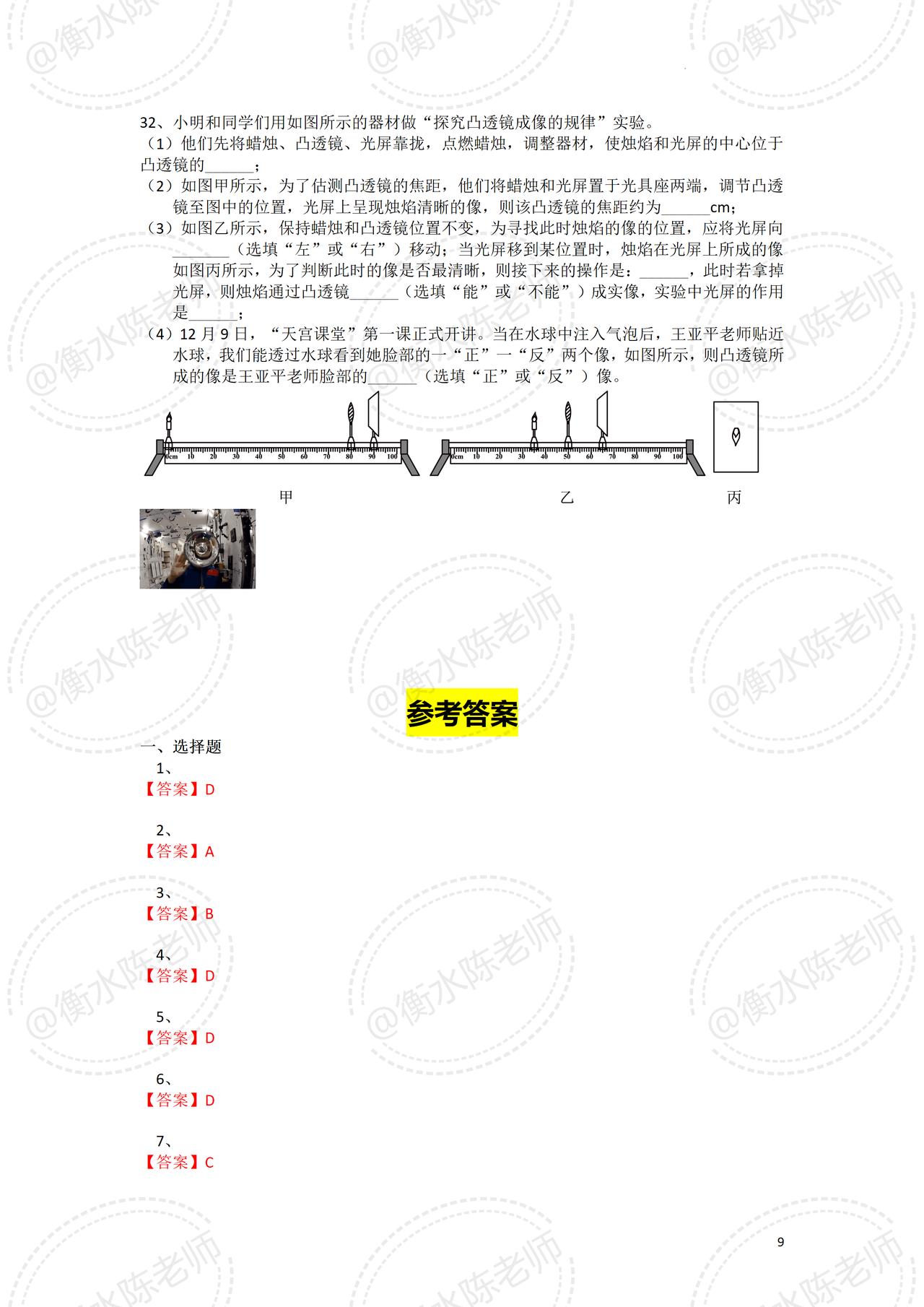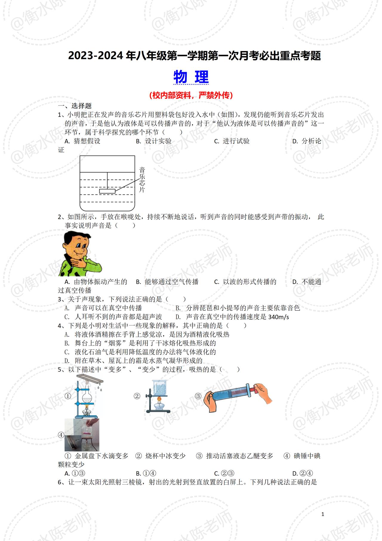 八年级上学期物理,第一次月考课外拔高拓展重点必出考题,物理对于八年级的很多学生来说,属于新科目,大家都处于一个新的起点、新的起跑线上,同属于一个老师,为什么有的学生考第一,有的考倒数第一,作为学生、家长,考虑过这种事情吗?反思过这种事情吗? 八年级物理月考卷,根据不同的城市和版本编写的,新学期、新科目,想要获得好成绩,考出前3,提前做一遍我们的月考试卷,想要获取自己城市月考卷的考生,跟我沟通哦。