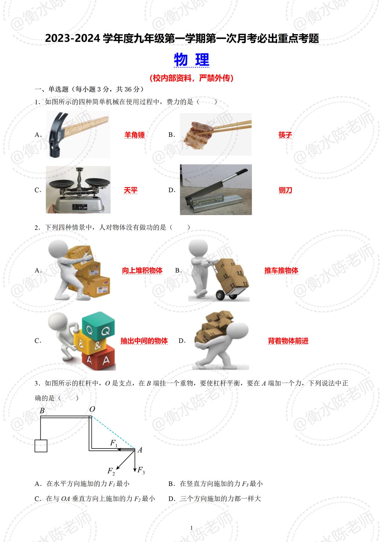 九年级上学期物理,第一次月考拔高拓展重点必出考卷,九年级物理难度稍微有些大了,面临中考升学考试,同时也是同学们的第一次人生转折,非常关键哦,想要物理考出好成绩,获得前3名,临考之前记得做一遍我们的月考卷哦,想要获取自己城市月考卷的同学们,记得跟我沟通哦。