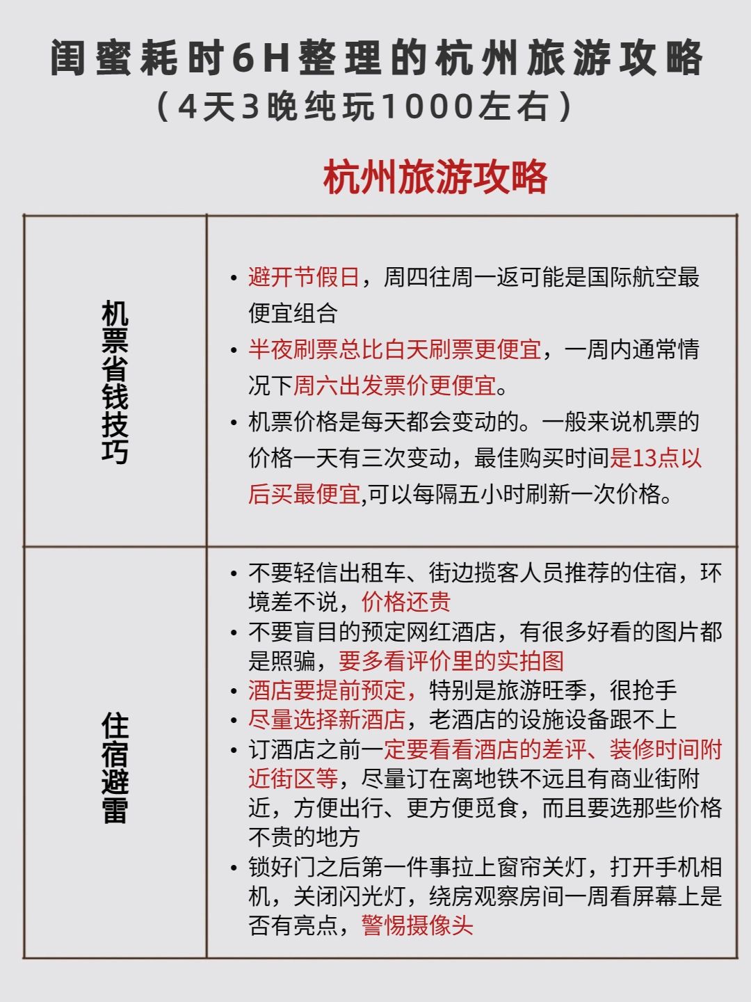 避雷建议都在图上了,码住这份攻略,随时可以出发去杭州✈️