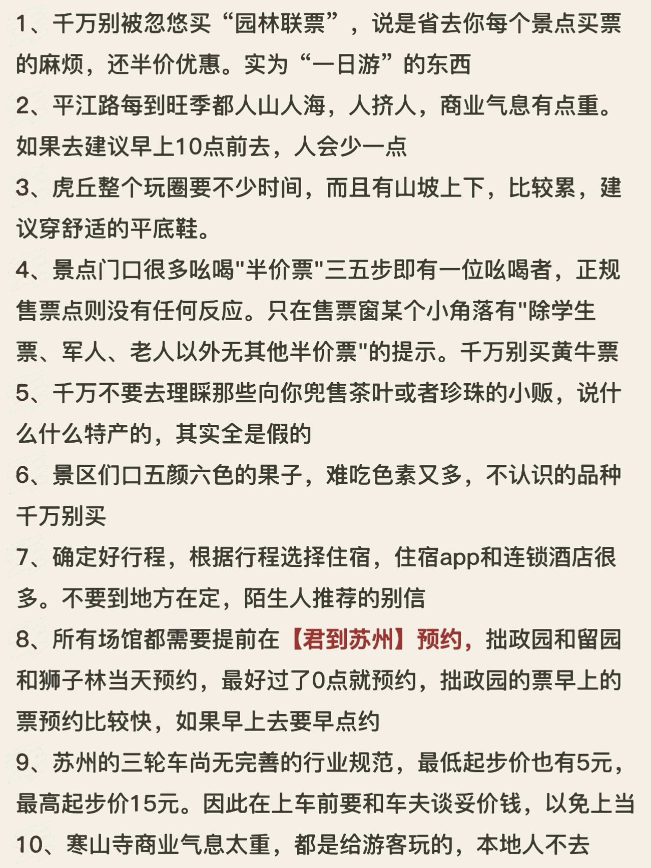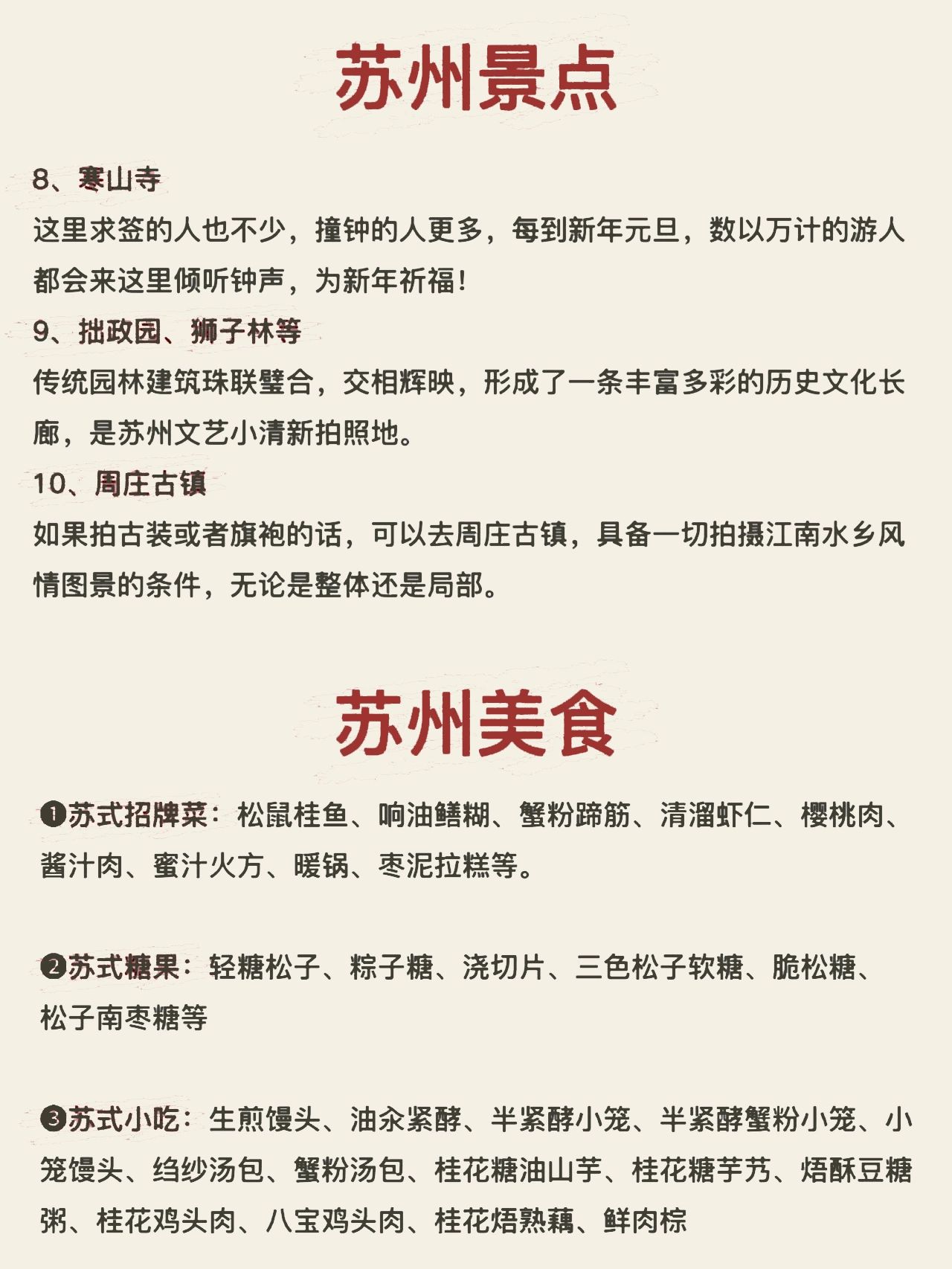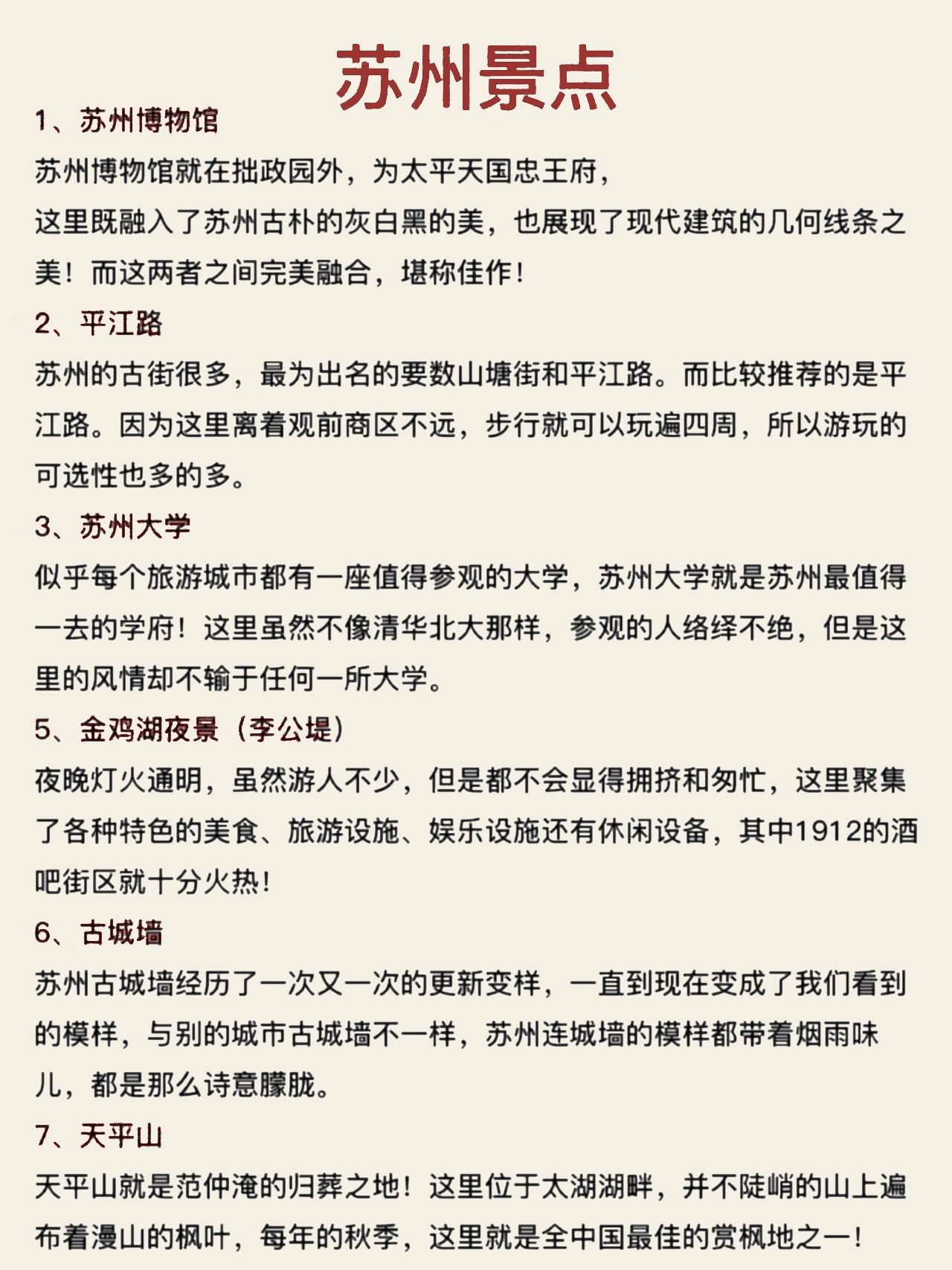 平江路、寒山寺、盘门景区、观前街、艺圃、耦园、网师园、定慧寺、北寺塔。