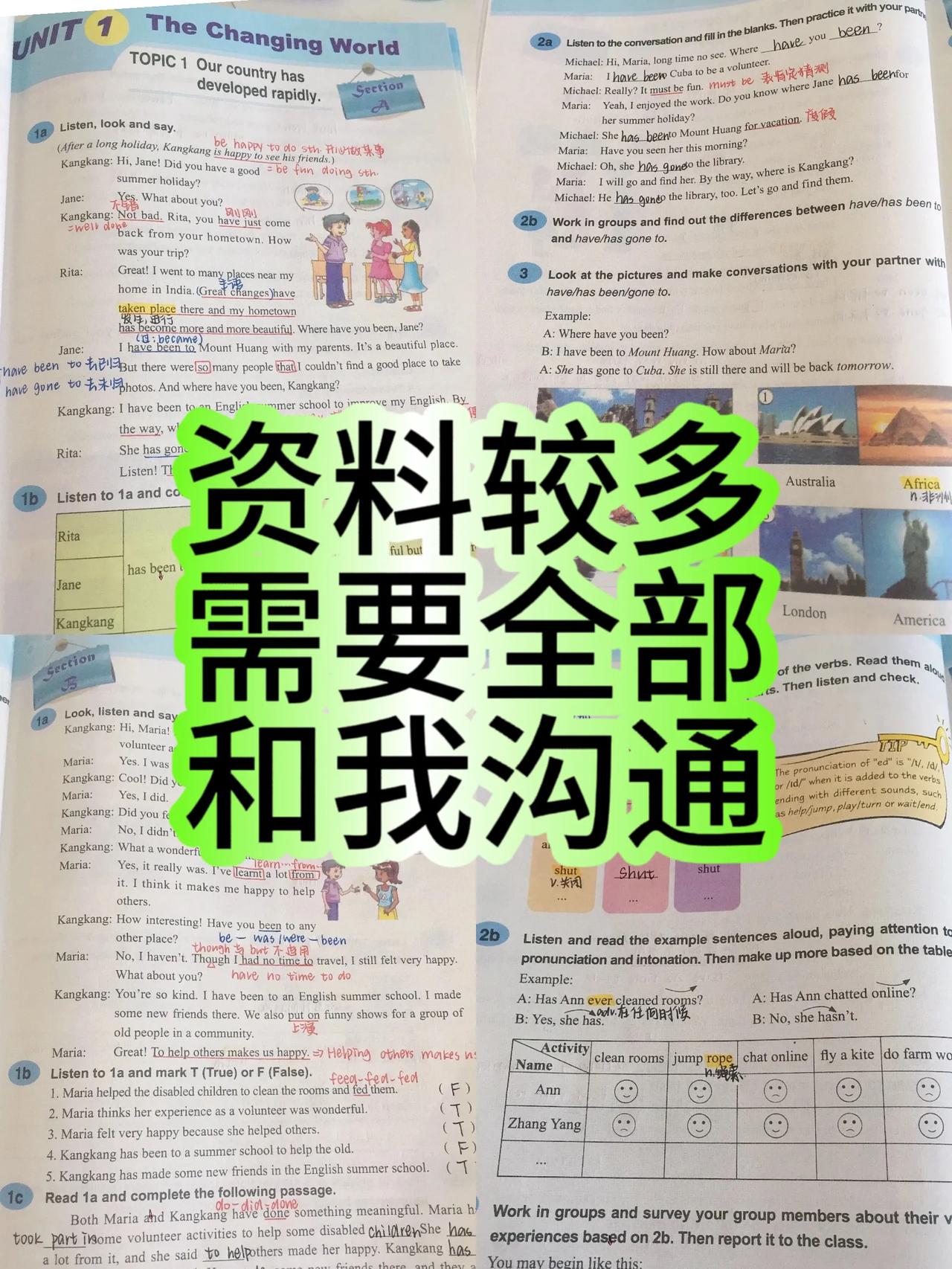 仁爱版九年级上学期英语,根据考试大纲编写的各单元必出重点,老师全部手写出来了,学习没有方法、技巧,成绩不稳定,基础差,不喜欢记笔记,不爱背诵的考生,这套笔记很适合你,专为懒惰的你准备的,吃透这份笔记,你的英语成绩嗖嗖往上跑,从之前的38,就像王者荣耀升级一样,进阶到80以上哦,由于资料笔记很多,只能发布一部分哦。