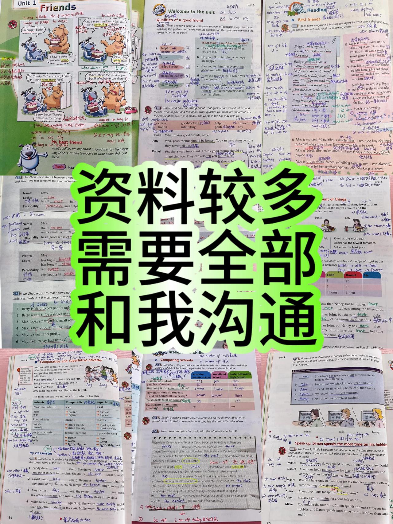 牛津译林版,八年级上学期英语,各单元必背、必考重要知识点总结笔记,全部发给同学们,私下里很多家长说孩子八年级英语太差了,七年级成绩都不好,都没有考试及格过,暑假的时候监督孩子学习,翻一下孩子七年级课本,书本里面记得笔记,比脸都白,一个笔记都没有记,能考好吗? 好记性不如烂笔头,哪怕背一遍,或者抄写一遍,都能记得住,大脑有短期记忆功能,尤其是学生,记忆力都非常强大,再差的成绩,只要过一遍,也不会考的太差。 老师按照不同的英语版本,考试重点,把各个单元笔记都手写好了,如果你的英语成绩想考80以上,这套笔记您可要收藏打印了,必出内容都在这里,由于资料比较多,只能发布一部分哦。