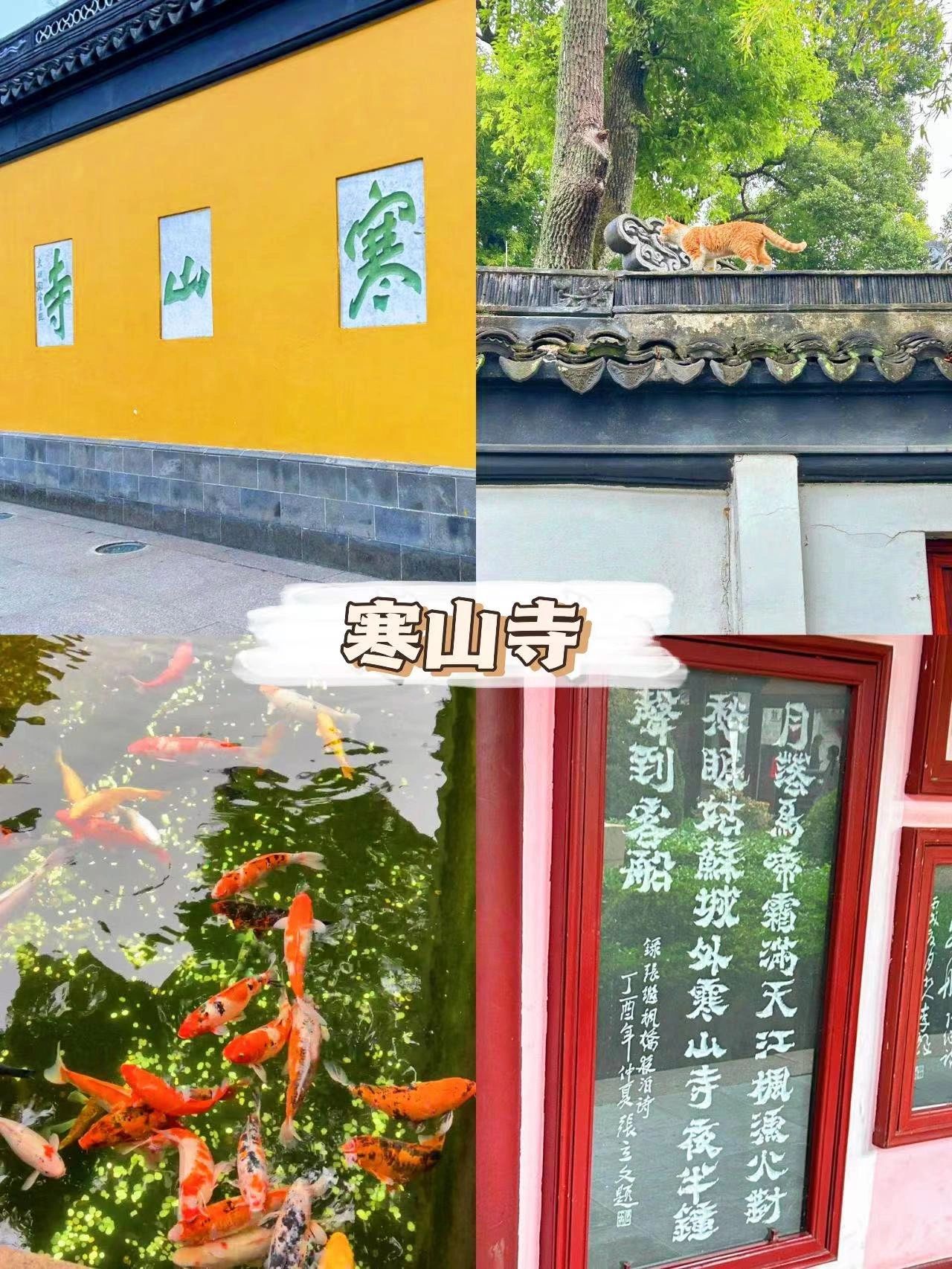 📍寒山寺:“姑苏城外寒山寺,夜半钟声到客船”素面个人觉得不好吃,五花露是甜的一般,鲜花饼还不错,寺内的猫咪会爬到房檐上。
