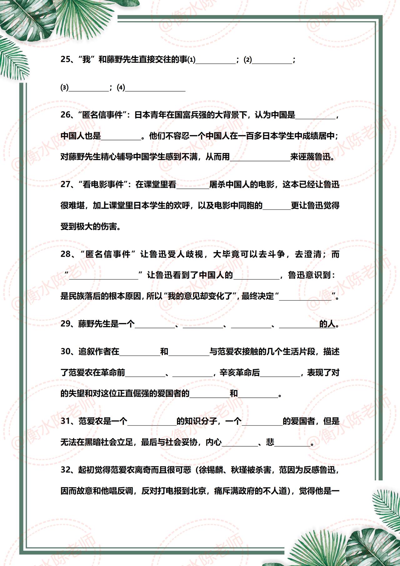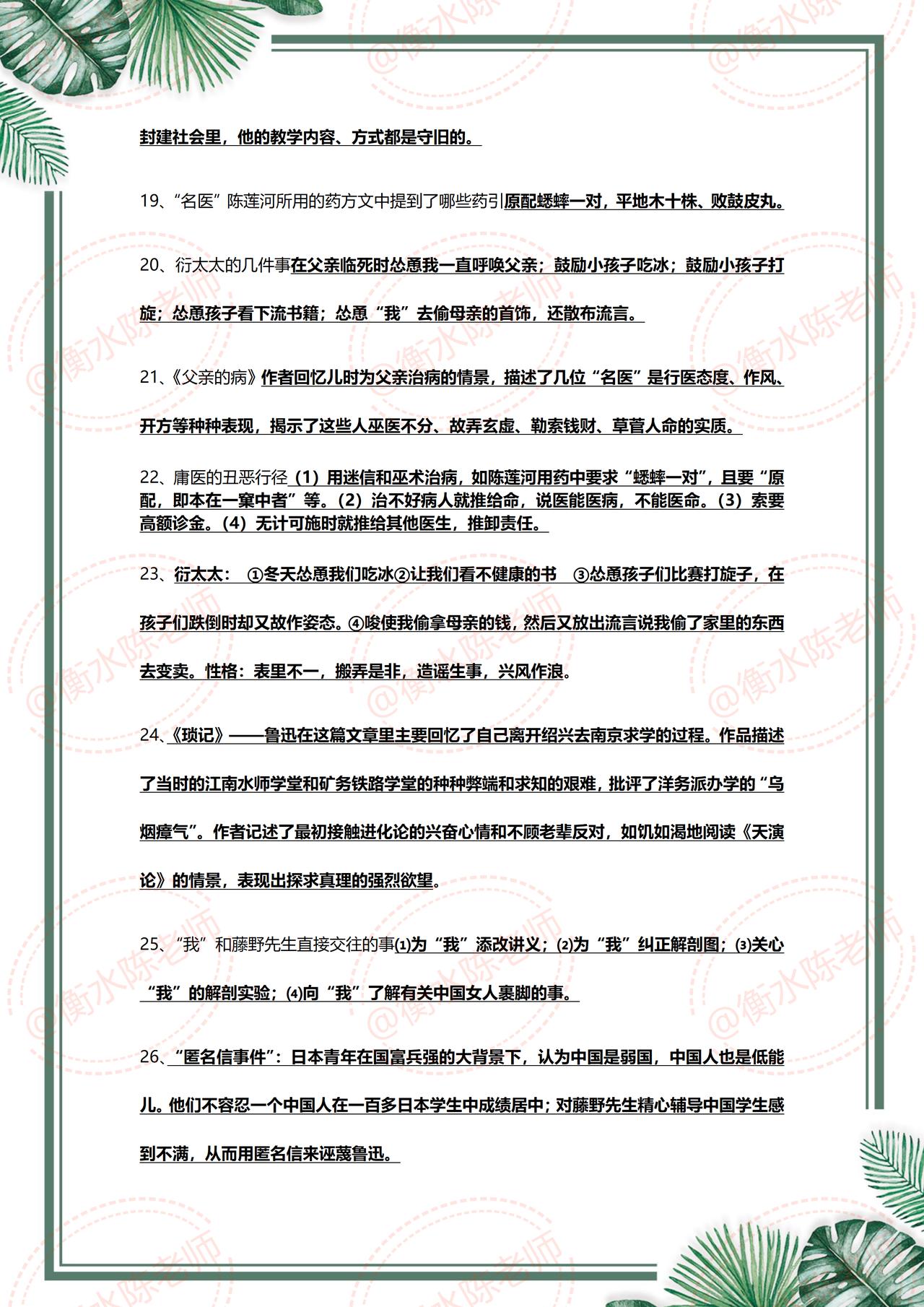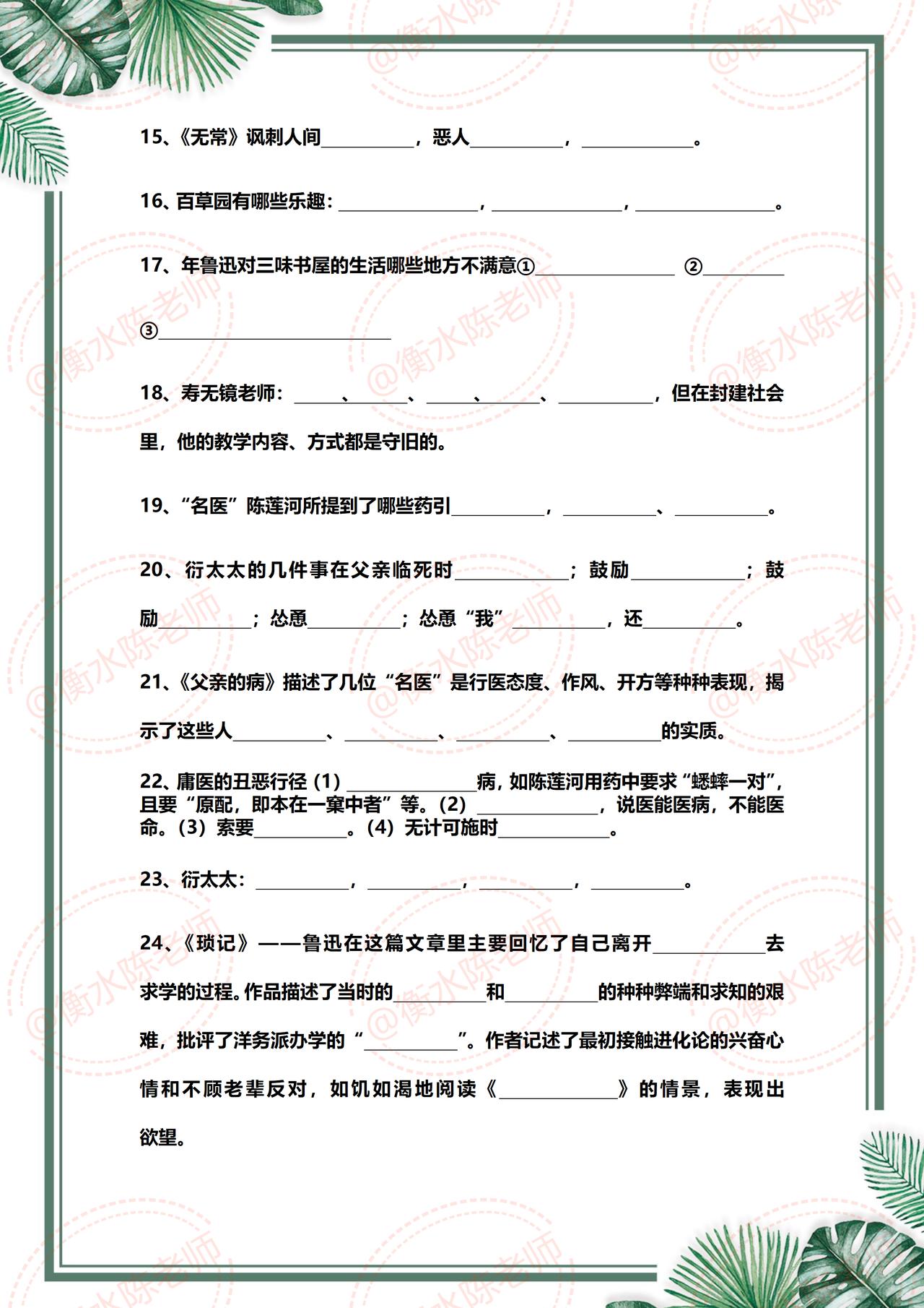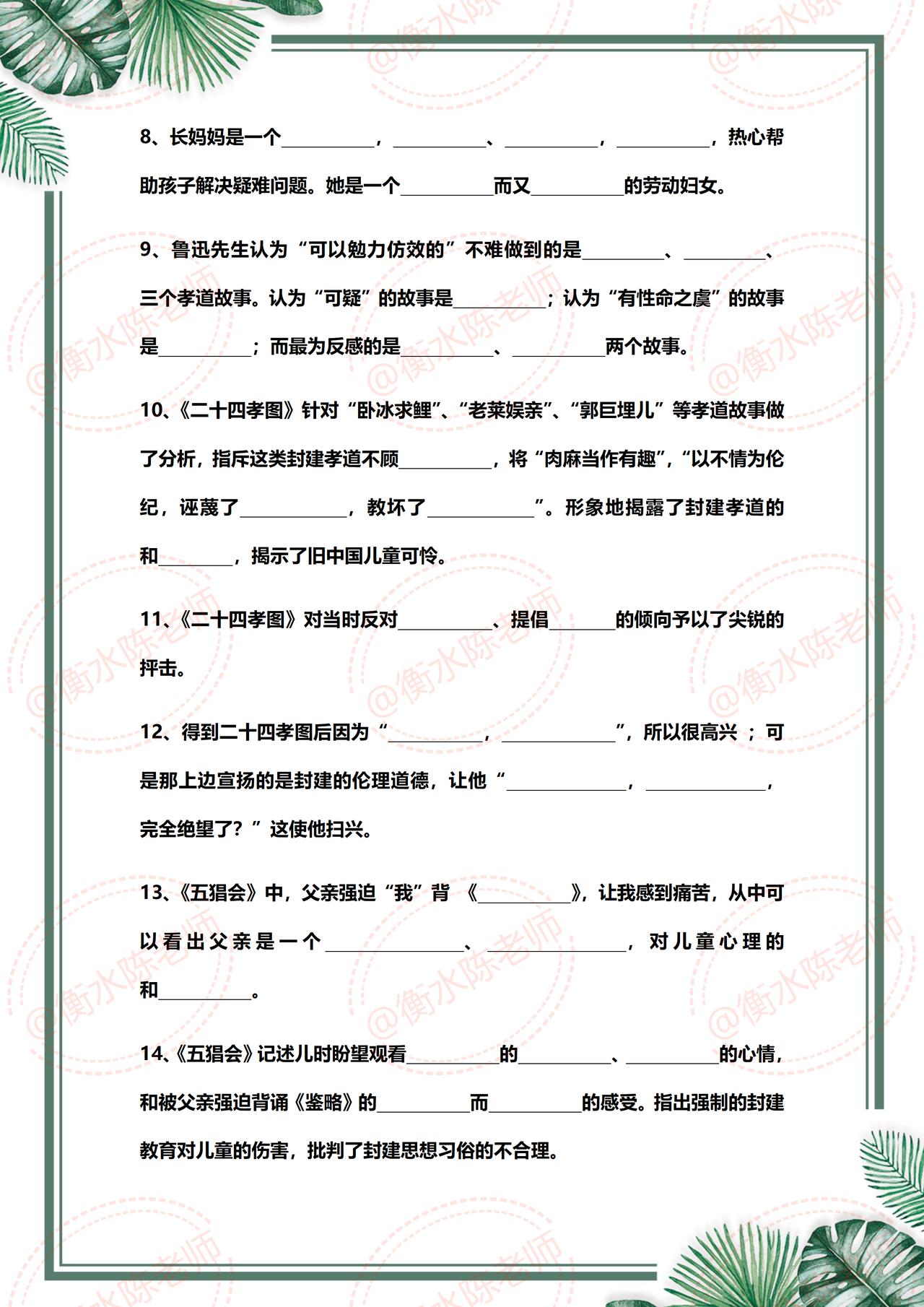 初一语文名著阅读《朝花夕拾》必考知识点,同学们提前做一遍,老师利用暑假2个多月的时间,终于把必出必考的考点、考题全部编写好了,吃透这33页纸,考试中让你不扣1分哦。