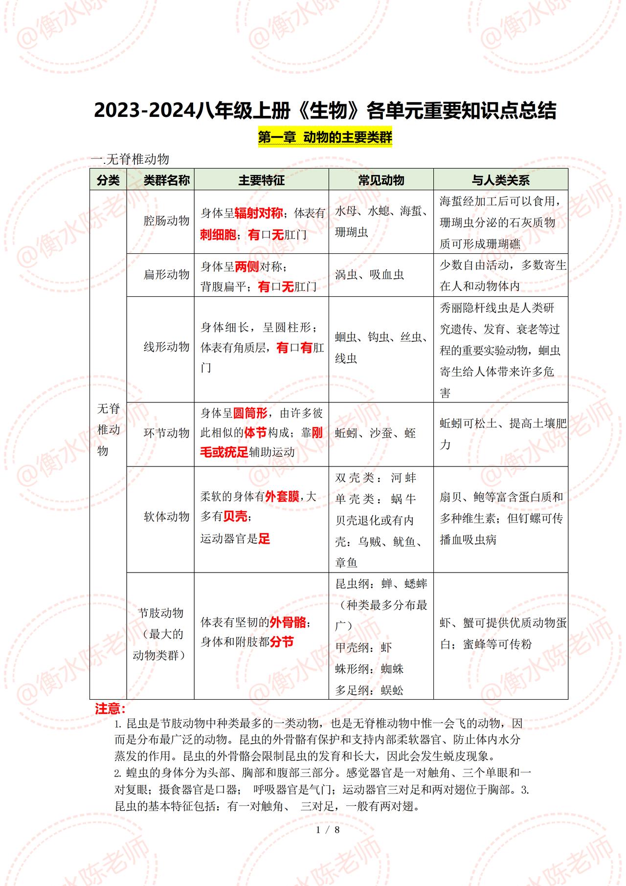 八年级上学期生物,各单元重要知识点总结,根据每个城市和版本编写的考点总结,对于八年级的同学,一定要注意了,面临2024年初中会考结业考试,想要获得好成绩,这套资料好好背诵,想要获取自己城市和版本资料的,记得跟我沟通哦。