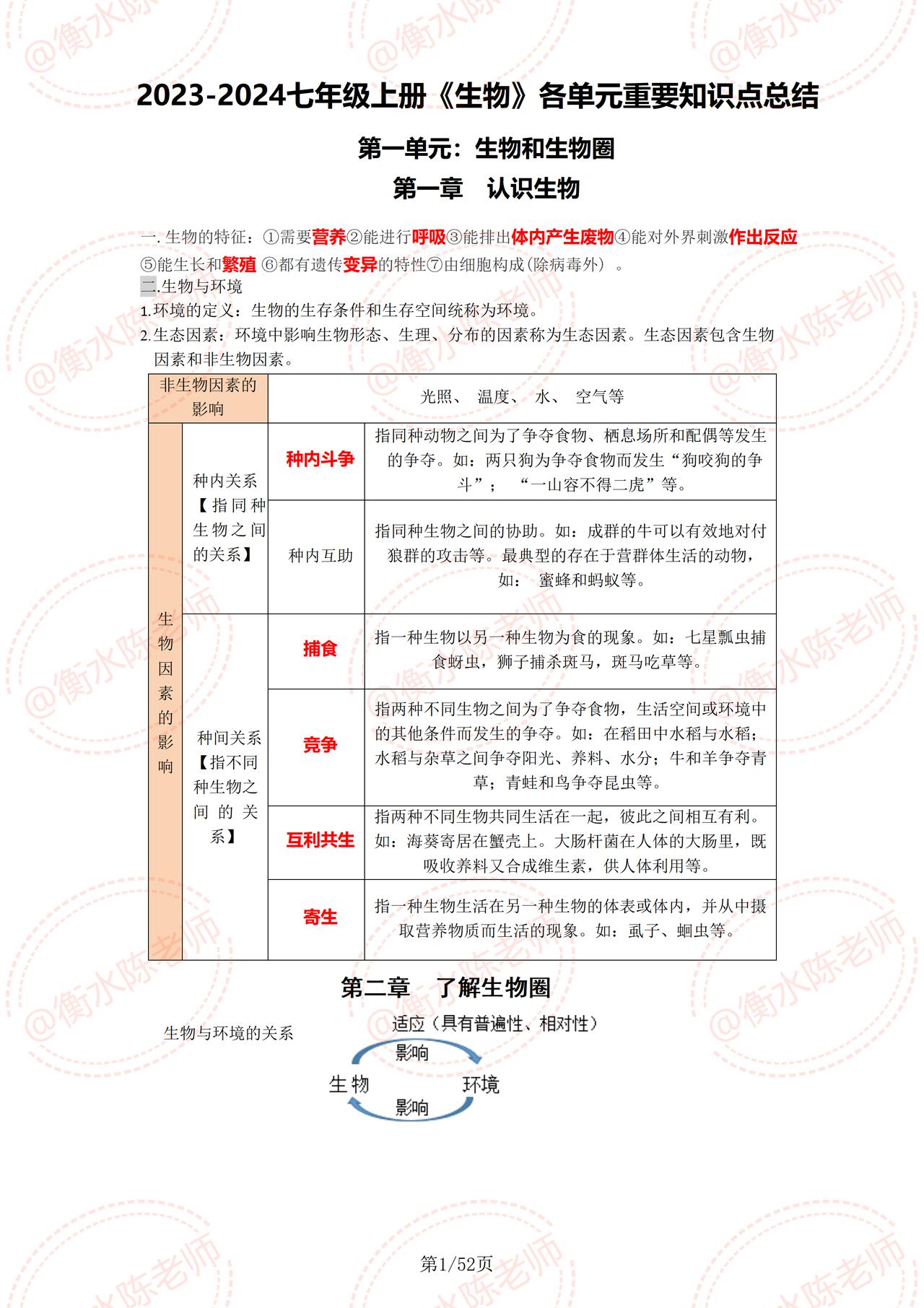 七年级上册生物,各单元必背重要考点总结,根据不同的城市和版本编写的重点,想要获取自己城市版本考点总结,并且想要获得好成绩的,跟我沟通哦。