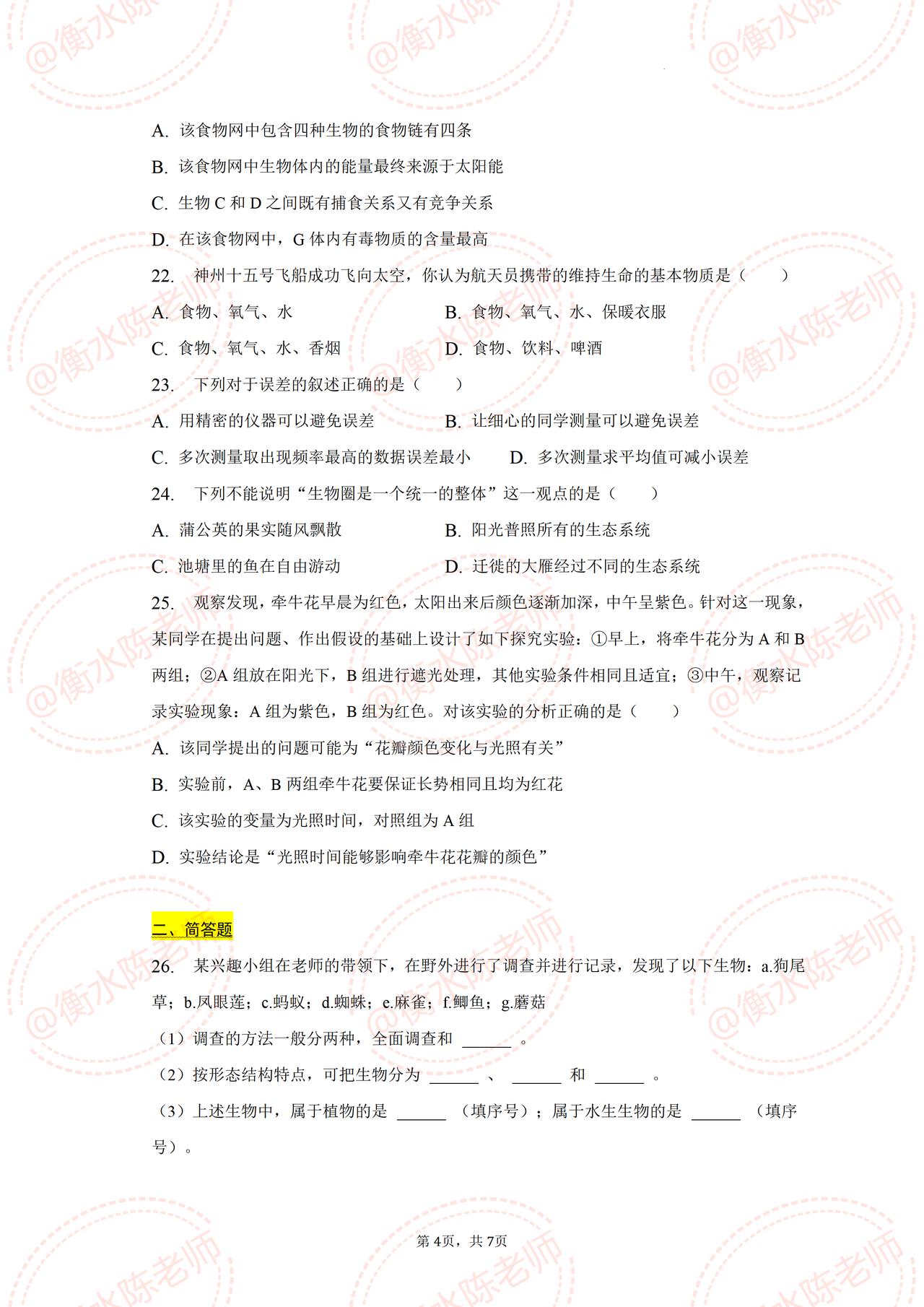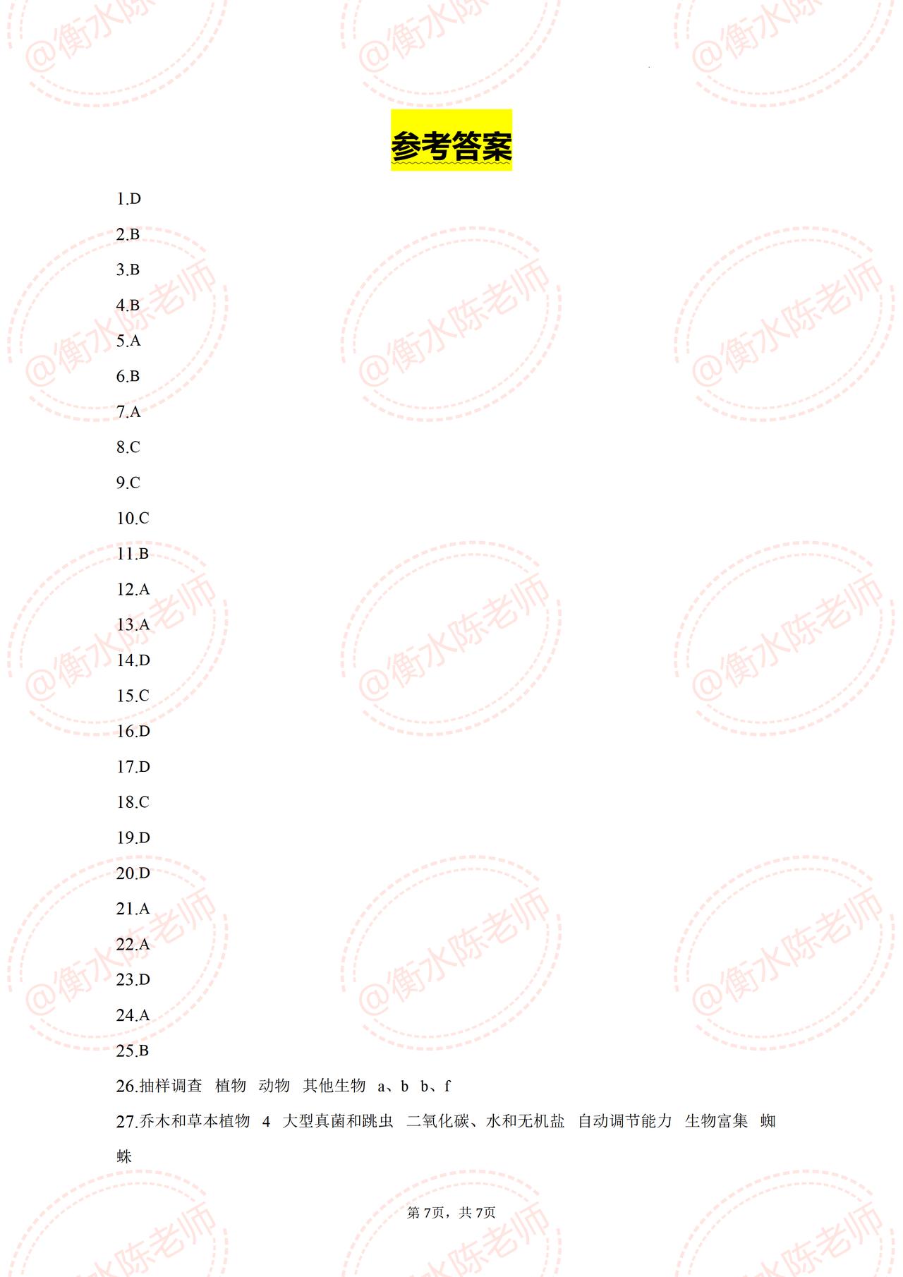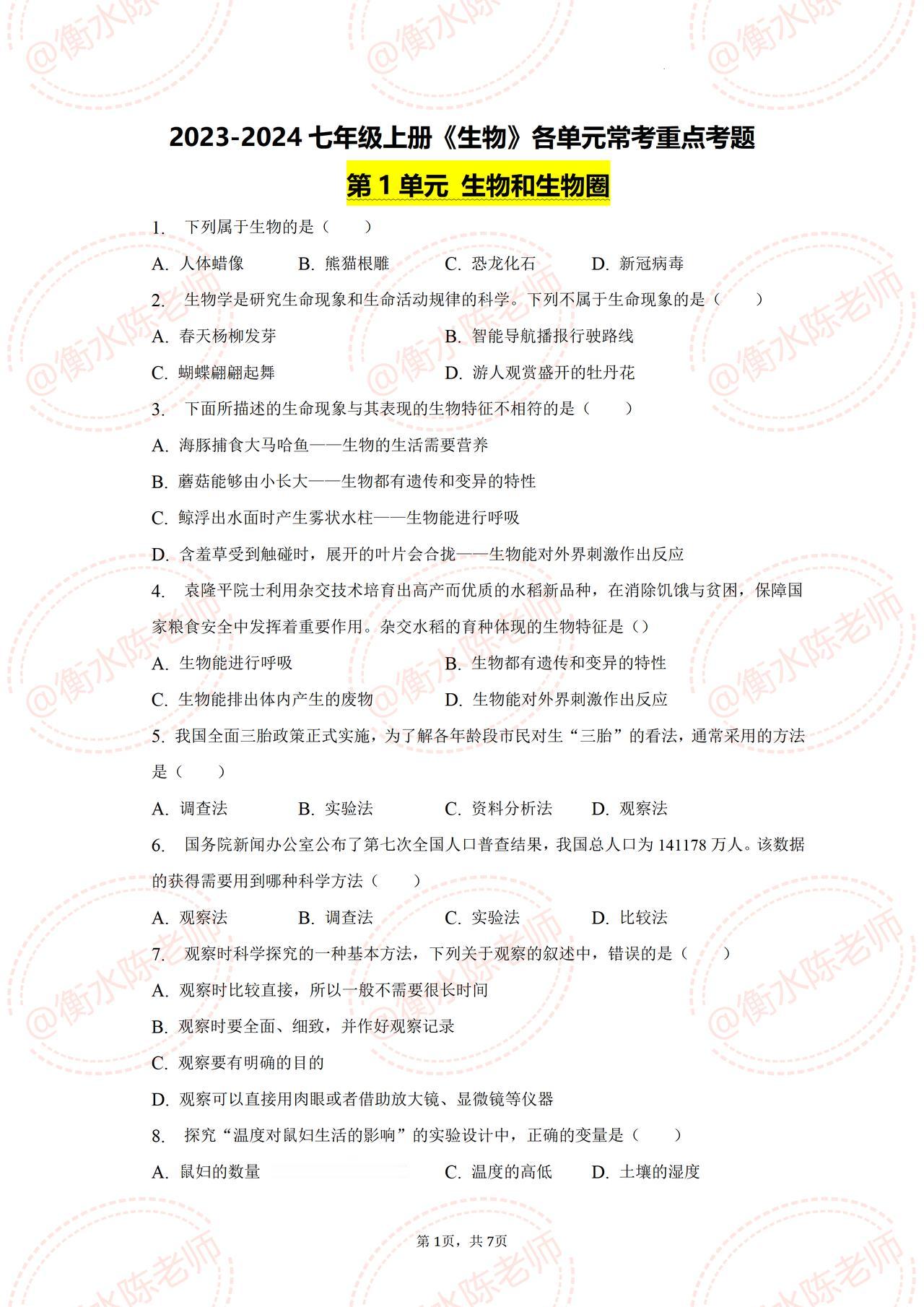 七年级上册生物,根据各个城市和版本编写的【各单元】常考【测试卷】,逢考必出的热点典型考题都在这里,吃透这份资料,生物稳考前3哦,想要获取自己城市单元测试卷的考生,跟我沟通联系哦。