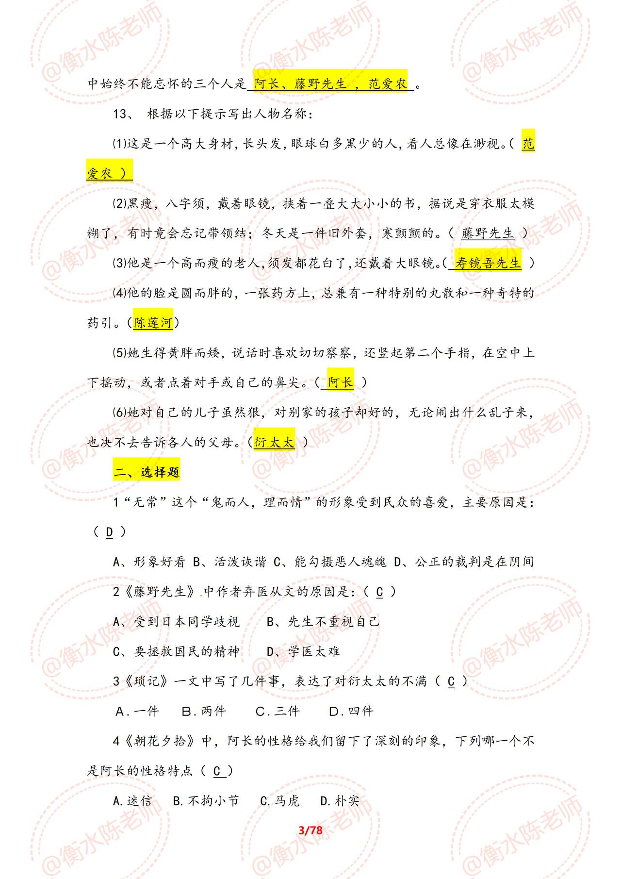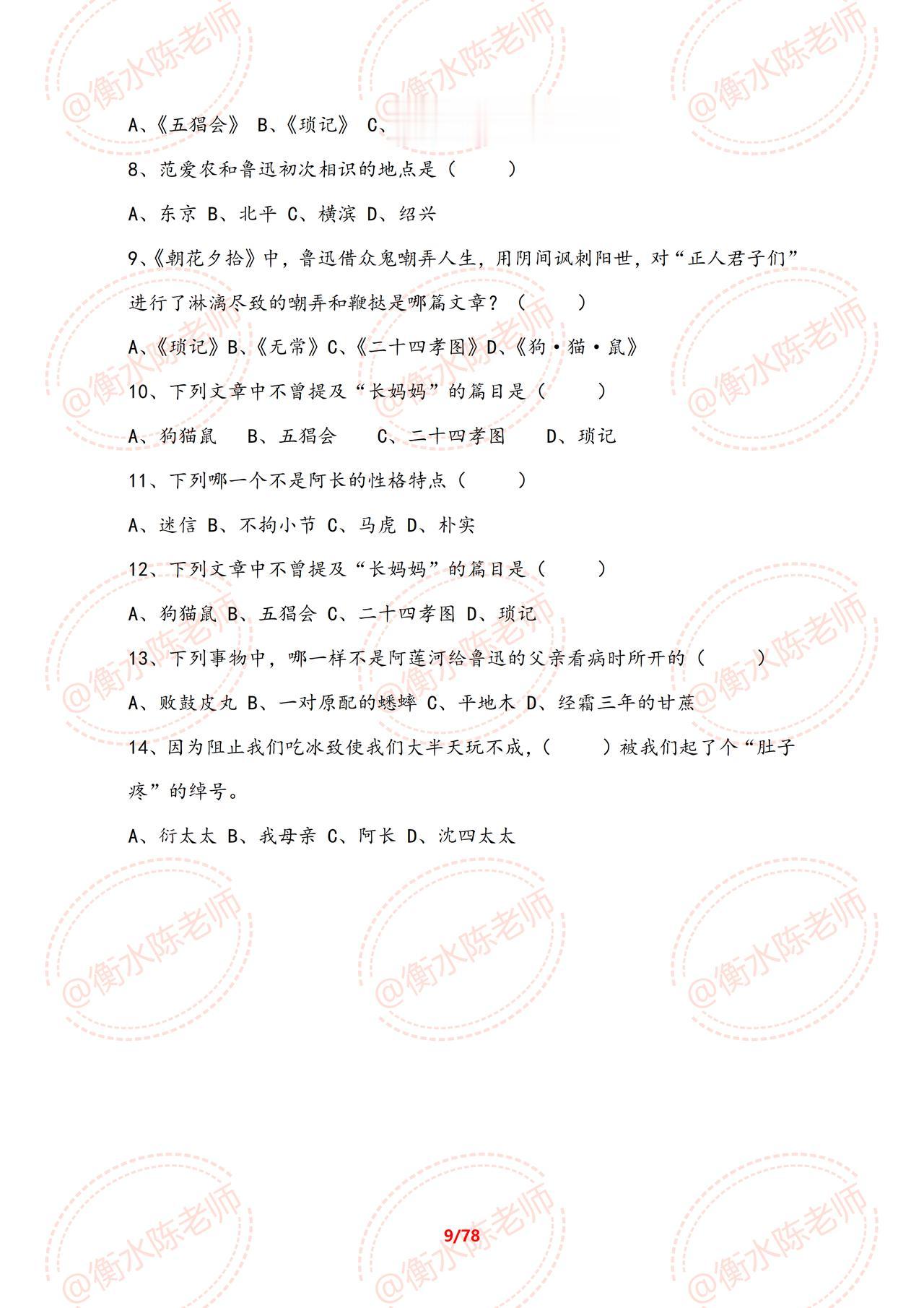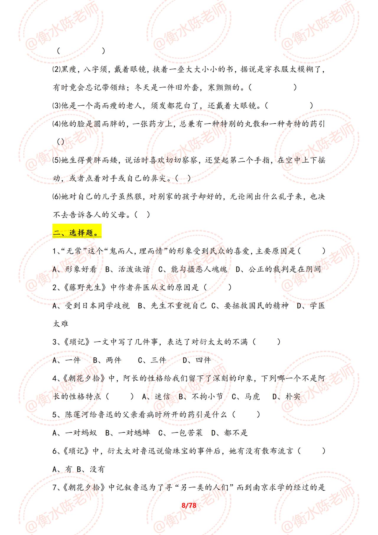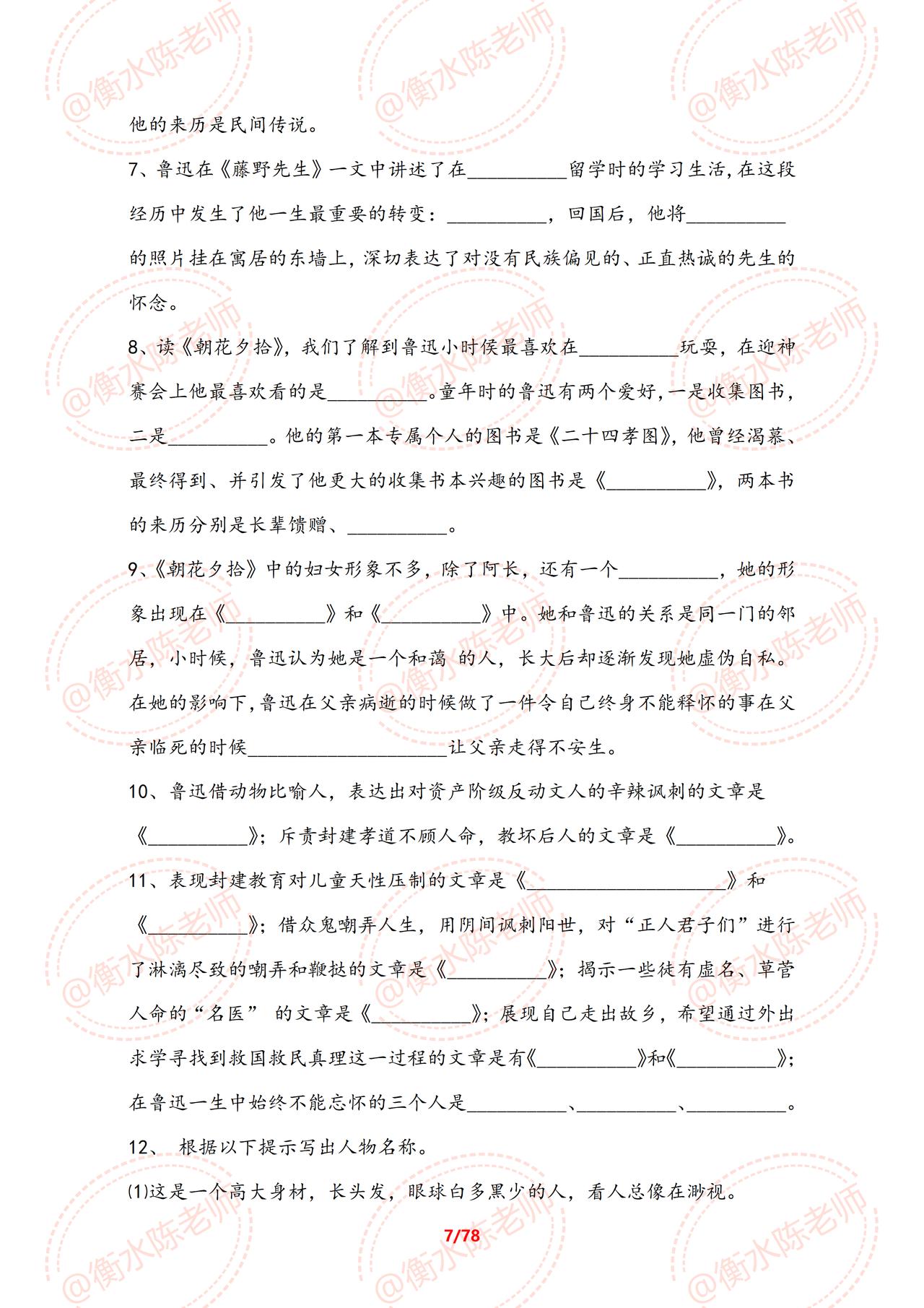七年级上学期语文名著阅读《朝花夕拾》,耗费暑假2个多月的时间,终于把必考的知识点、重点考题全部编写好了,由于资料比较多,需要全部资料和我沟通哦。