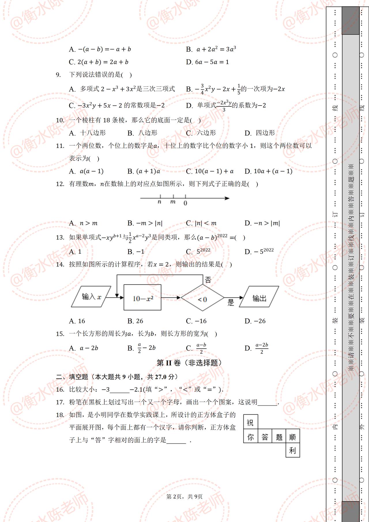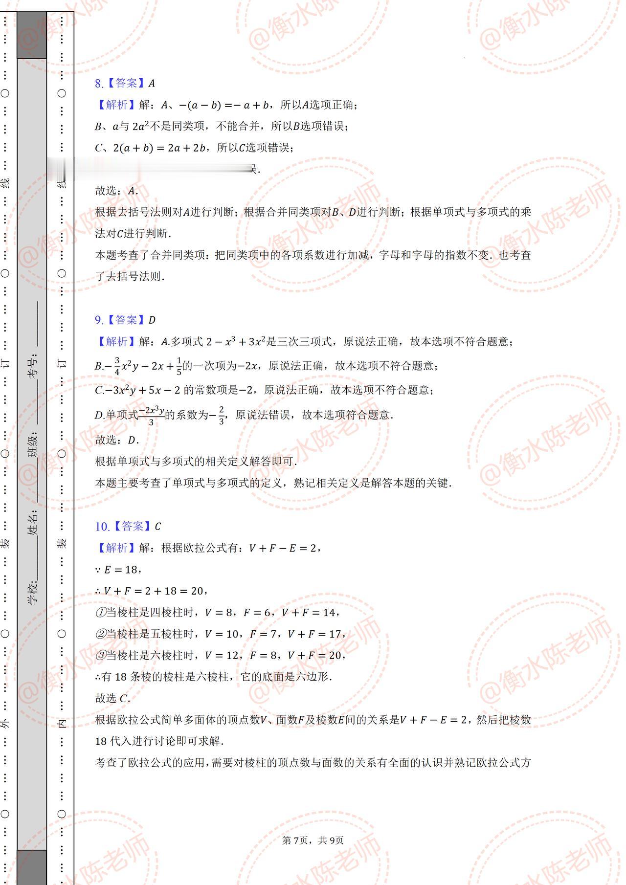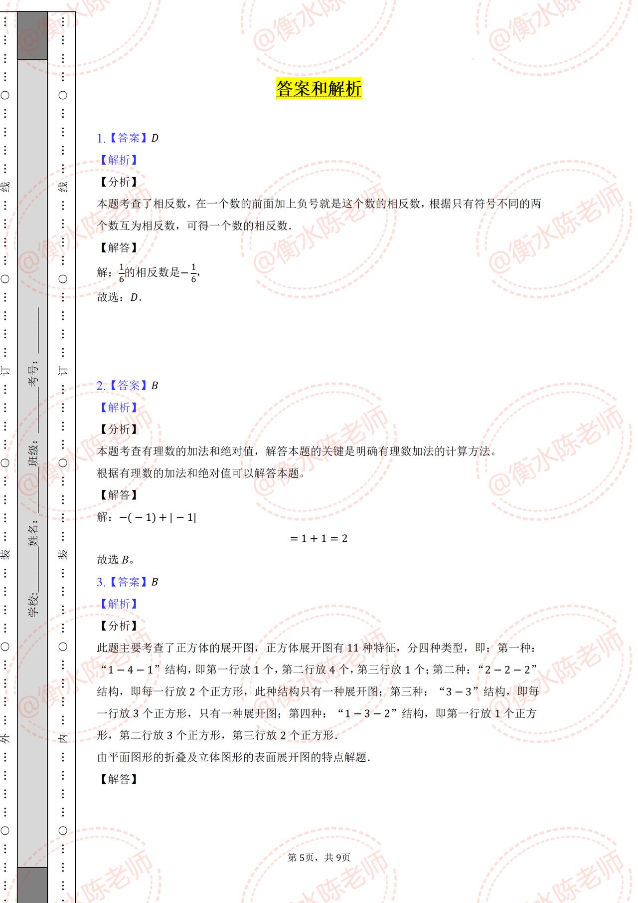七年级上学期数学,第一次月考重点试卷,提前发给同学们,暑假开学到现在学了这么久了,究竟有没有沉下心认真学习,通过这次试卷的测试,就知道了,月考卷根据不同的城市和版本编写的,想要获取自己城市月考卷的,可以和我沟通哦。