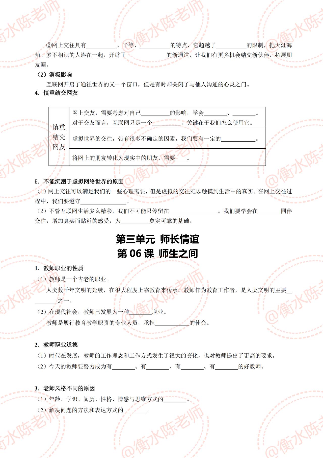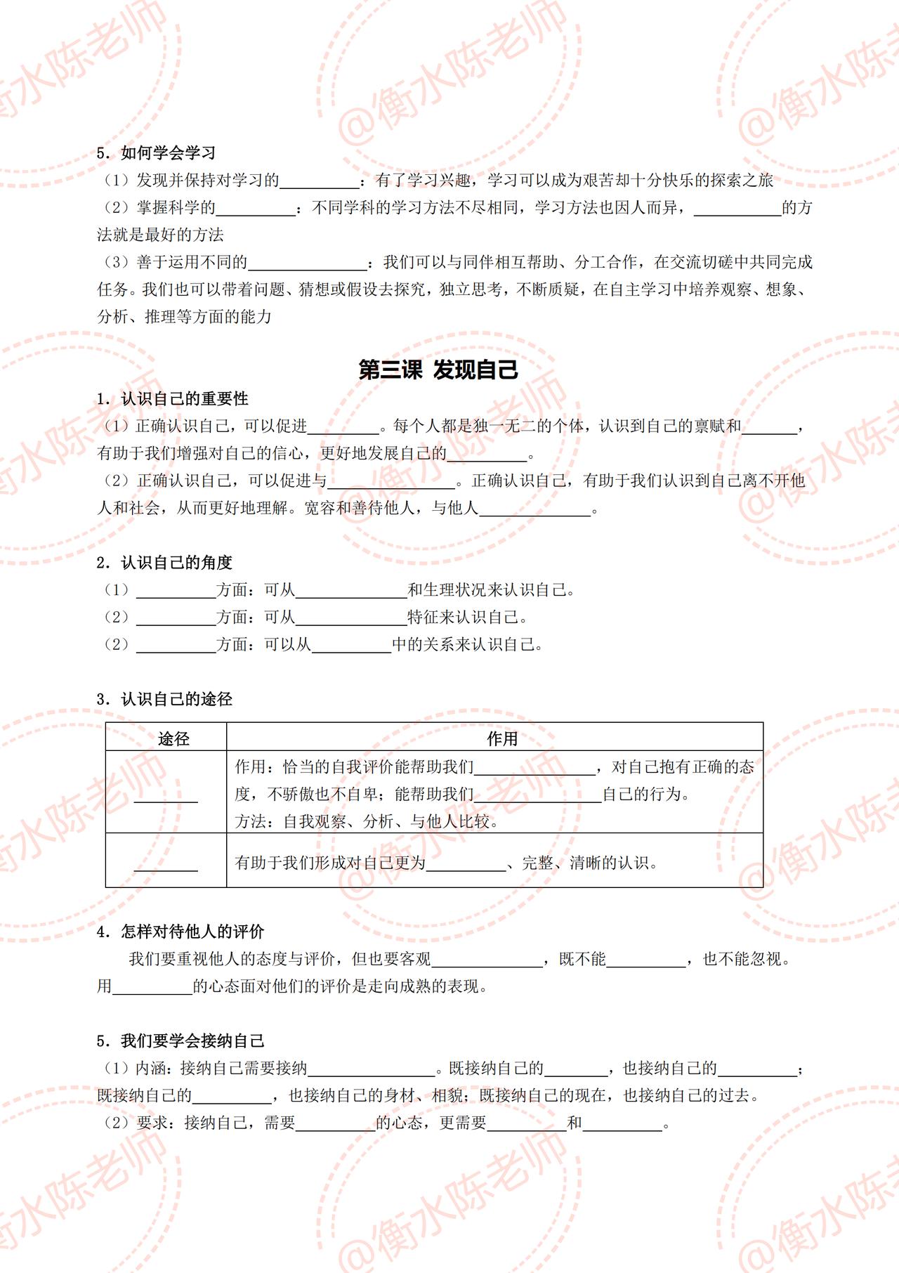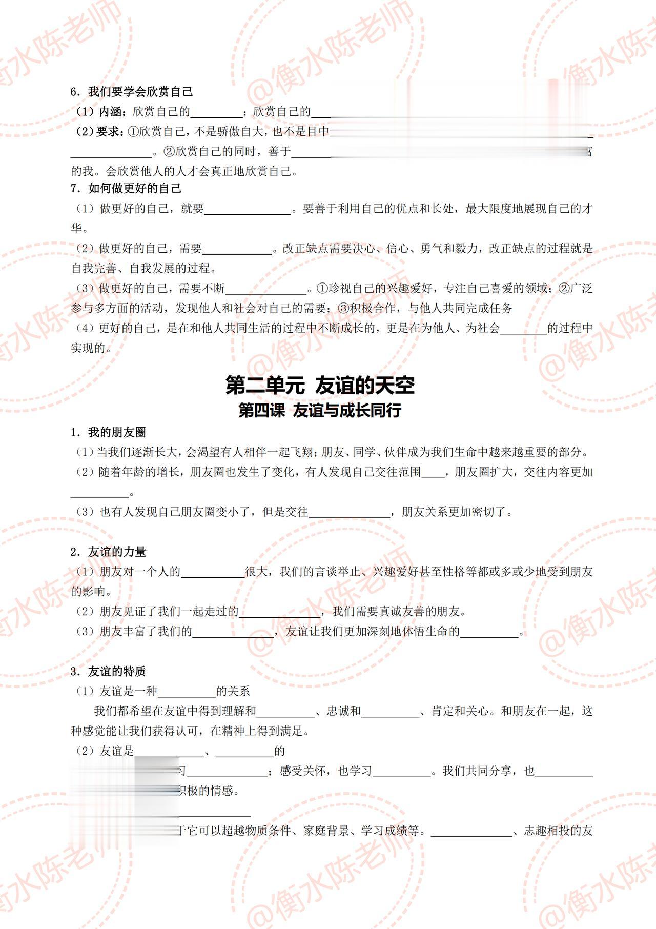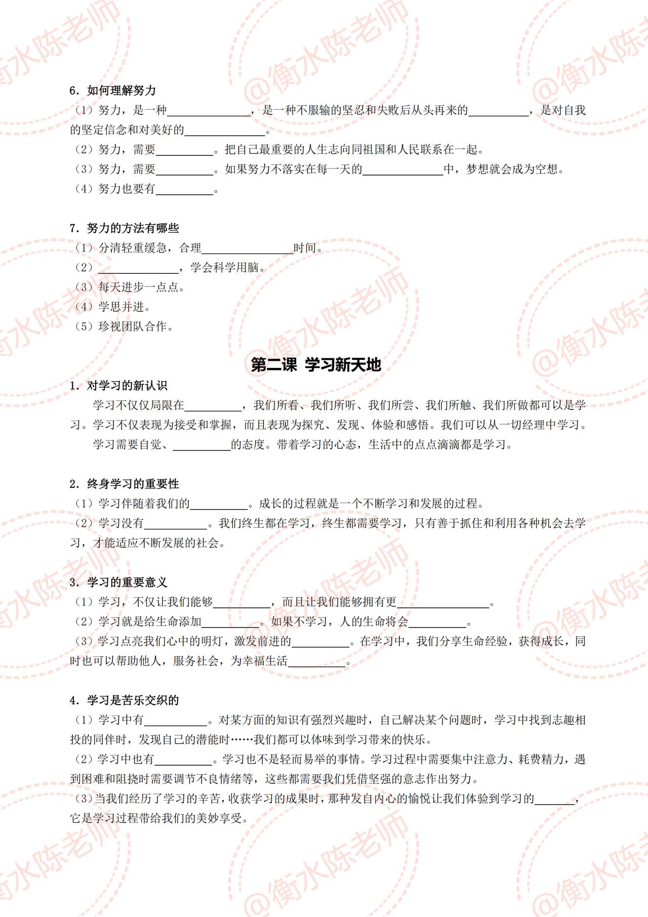 七年级上册道德与法治,第一次月考必出知识点总结,提前发给同学们,这些必考内容好好背完,让你成绩稳考前3哦,资料比较多,只能发布一部分哦,想要全部和我沟通哦。