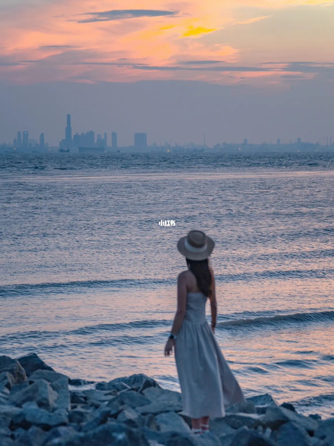 海风、沿海公路、芦苇荡、远处的上海四件套,日落伴随着微光浮在水面上