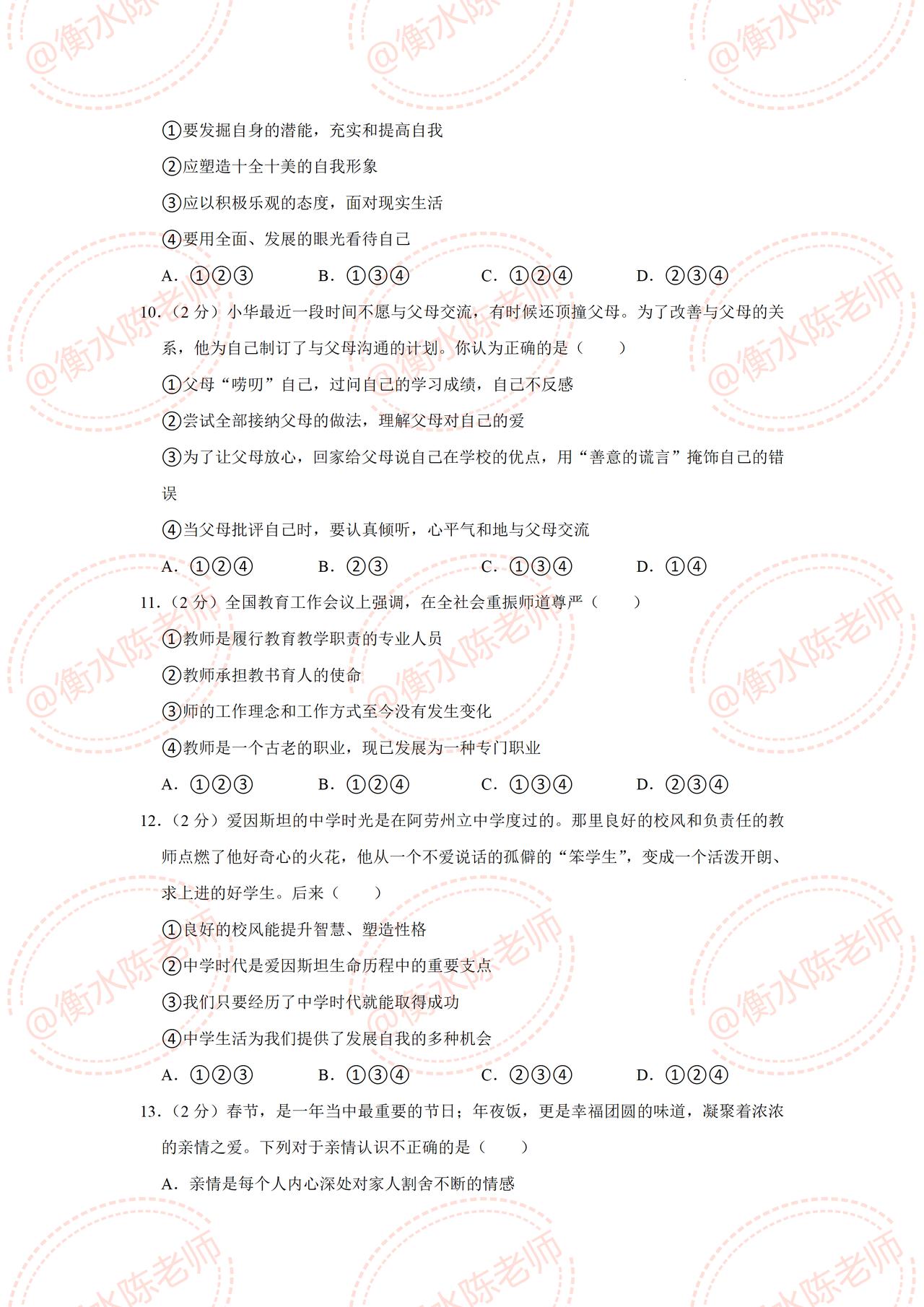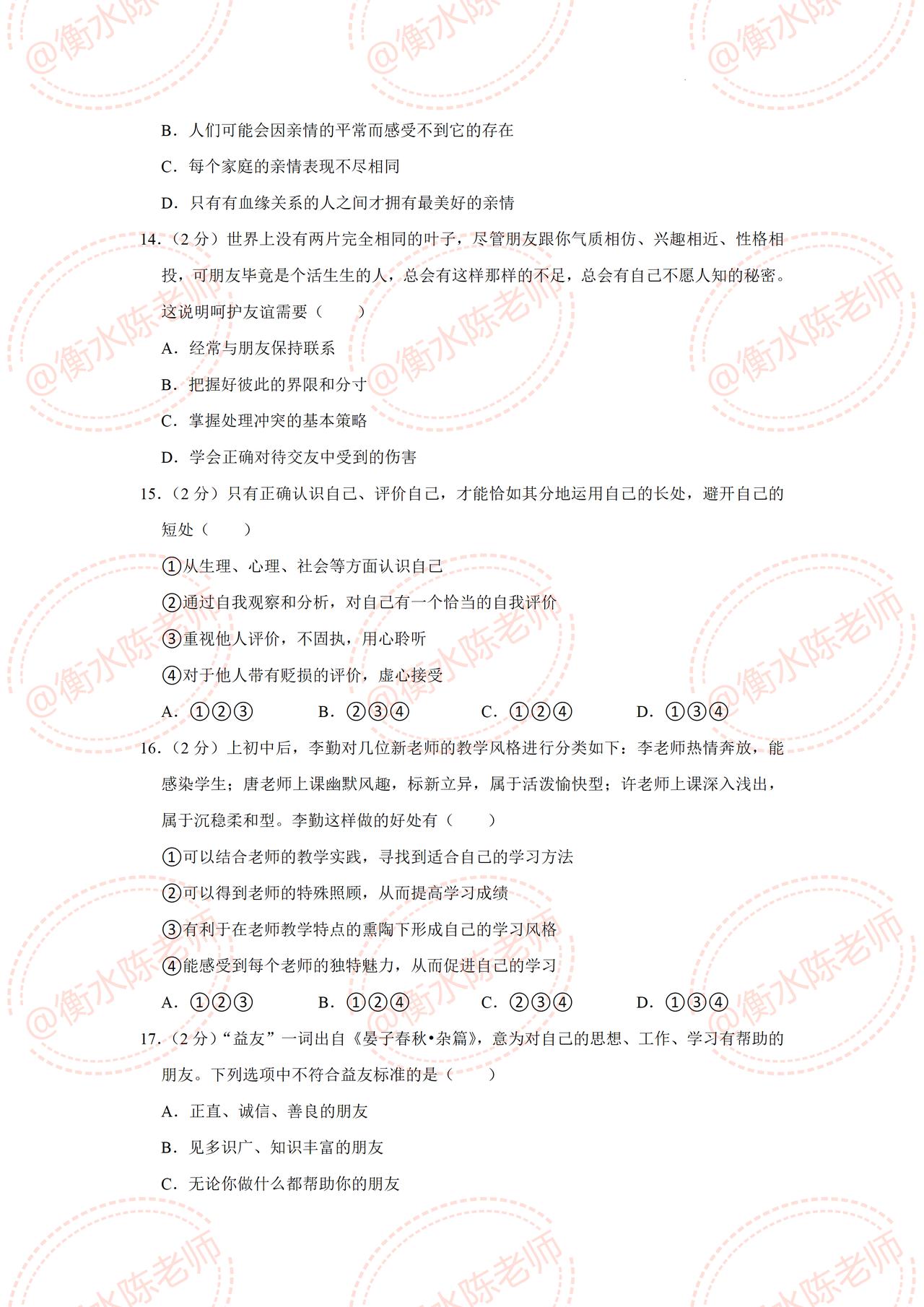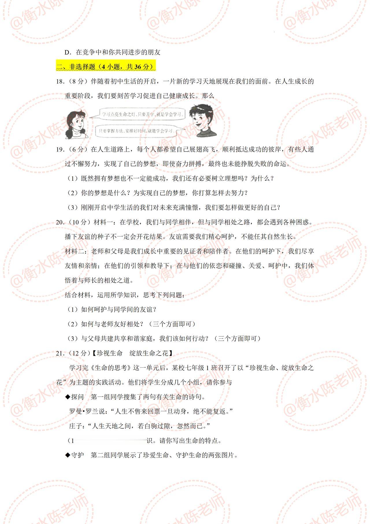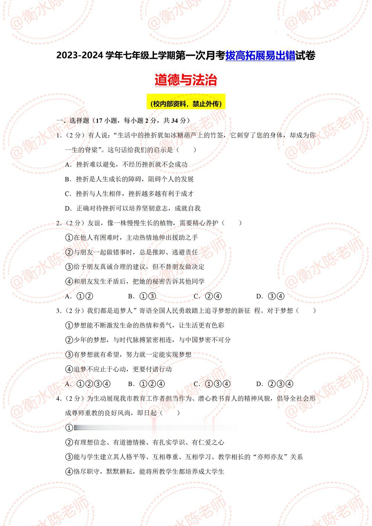 七年级上册政治,第一次月考试卷必出重点考题,同学们升入初中以来的第一次考试,一定要重视起来,月考试卷,根据不同的城市和版本编写的,想要获得好成绩,做一遍自己城市月考试卷的,跟我取得沟通哦。