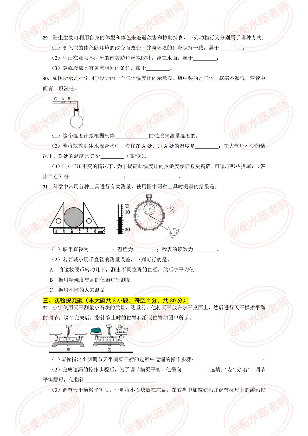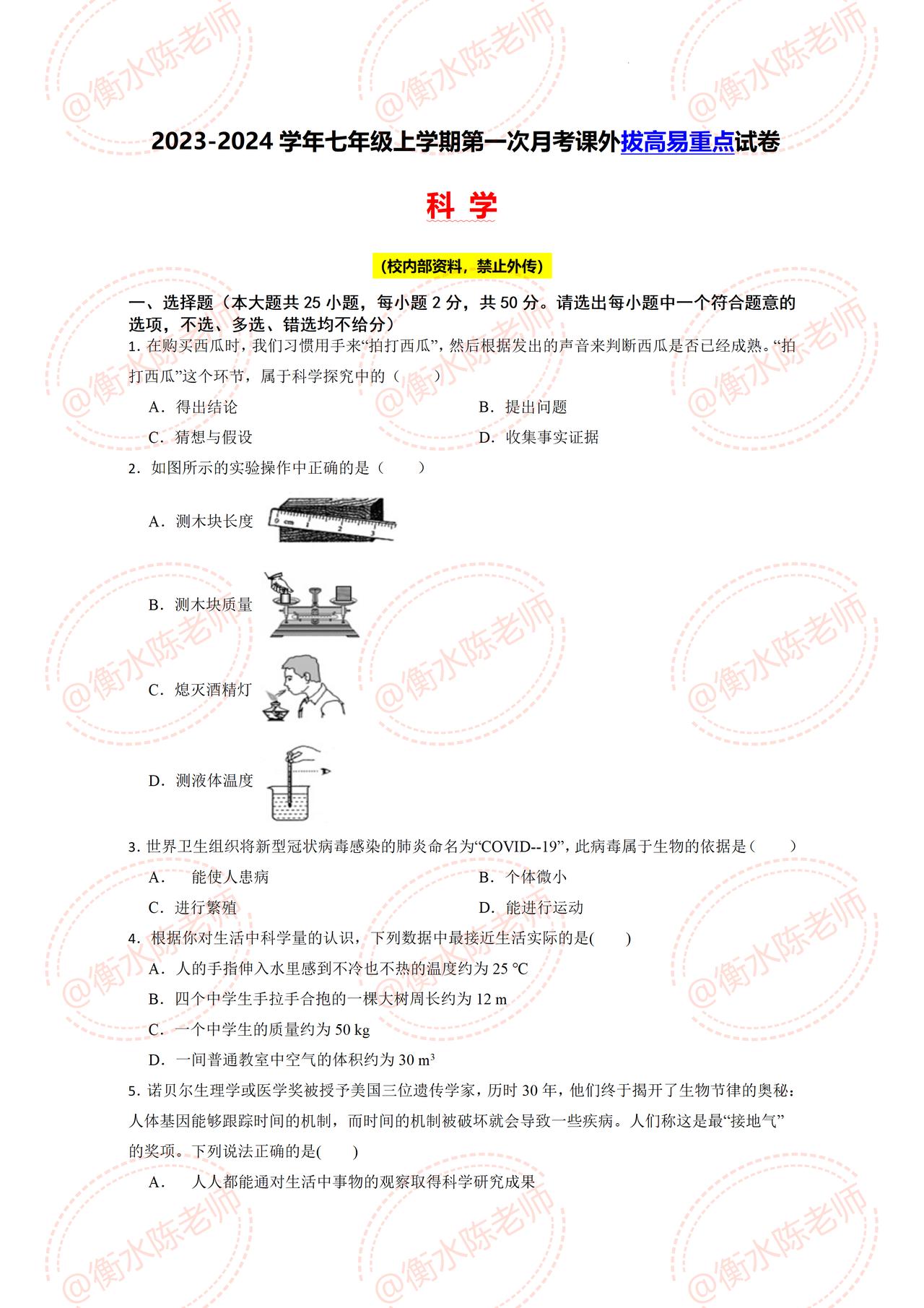 浙江省份,根据不同的地市、不同版本,编写的2023-2024【华东师大版】全新七年级上册【科学】第一次月考,试卷常考热点考题,提前发给同学们,每个科目3套试卷,尤其是刚升入初一得同学们,这次月考很关键,是进入初中以来得第一次,新的开始,开头一定要考出好成绩,想要获取自己城市月考试卷得考生,记得跟我沟通哦。