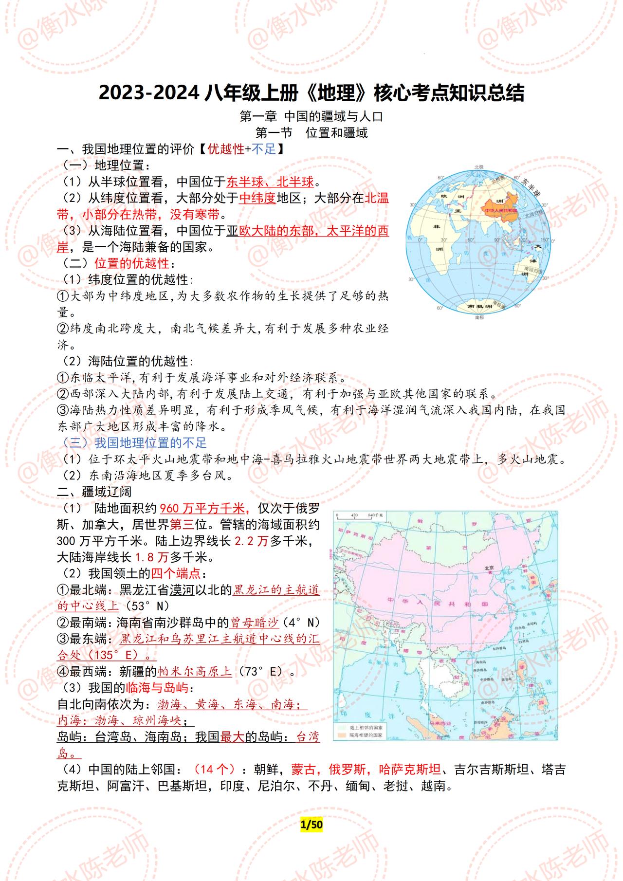 2023年全新八年级上册地理,月考、期中,预习复习必背资料,根据不同的版本和城市编写的,背完这套资料,明年初中会考地理生物结业考试,稳考等级A,由于编写的资料比较多,只能发布一部分,需要全部的考生,记得跟我沟通哦。