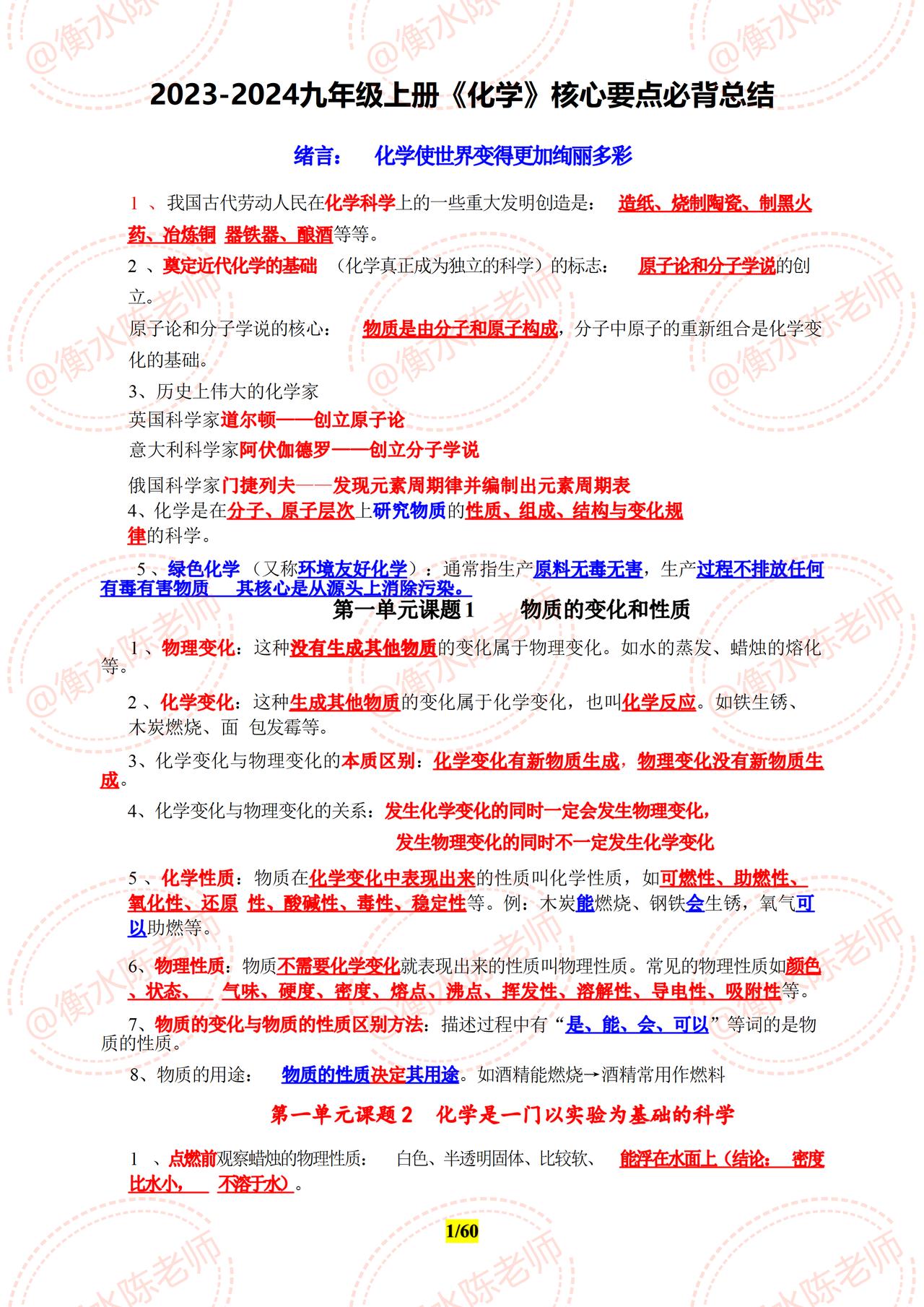 九年级上学期化学,月考、期中考,预习复习必背重点资料,想要这次月考、期中考获得优异成绩,考进班级前3,这套资料提分必背资料,资料较多,需要全部和我沟通哦。