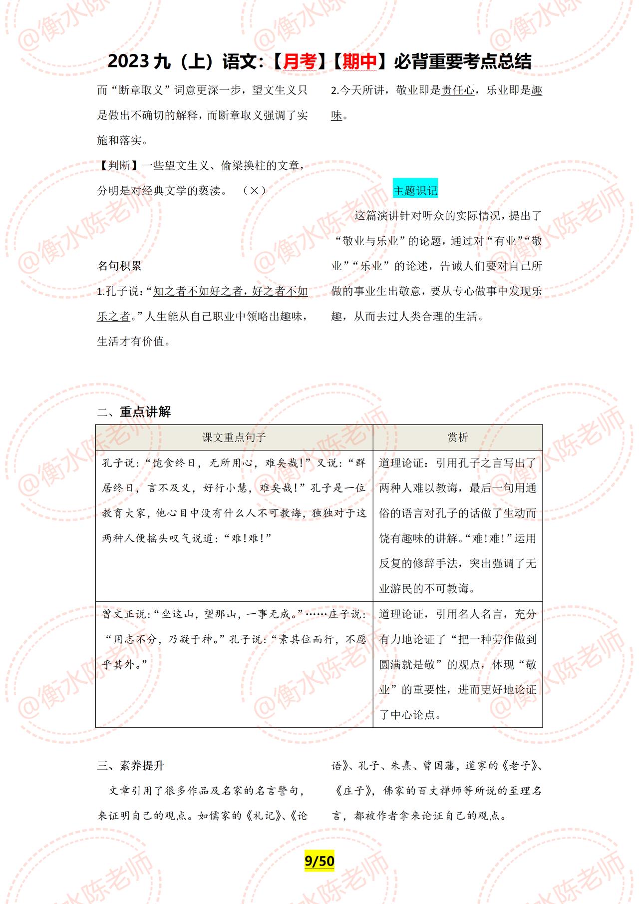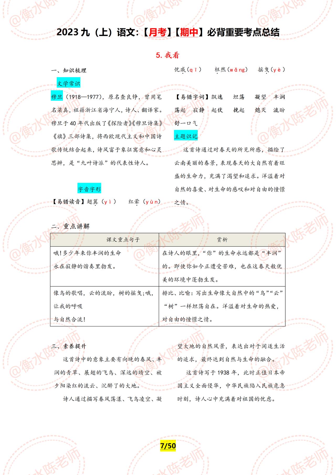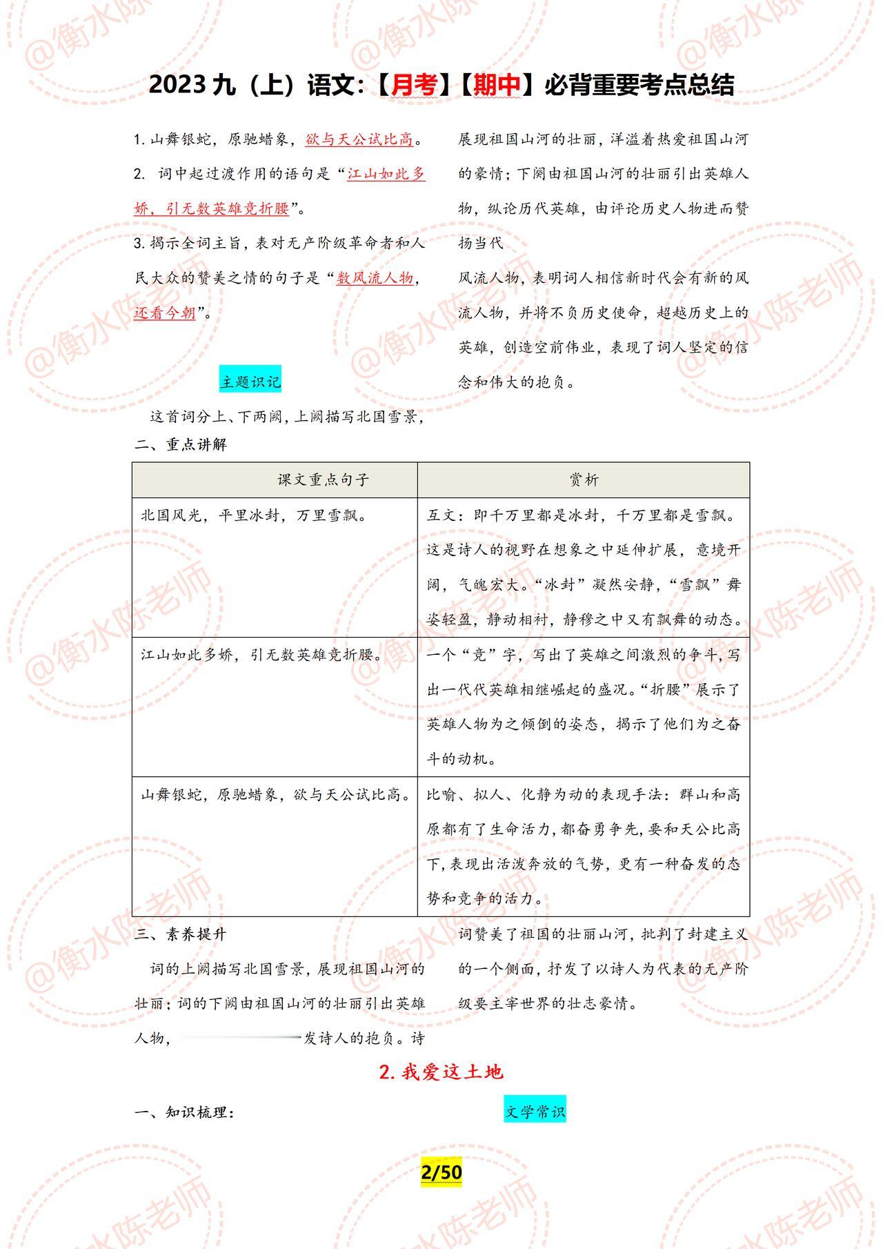 九年级上册语文,周考测试,月考,期中,经常考到的重要必背知识点,提前再给大家发一遍,学了这么久,可以停下脚步测试一下了,究竟学的怎么样,通过这些章节的内容一测便知,如果你的语文基础弱,找不到方向,找不到重点,没有适合自己的学习方法,这套资料好好看哦,由于资料内容比较多,只能发布一部分哦。