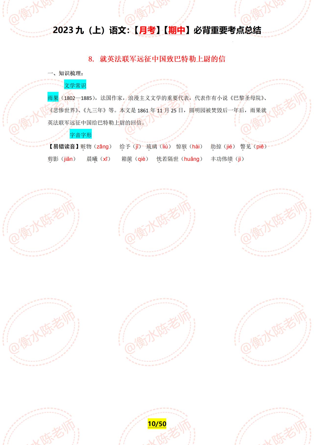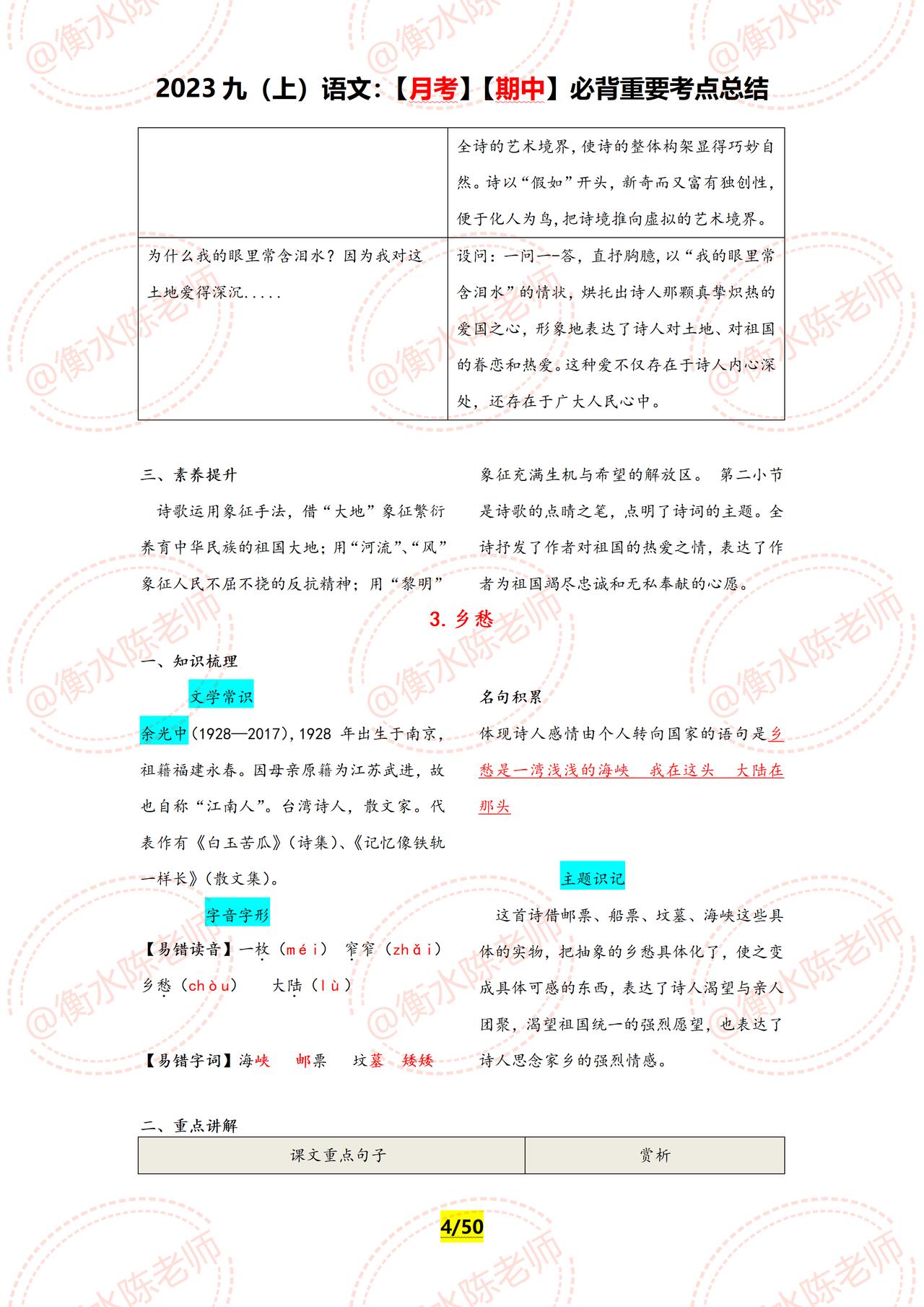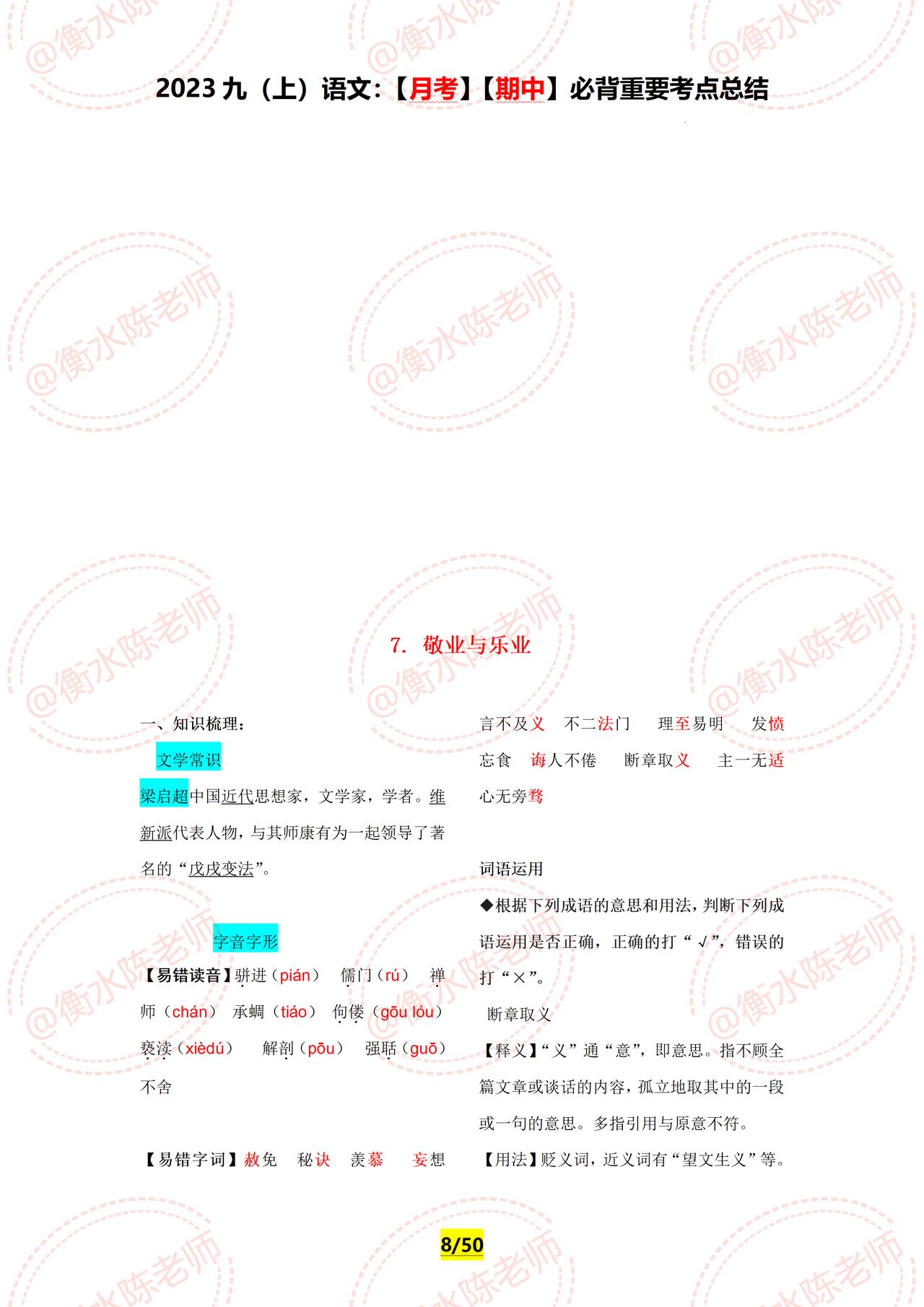 九年级上册语文,周考测试,月考,期中,经常考到的重要必背知识点,提前再给大家发一遍,学了这么久,可以停下脚步测试一下了,究竟学的怎么样,通过这些章节的内容一测便知,如果你的语文基础弱,找不到方向,找不到重点,没有适合自己的学习方法,这套资料好好看哦,由于资料内容比较多,只能发布一部分哦。