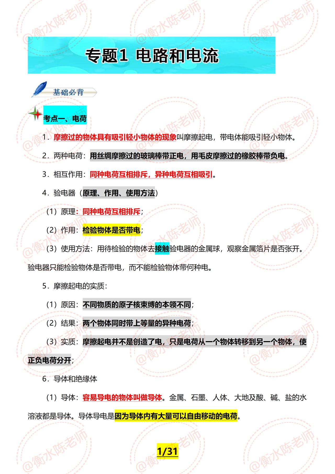 九年级物理难度开始已经有些难度了,有一部分同学跟老师说,物理相关【电流】【电路】课堂上抓不住重点,几次小测试老是在这一部分失分,希望老师找个名师指点一下,通过几天的努力,老师通过各种资源渠道,把九年级物理经常考到的、难度稍微大一些的题型,按照热点,按照专题,由我的好朋友西北工大附属中学老师,编写的提分资料,私下发给我了,我把这些好的资料发给大家,由于专题复习资料比较多,只能发布一部分哦,九年级的学生,一定要认真对待每一个知识点,毕竟面临2024年中考升学考试,你们准备好了吗。