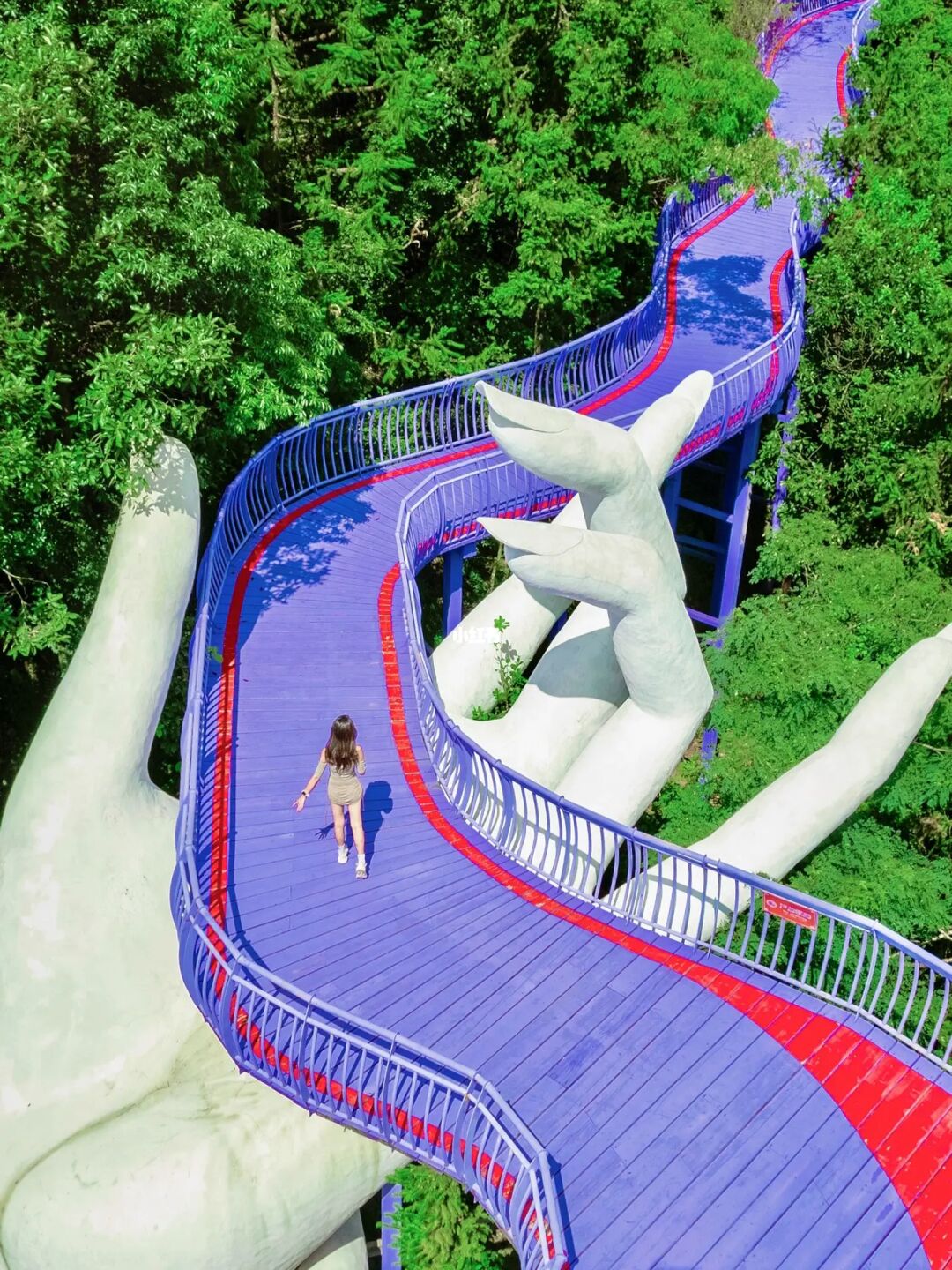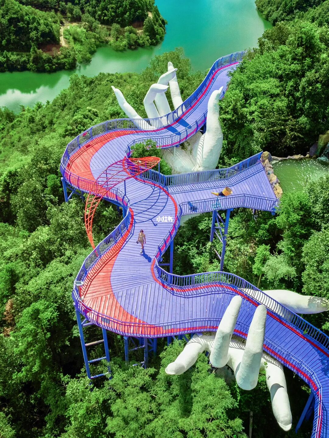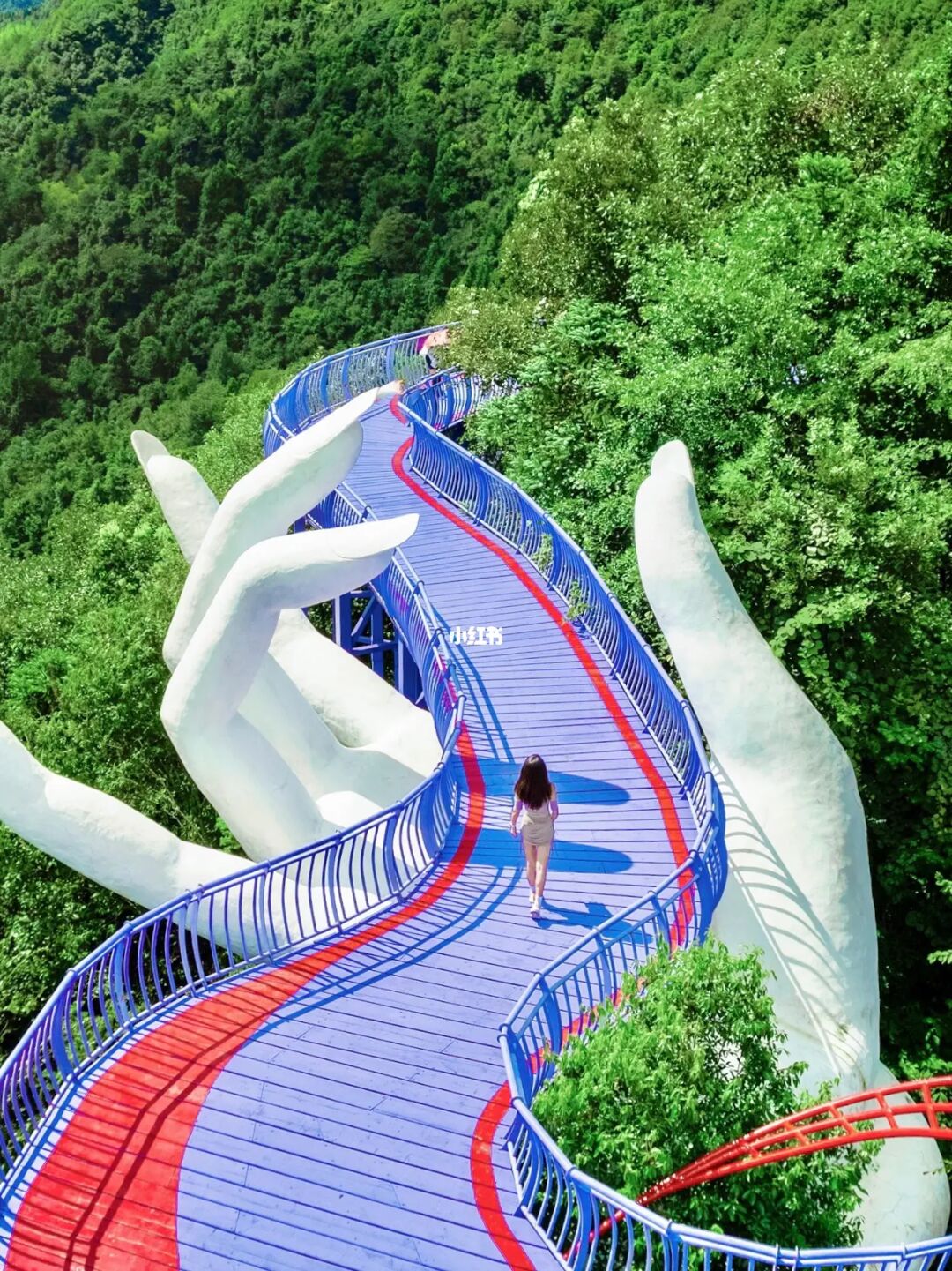 山间的紫色手形状的长廊,被一双巨型的纤纤玉手托举而起,可以俯瞰整个山谷绝美的风景⛰️