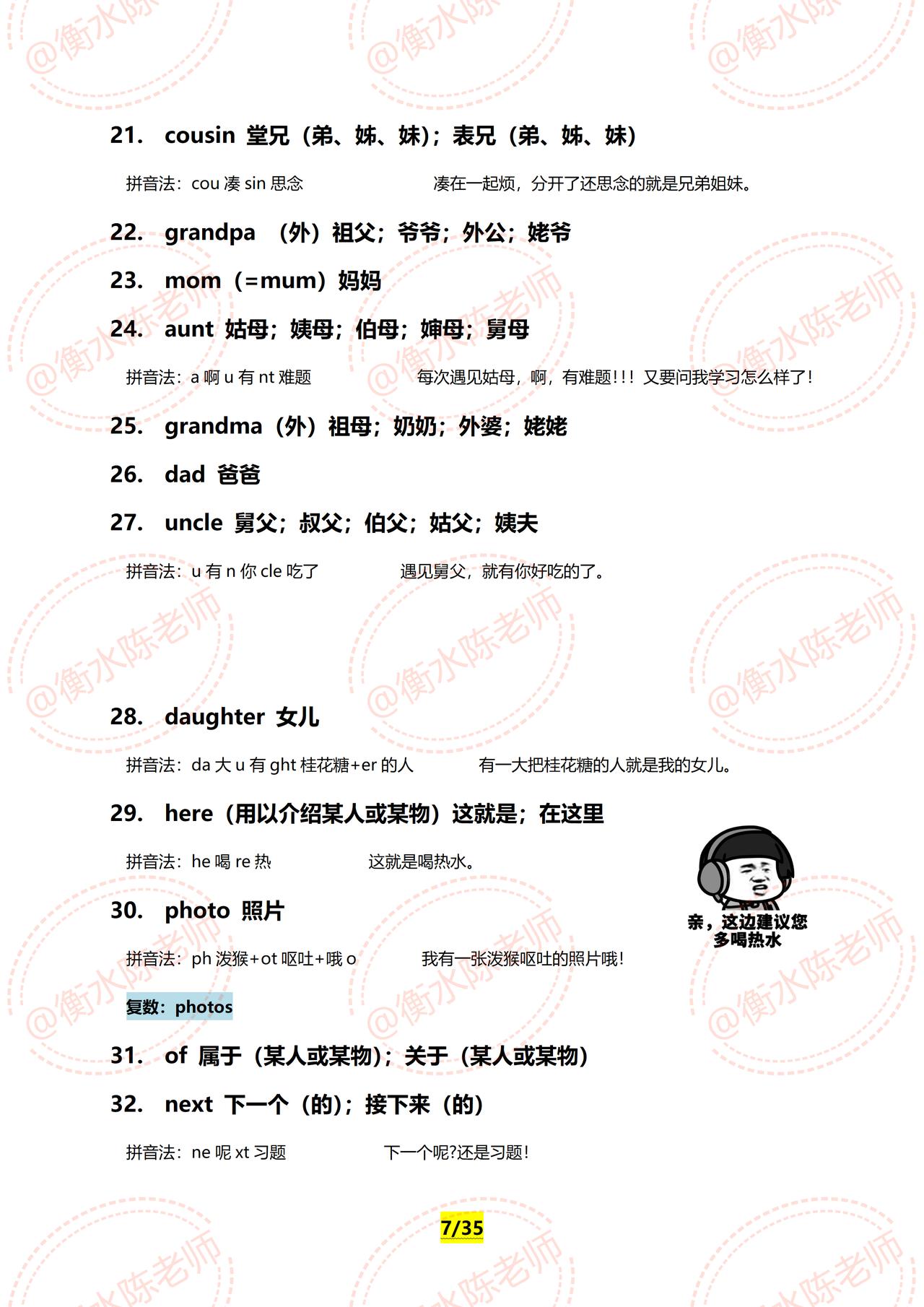 七年级上册英语,如果英语单词没有方法,没有技巧,这套英语单词快速记忆口诀,同学们好好利用起来,适合懒惰,不动脑筋,贪玩,没有方法的同学,由于资料比较多,只能发布一部分,需要全部资料,和我沟通联系哦。