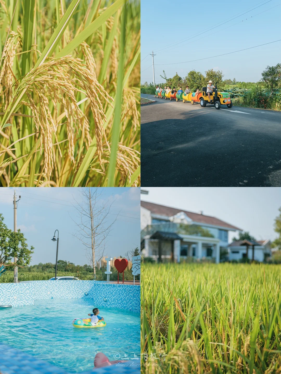 ✨✨ 九月应该是属于田野的,充满了生机与活力,金色的麦穗弯了腰,也在说你好。 听着蝉鸣睡着,醒来时推开门是田间大自然吹来的微风。 成片的稻田包围着这坐小乡村,而这里有一间乡村民宿。 坐着小火车游览整个村庄的感觉很奇妙,像回到了外婆家的小时候。 芝麻在家家户户门口摆着,稻田的风吹来是甜甜的味道。 挖藕,割稻谷,踩棉花,打芝麻,画草帽,体验观察乡村田野的景象,是被快乐满足填满的两天一夜,甚至不愿意离开~ 🍭吃: 民宿的阿姨特别热情,人很好,带小朋友做了馍馍,体验感很好。民宿有自助早餐,丰富好吃。正餐都可以点,食材感觉都很新鲜。 🏡住: 我们住的是星空家庭亲子房,房间很大,在大大的露台看风景聊天太惬意了~ 🌾玩: 除了季节限定的秋收外,小朋友还可以玩Diy棉花糖,冰淇淋,画帽子,露营,飞盘,还有室外游泳池等等。村里还有个咖啡馆和扎染馆可以睡觉体验。 地址:湖北省孝感市云梦县伍洛镇十月村 导航:花开十月民宿(武汉出发约1.5h)