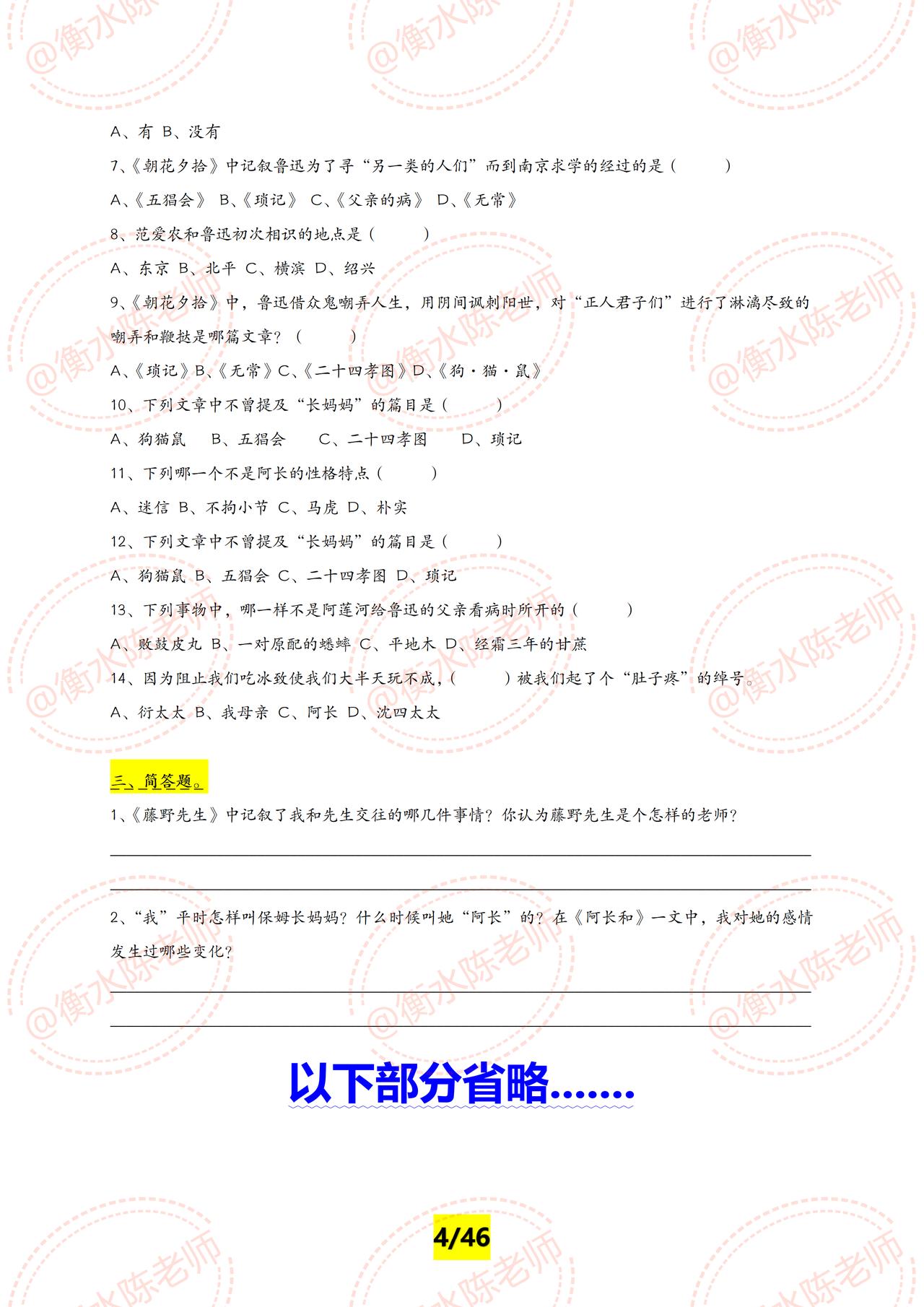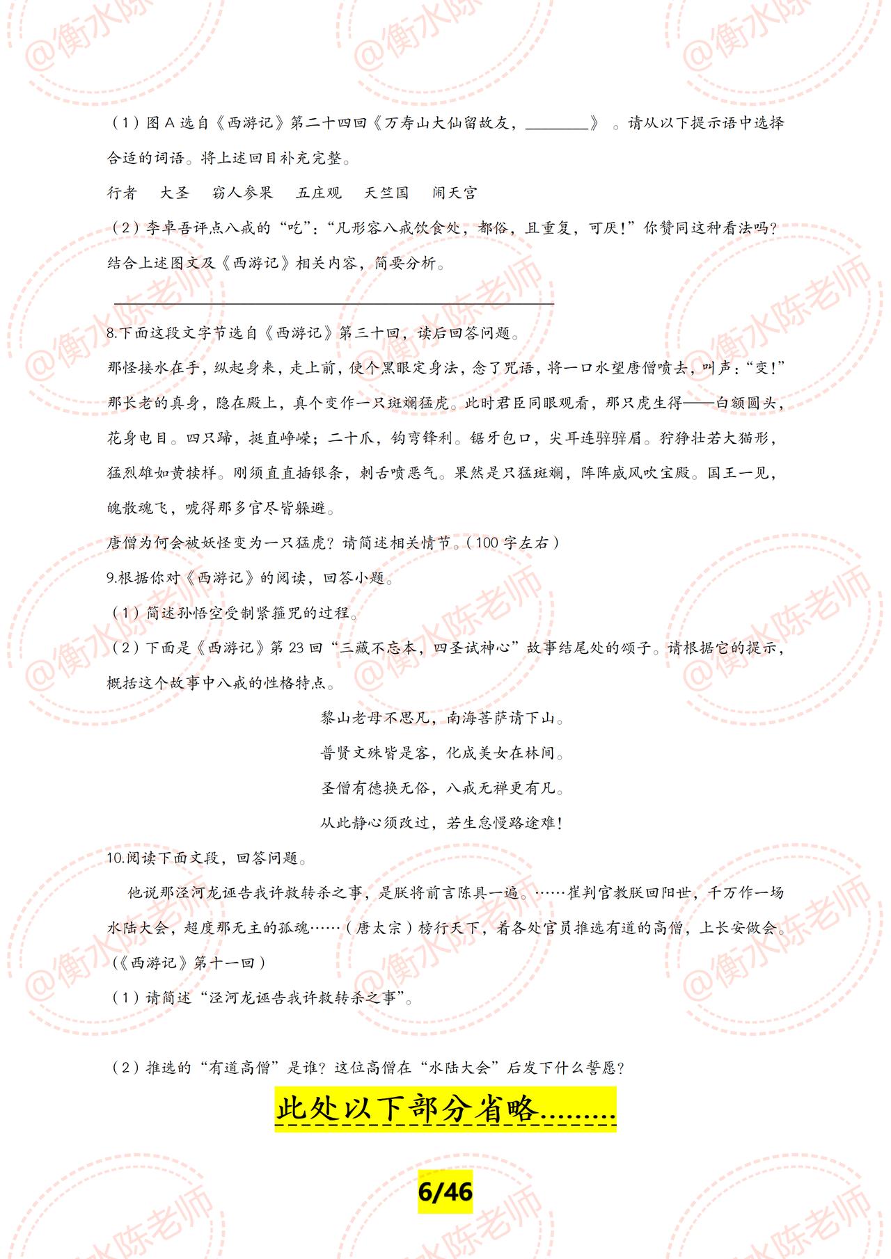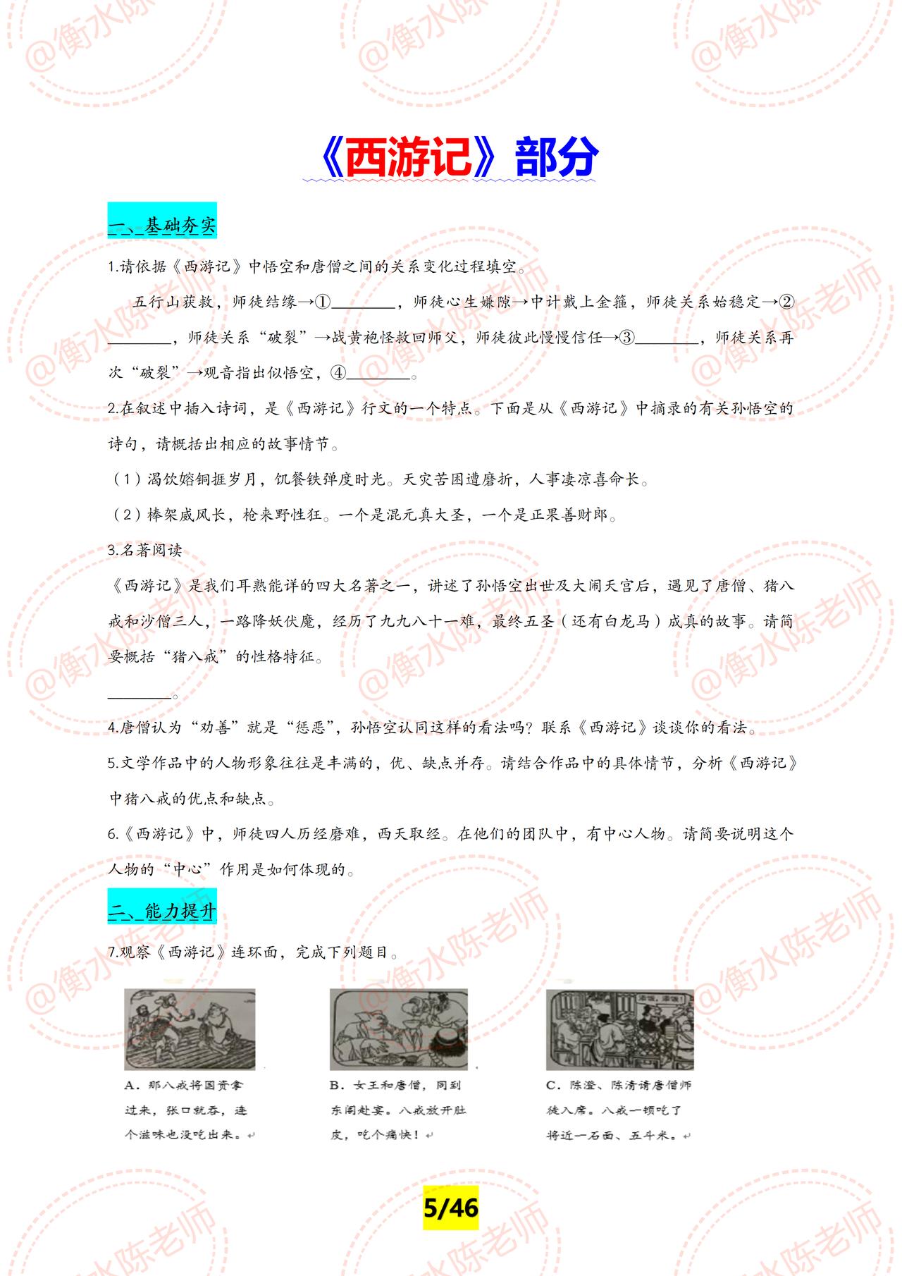 2023-2024学年度七年级上册语文,名著阅读《朝花夕拾》+《西游记》,常考重点综合检测试卷,无论月考、期中、期末考试,这些考题都是经常必出、必考的题型,吃透这份资料,名著阅读让你1分不扣,由于资料非常多,需要全部的考生,跟我沟通哦。