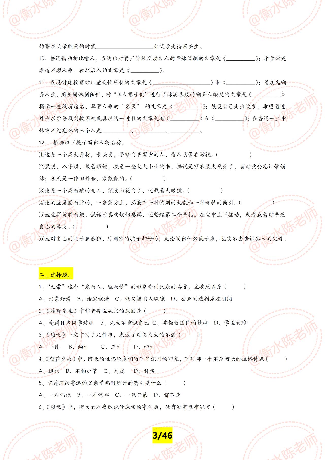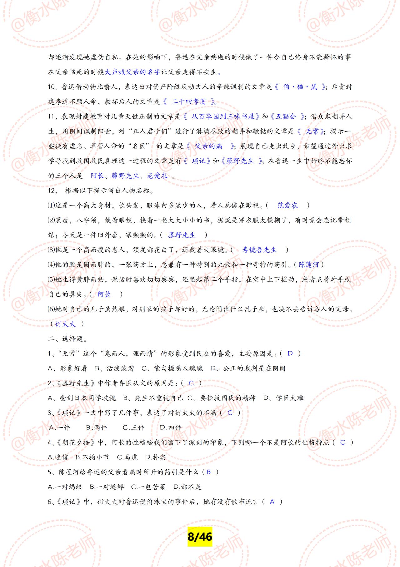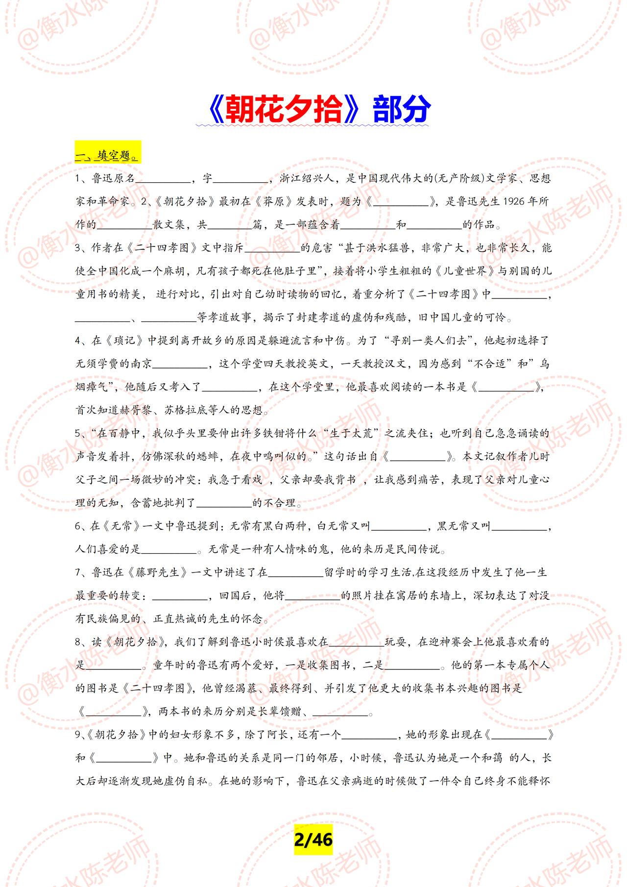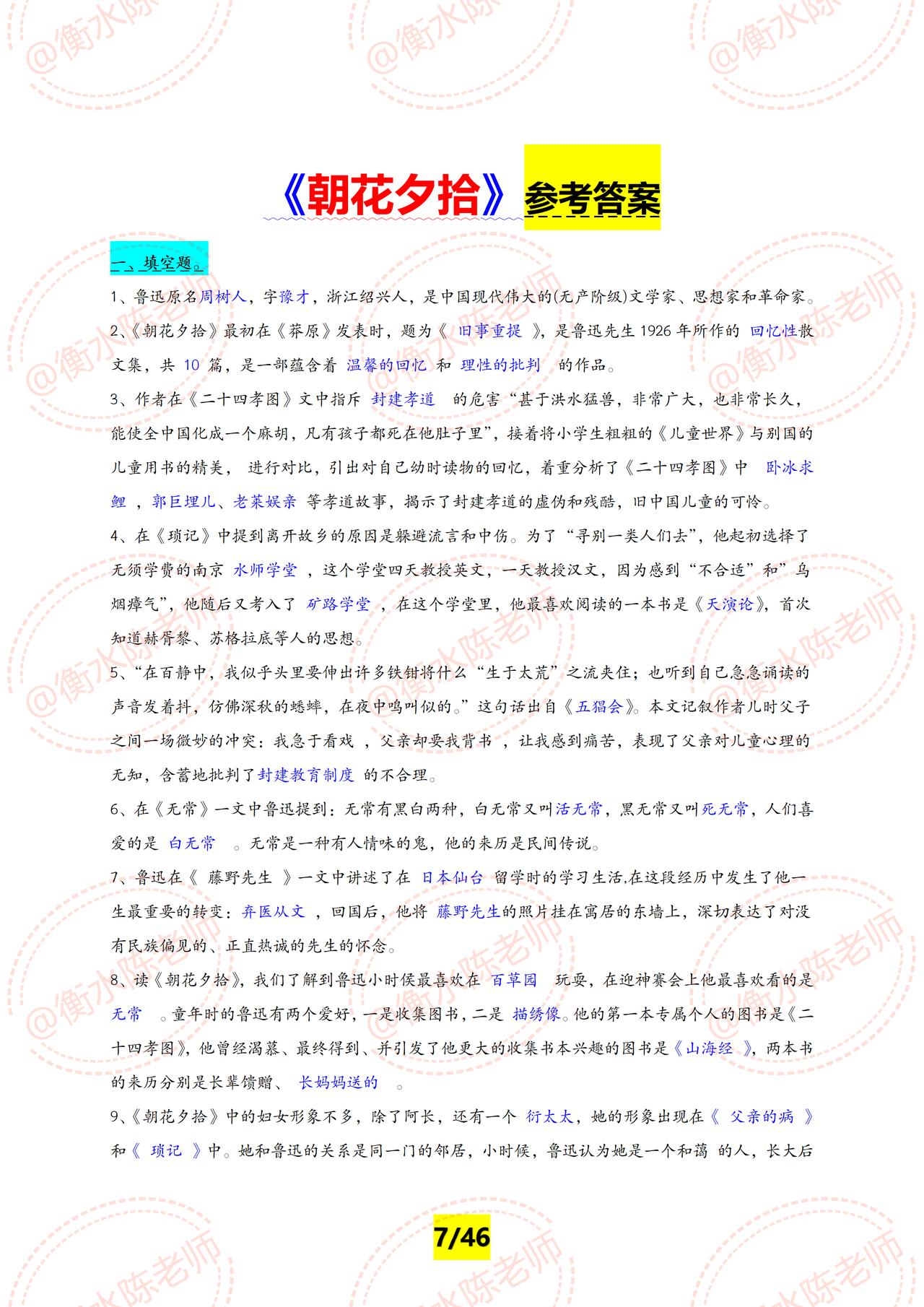 2023-2024学年度七年级上册语文,名著阅读《朝花夕拾》+《西游记》,常考重点综合检测试卷,无论月考、期中、期末考试,这些考题都是经常必出、必考的题型,吃透这份资料,名著阅读让你1分不扣,由于资料非常多,需要全部的考生,跟我沟通哦。