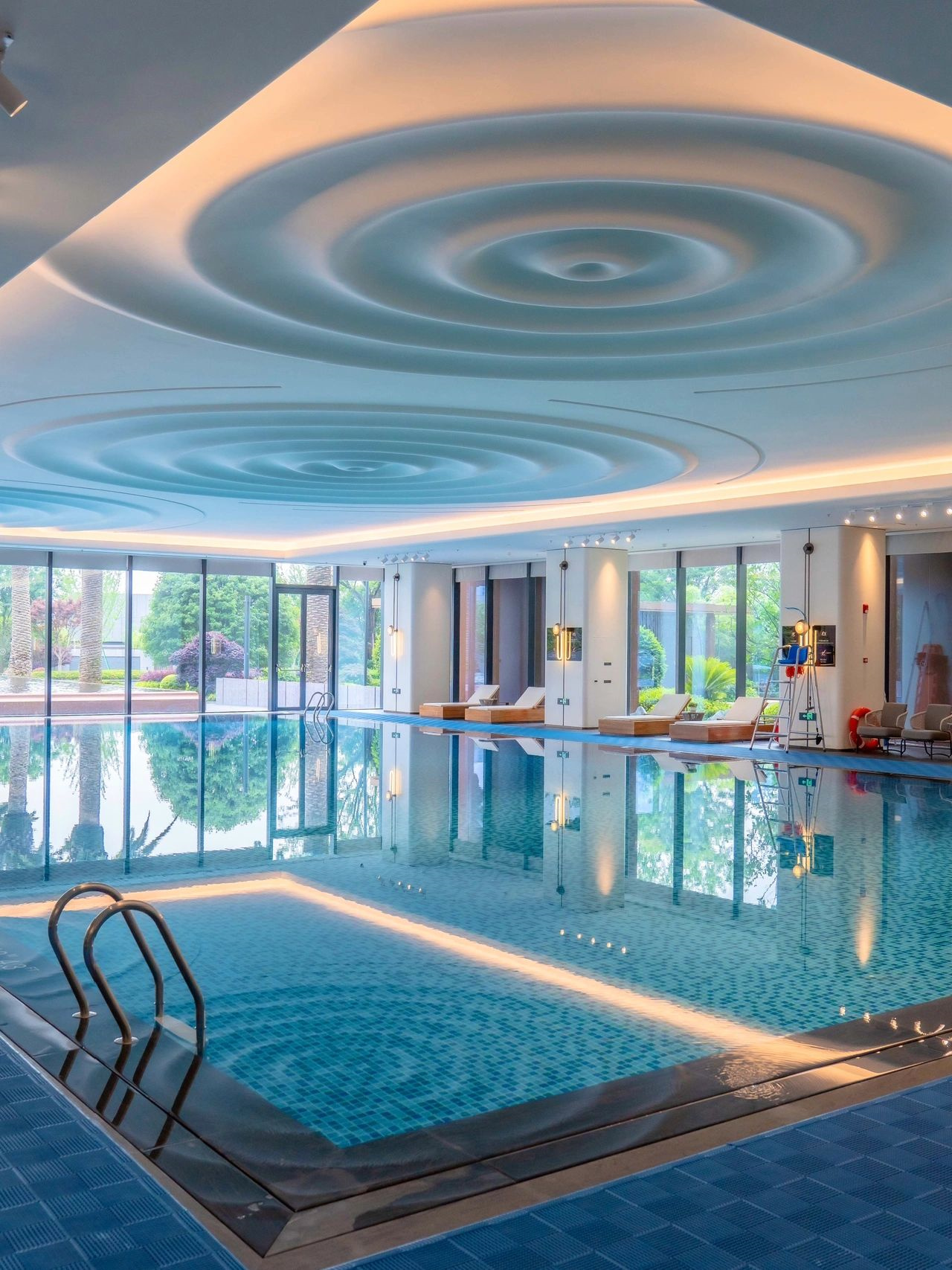 4️⃣超大恒温泳池,关键是还很出片。健身房、会议室等酒店配备也很齐全