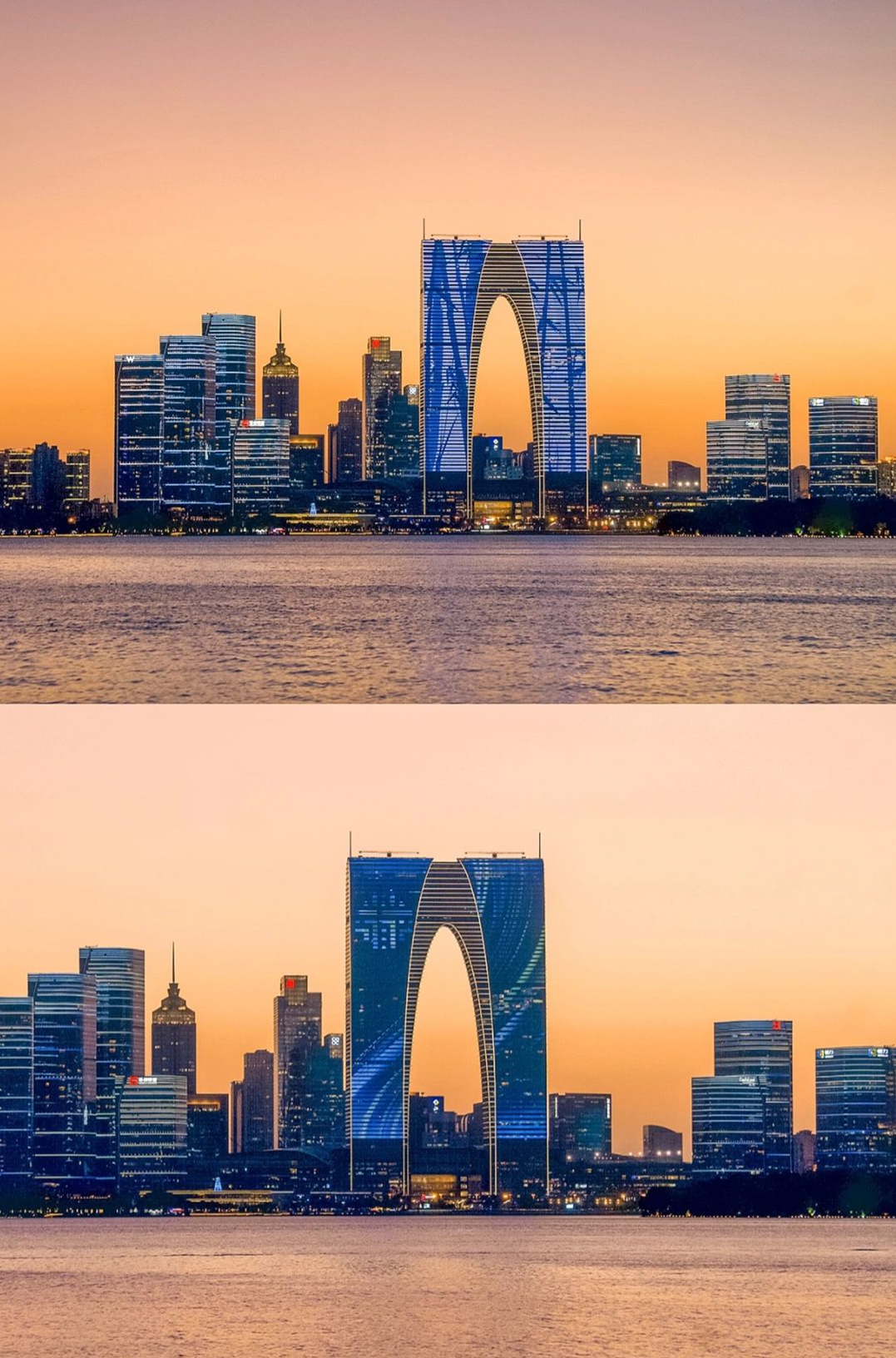到了傍晚这里就变成了苏州zui浪漫的地方~晚霞、夕阳、城市天际线...不但很美,还很舒服~导航洲际酒店,再步行200米到湖边。