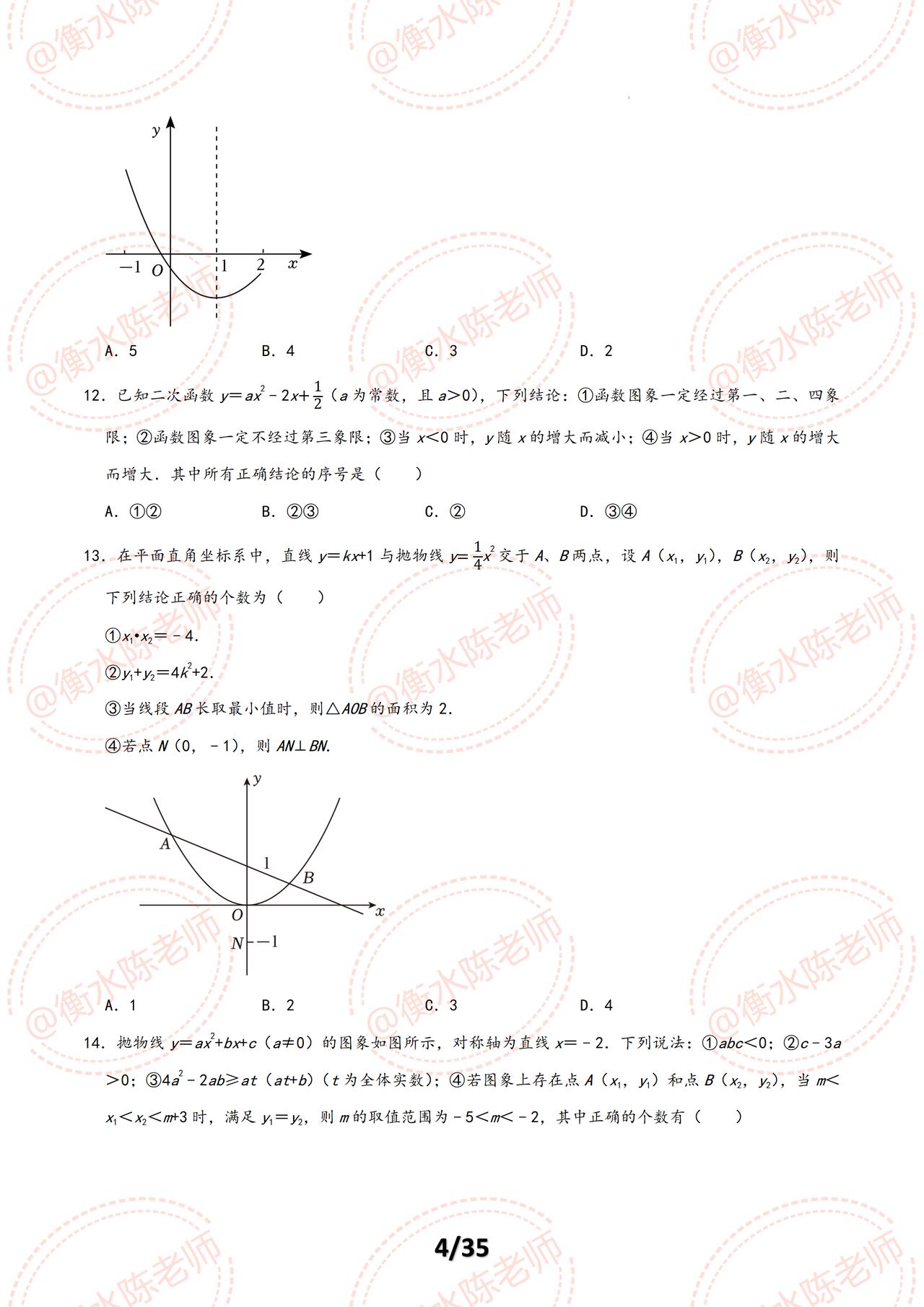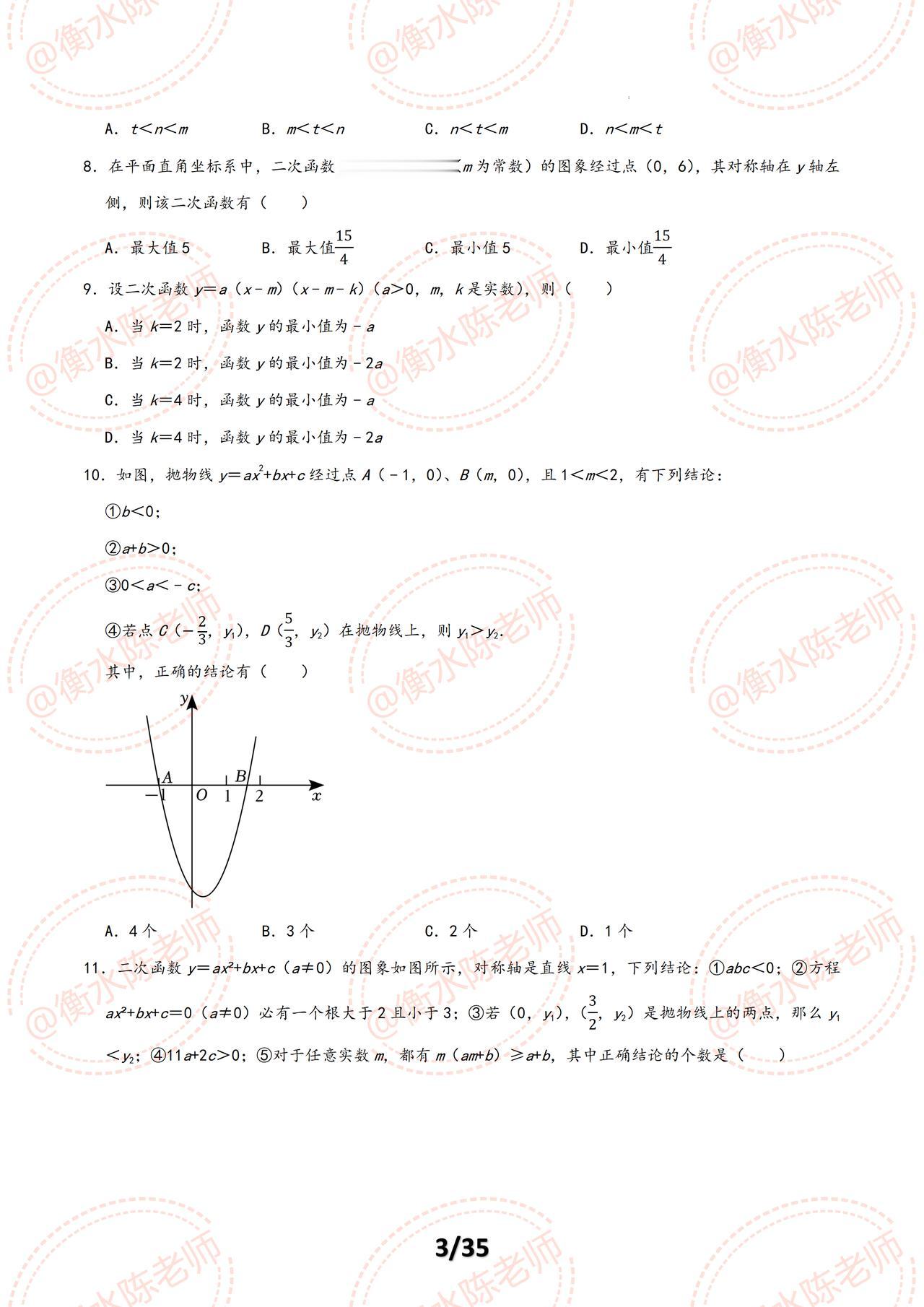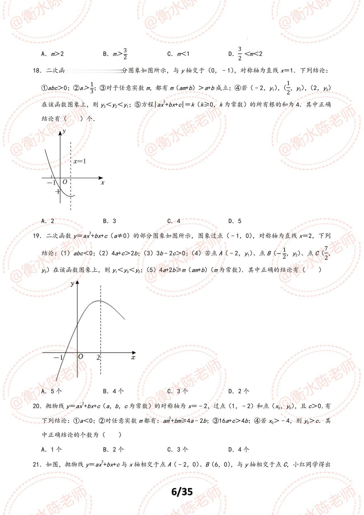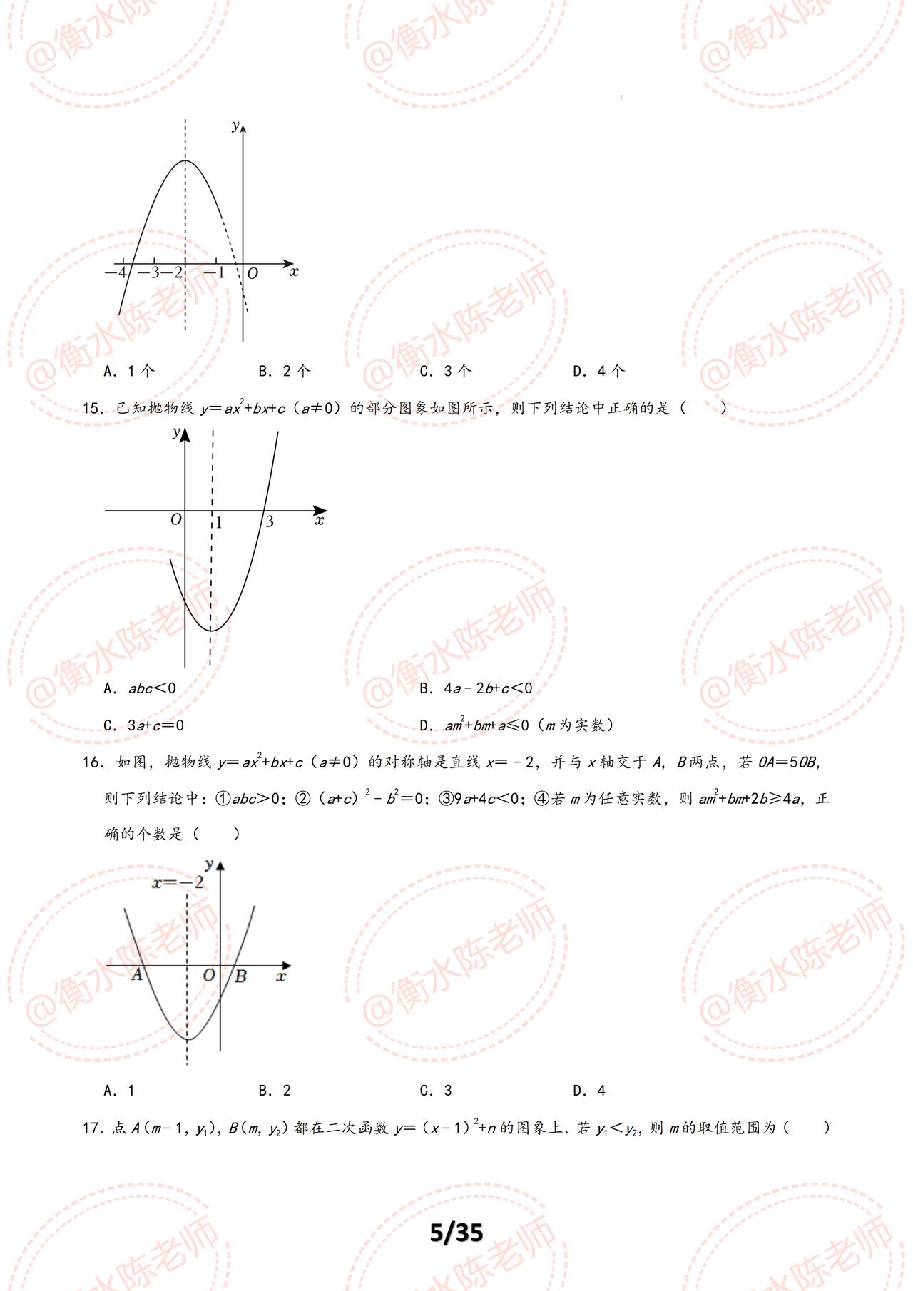 2023年中考数学【二次函数】没有彻底学好的同学,这套专题复习好好做一遍,考题都是大家经常做错的题型,也是中考大纲必出的考题,这方面的比较差的,一定要好好补一下分值占比很大的,同学们课下认真做一遍哦,由于专题比较多,需要全部的,和我沟通哦。