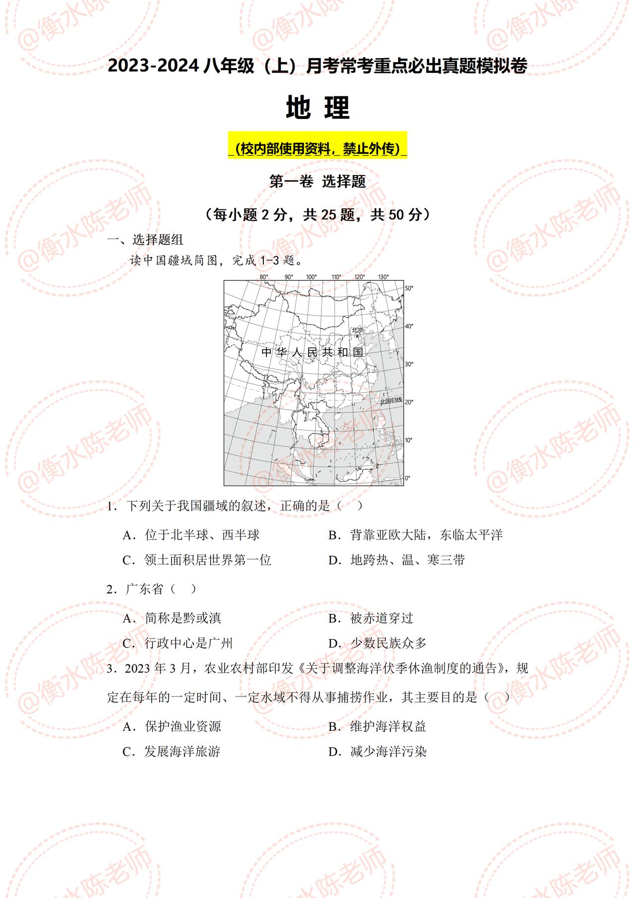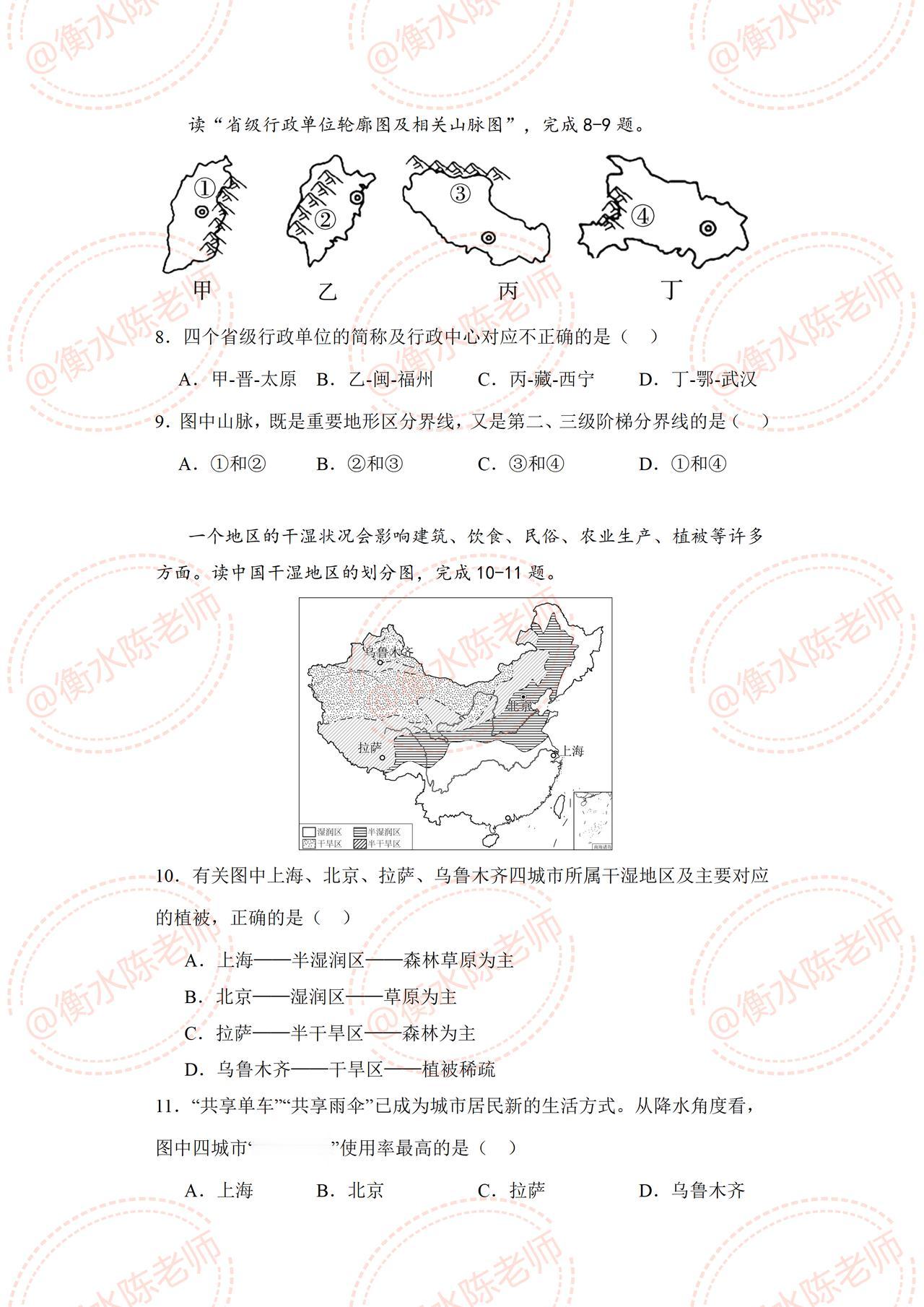 八年级上册地理月考卷,根据不同的城市、版本编写的重点考卷,地理生物这2个科目引起重视,不要不在乎,明年要参加初中会考地理生物结业考试,考试成绩直接和初三中考成绩挂钩哦,课堂上要把每一个知识点都要学透彻了,明年复习的时候,才会很轻松哦。 月考重点卷,根据不同的城市、版本、学校编写的,想要获取你们城市月考试卷的,和我沟通即可哦。