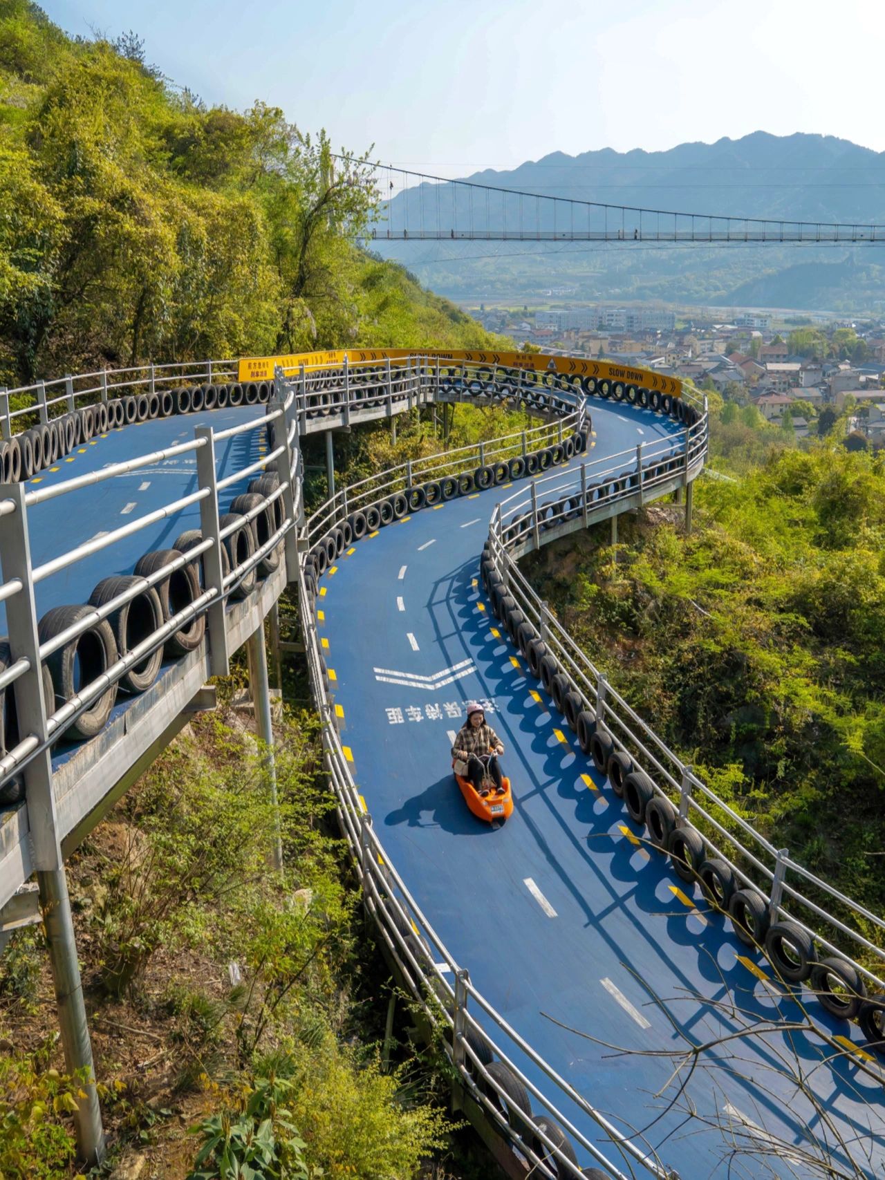 一路穿越丛林间的玻璃栈道,伴随着水流和弯道飞驰而下。好玩指数直接拉满,夏天必玩~