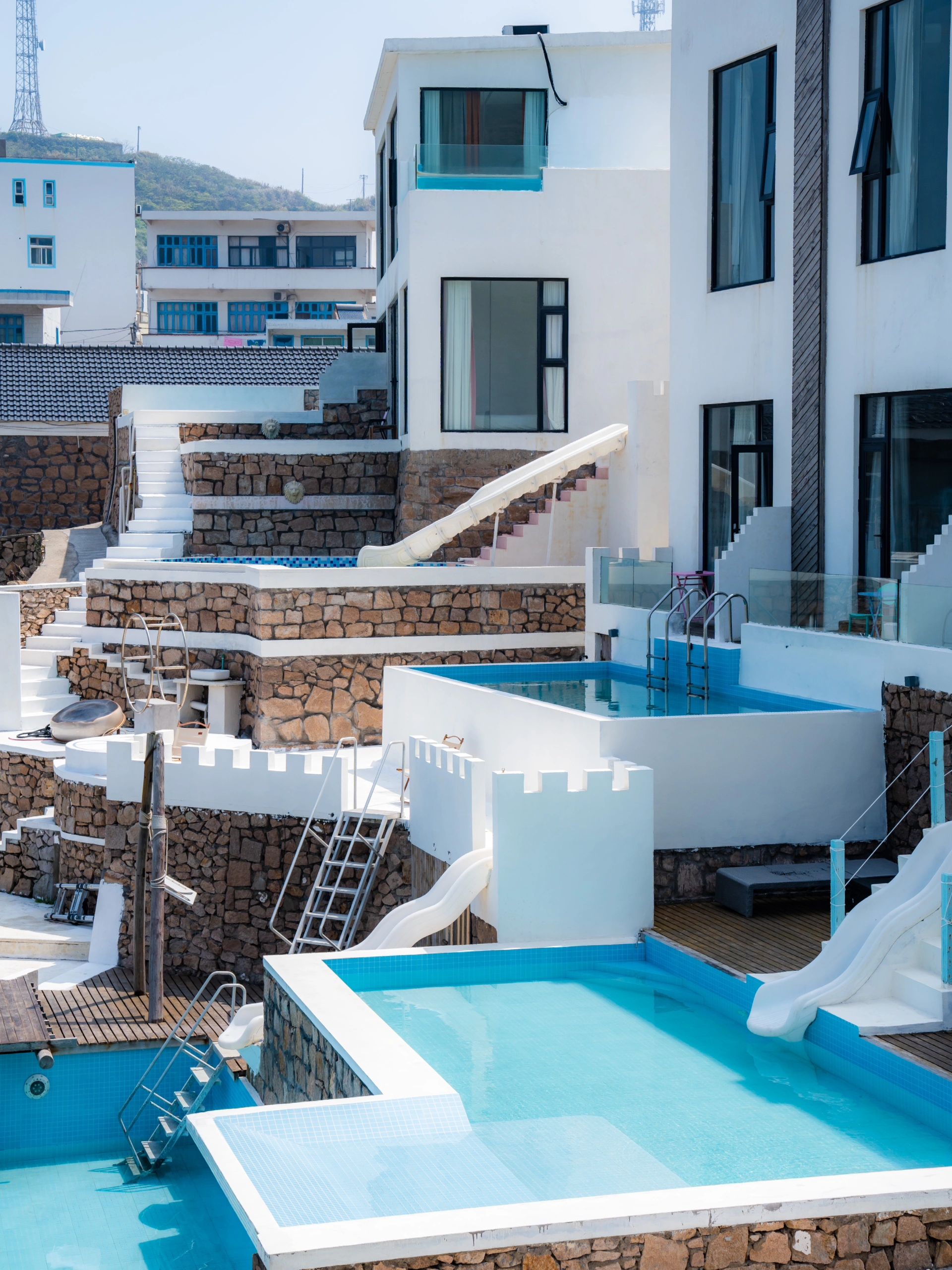 我们住的云汐海景度假酒店,位置很好,面朝大海,酒店泳池很有设计感