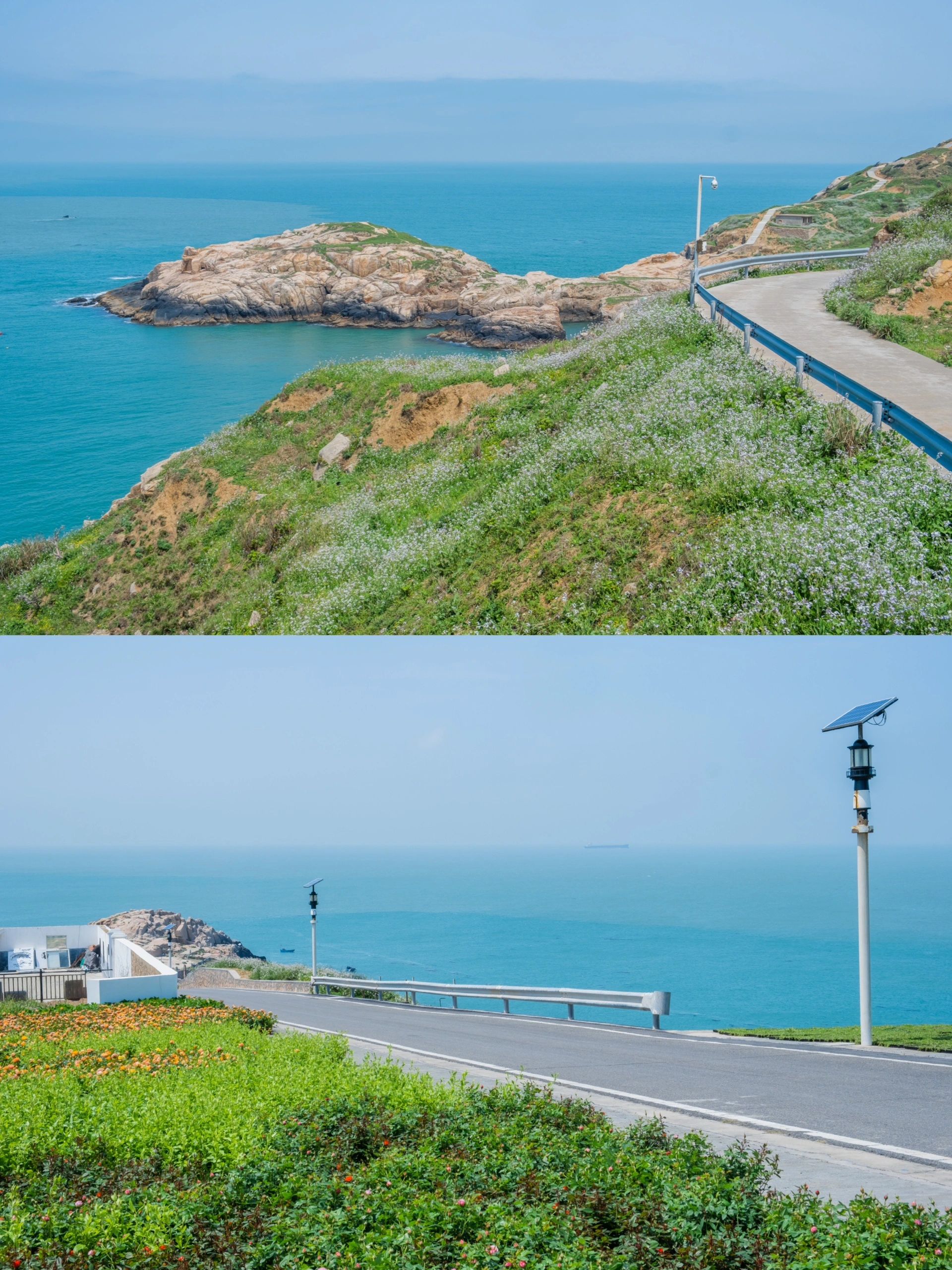 也就是下船的点,弯曲的公路边种满萝卜花,一边是海,一边是鲜花,非常浪漫,傍晚三四拍更美