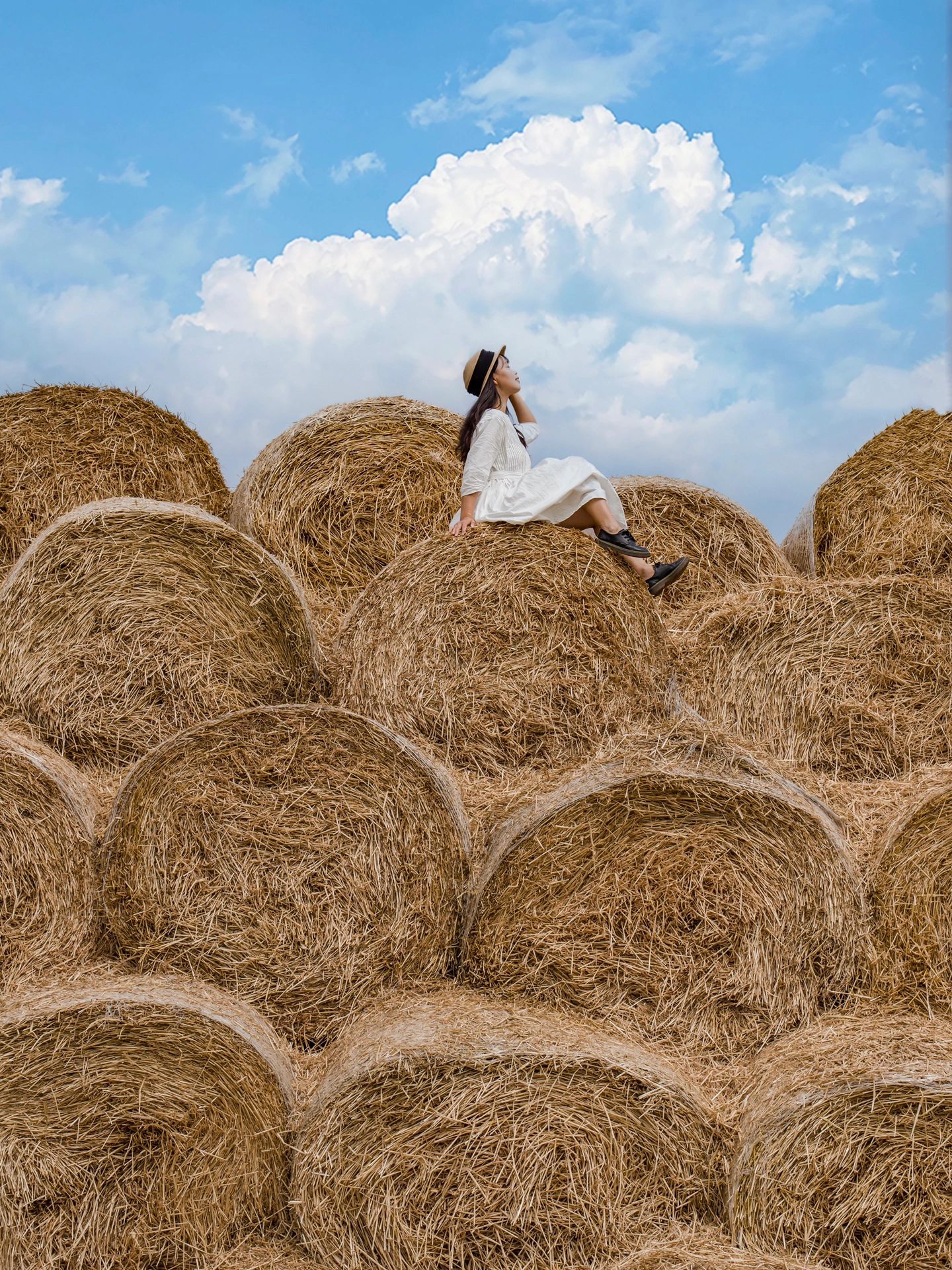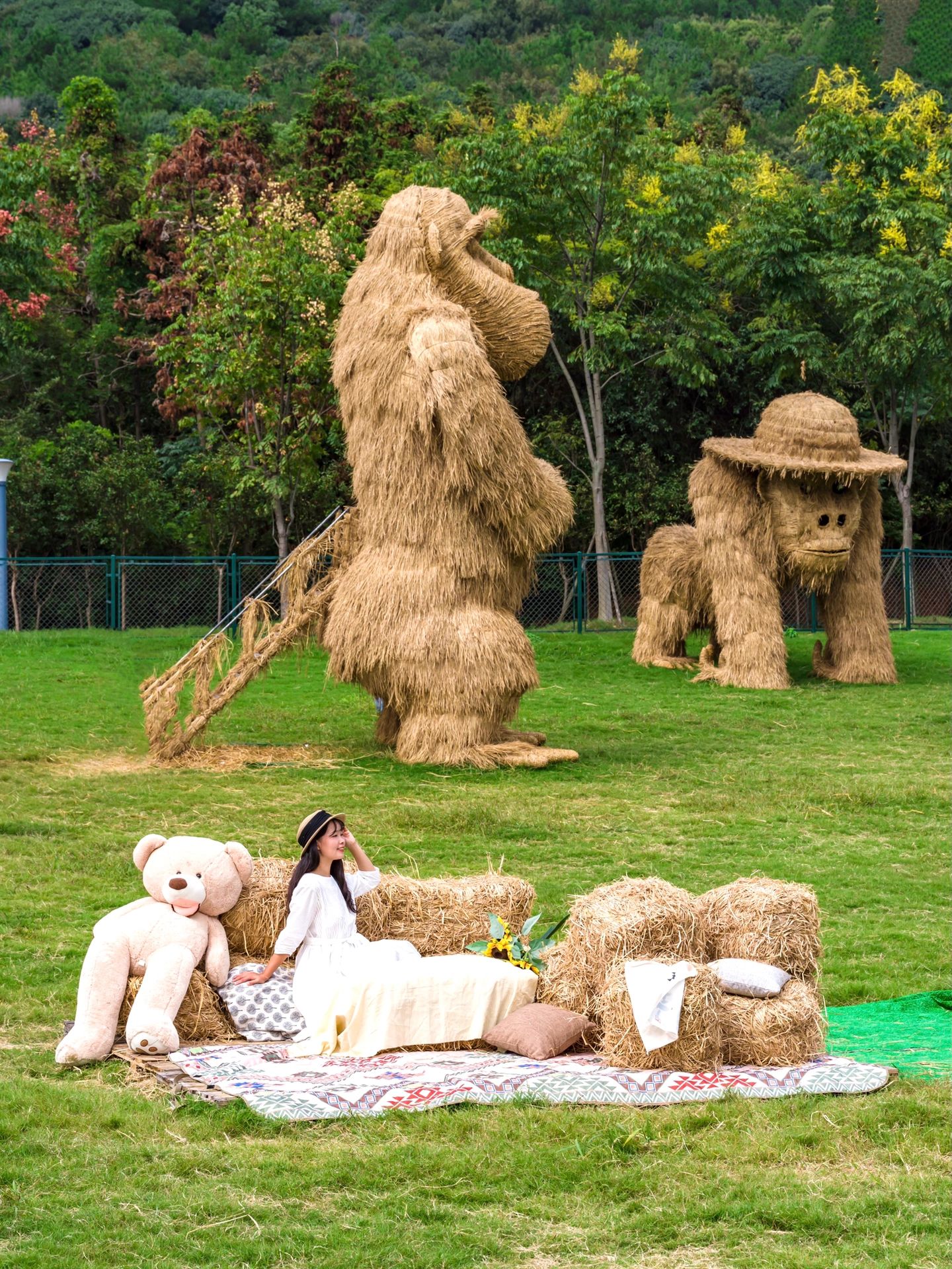 用稻草堆成的“草垛金字塔”,一捆捆的稻草象征着丰收的喜悦,不仅适合孩子爬上爬下,还涂鸦上了可爱的emoji表情。