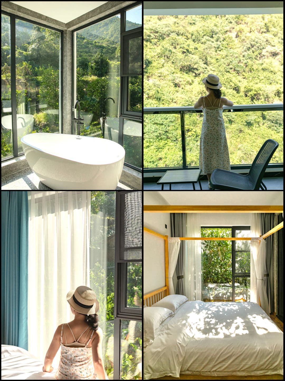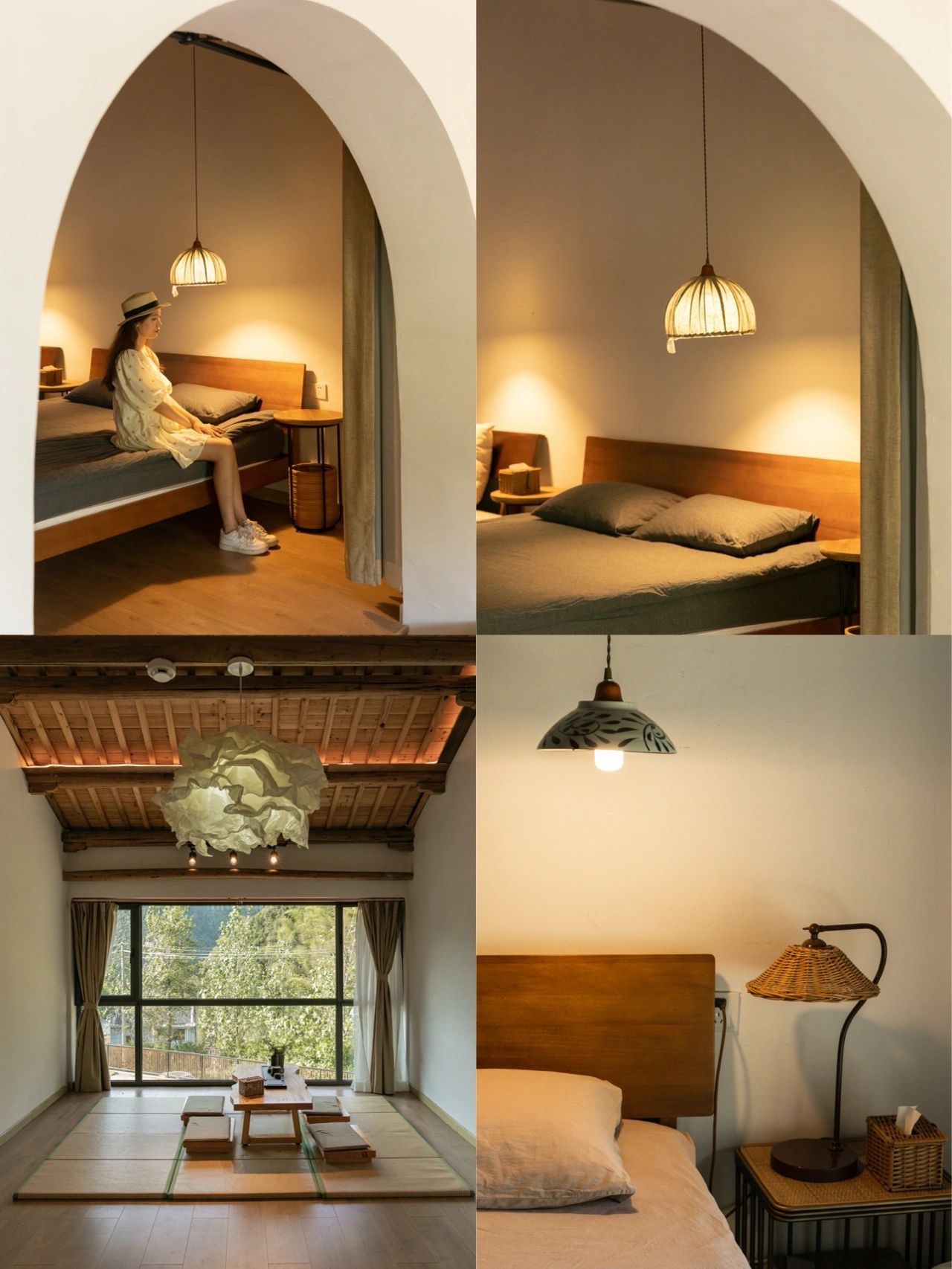 位于梅树底景区,春天来还可以看梅花,民宿有两个巨大无边泳池,房间的拱形门设计,日系木质家具,用碗装饰的灯具,看得见风景的阳台,在这里一天不出门我都愿意