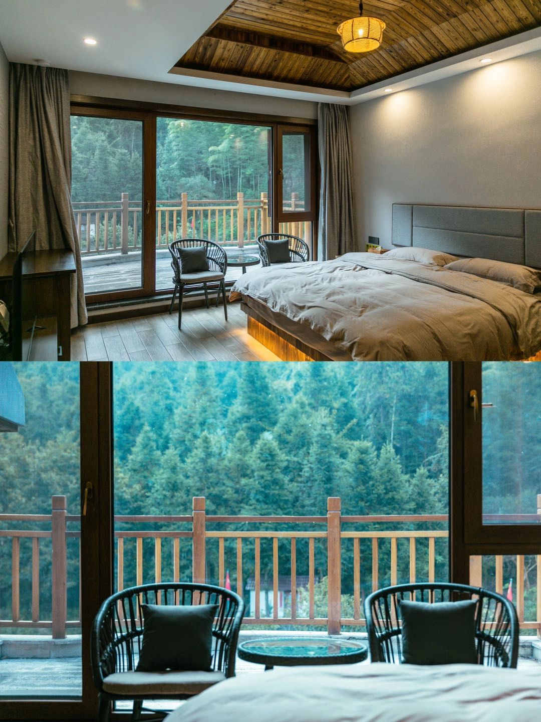 这个民宿位于桃花源景区里,夏天均温22度,可以溯溪玩水抓鱼,秋天🉑️来打板栗🌰,房间北欧风设计简洁大气,视野也很赞