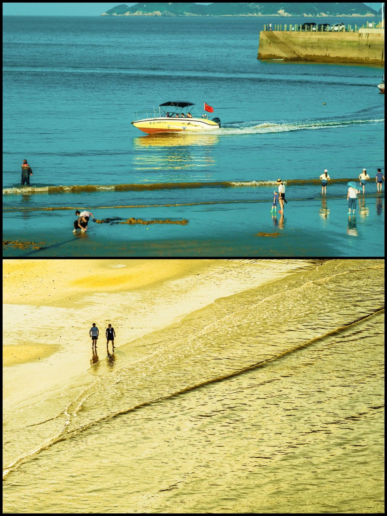 沙质很细软,五月新出了粉色沙滩系列,适合打卡拍照,这周边有海鲜店和小吃店,可以在这附近就餐,踏浪很合适