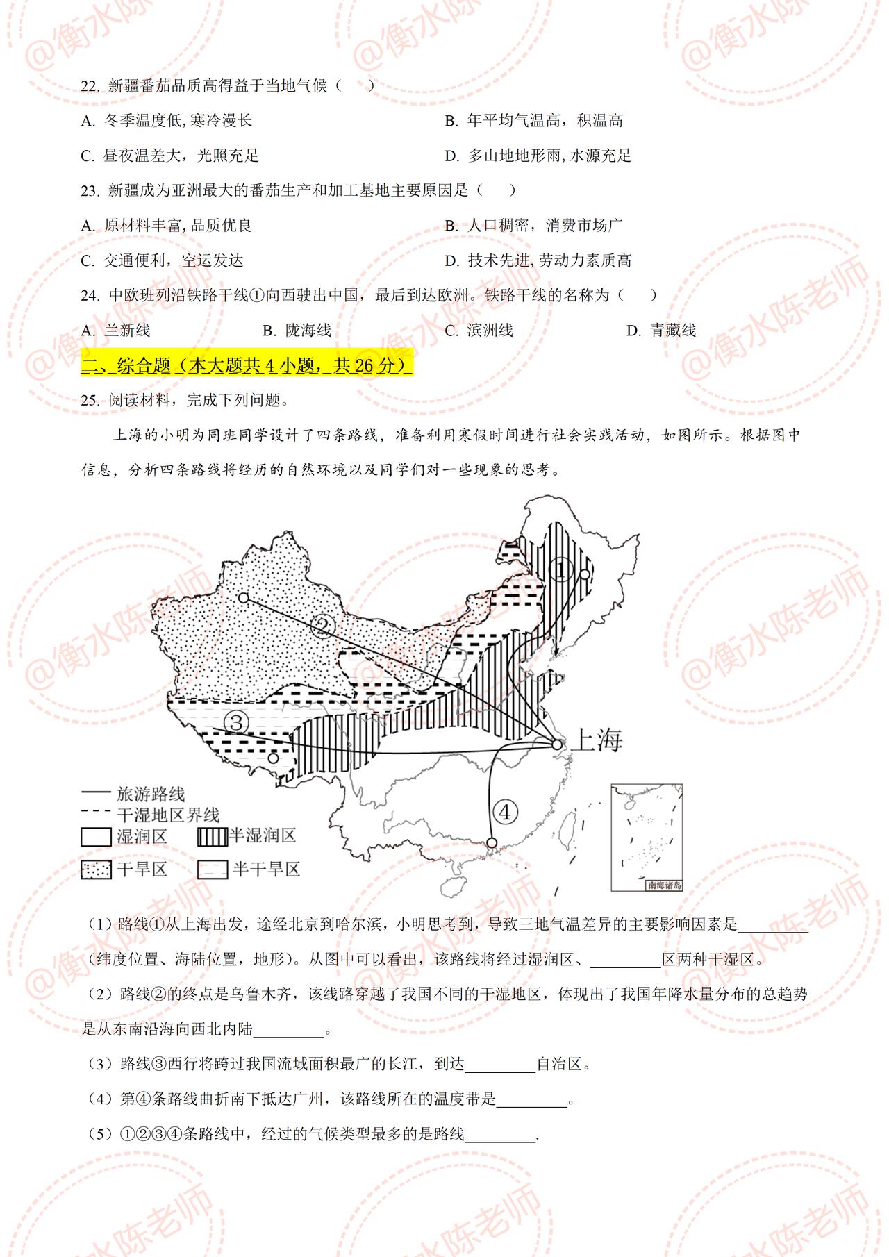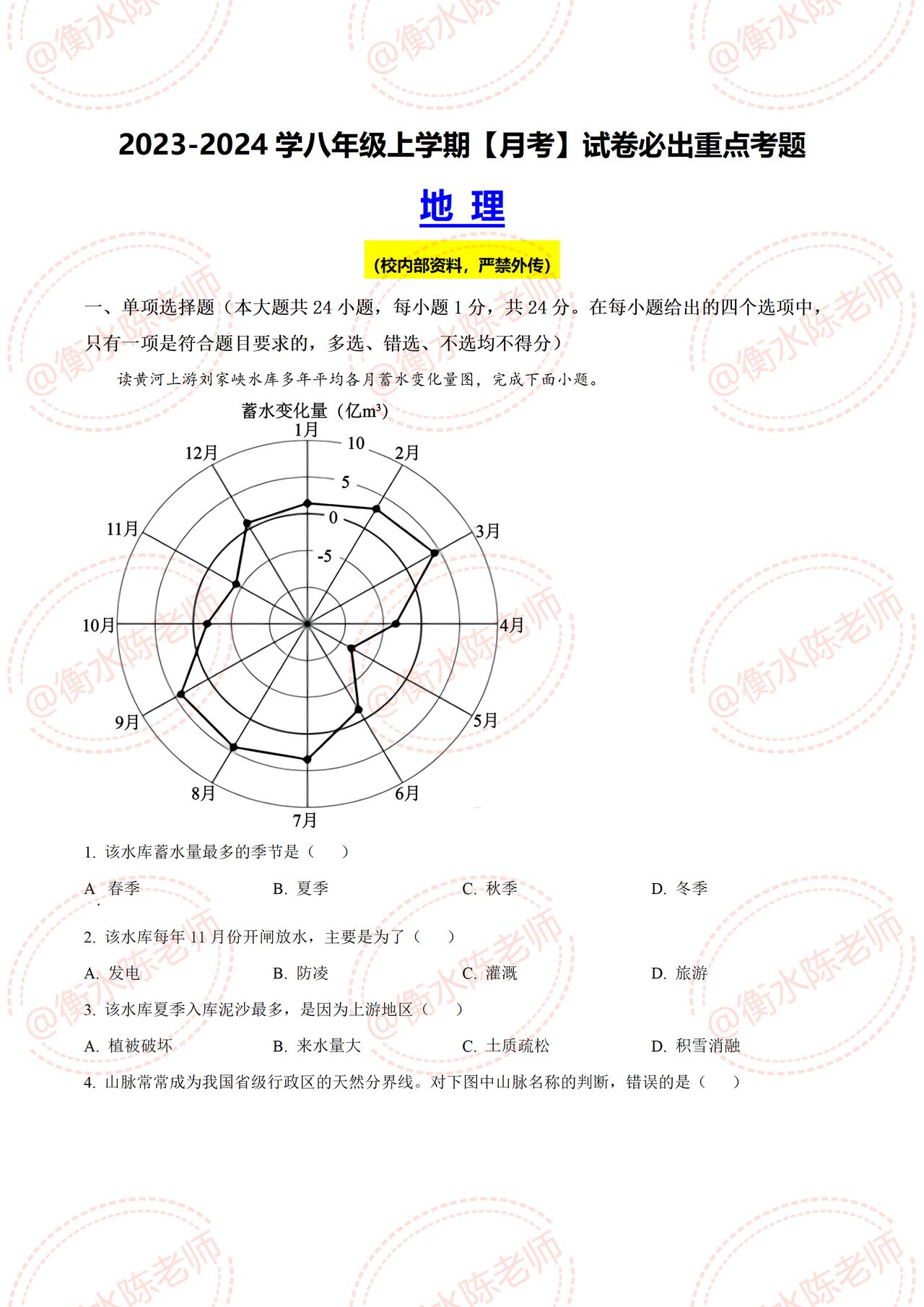 八年级上册地理,月考试卷重点必出考题,这套试卷根据不同的城市、版本编写的,考题都是近3年初中会考结业考试常考的题型,尤其是八年级的学生,很关键,面临2024年结业考试,想要获得好成绩,这套考卷临考之前认真做完,成绩给你惊喜哦,想要获取自己城市月考试卷的,跟我沟通哦。