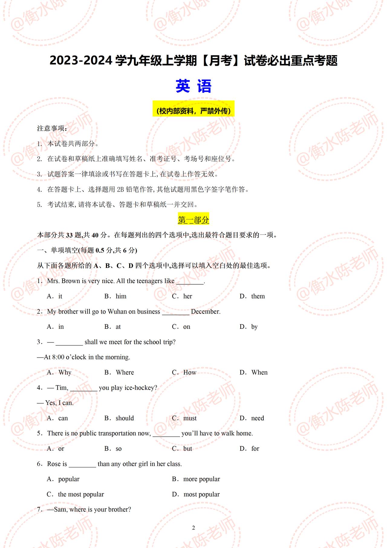 九年级上册英语,根据不同的城市和版本编写的月考试卷,英语成绩差的考生,考前记得做一遍,让你多考30分以上哦,想要获取自己城市月考试卷的,记得跟我沟通哦。