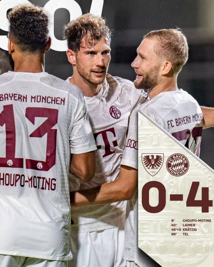 4-0!拜仁德国杯晋级 德国杯第1轮:拜仁4-0击败德丙球队普鲁士明斯特晋级。