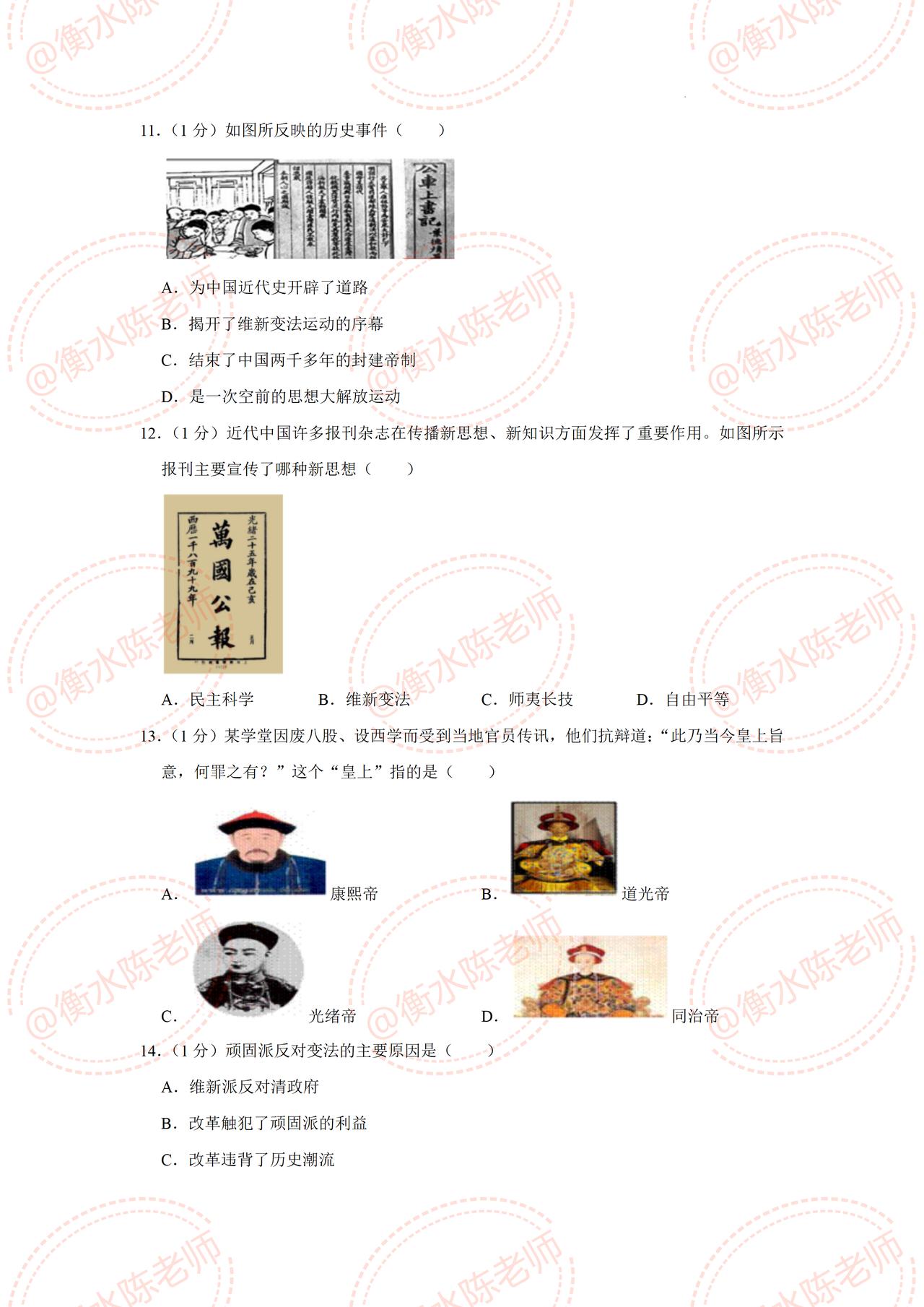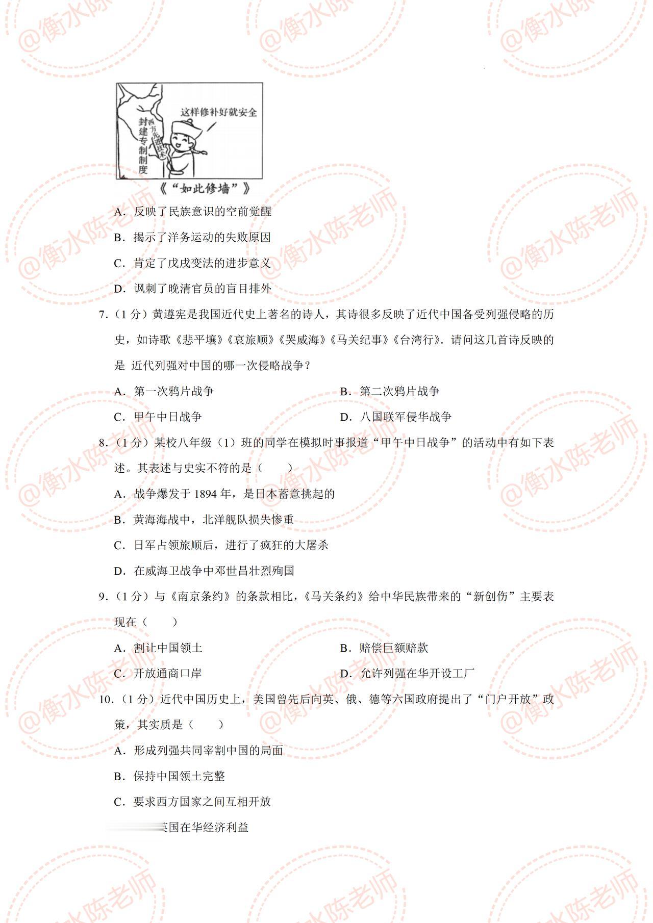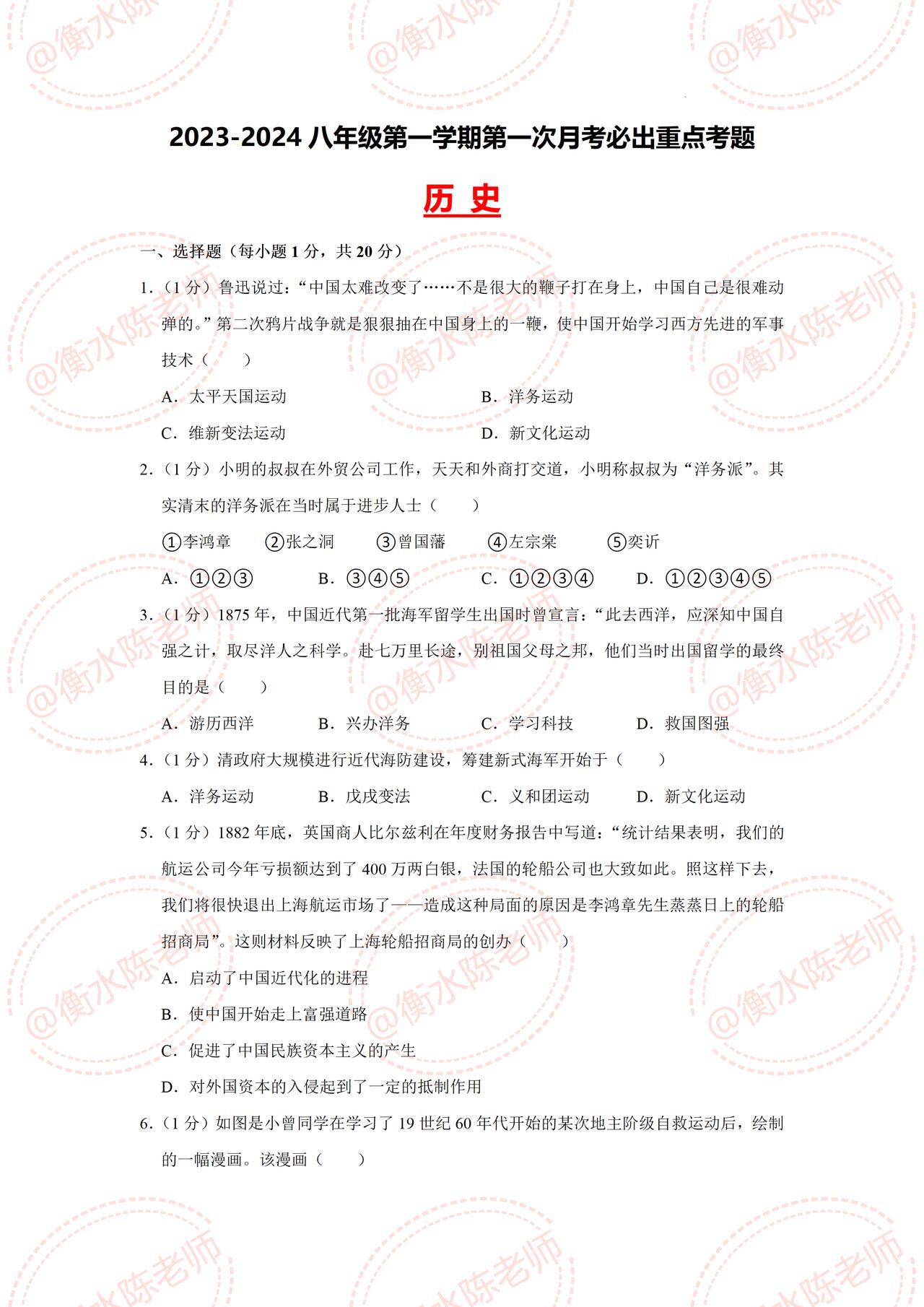 八年级上册历史,第一次月考常考、热点题型全在这里,临考之前大家记得做一遍,近三年易出错、易马虎考题全部为大家编写出来了,根据不同的城市、版本编写的,想要获取自己城市月考卷的,跟我沟通哦。
